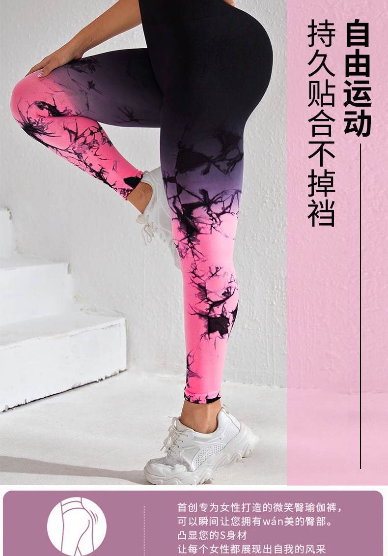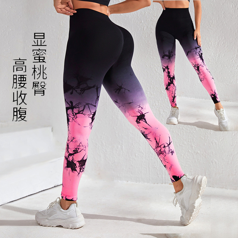 그라디언트 타이 다이 요가 바지 원활한 여성 달리기 스포츠 바지 높은 허리 엉덩이 리프팅 피트니스 옷 스트레치 타이트 바지 바지스토어 가기