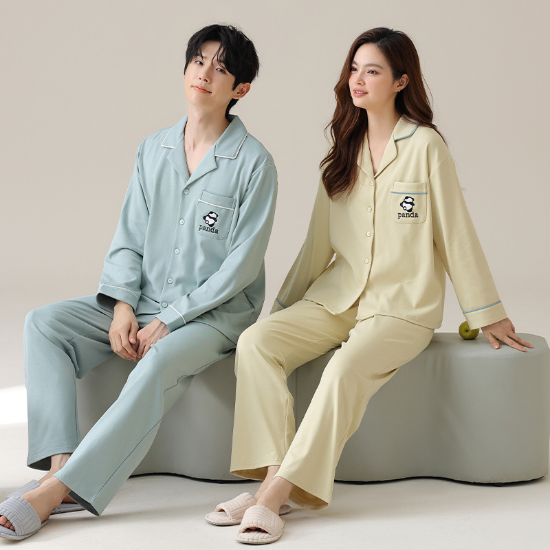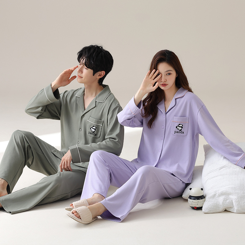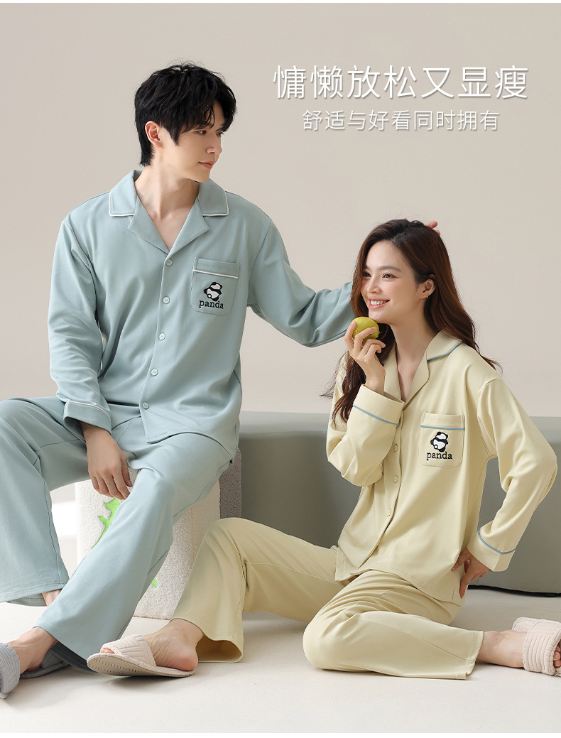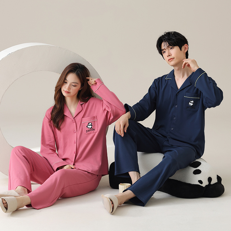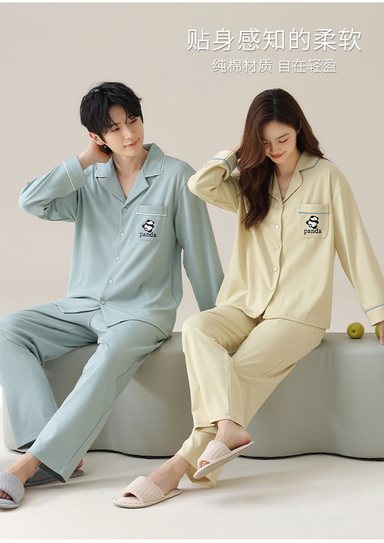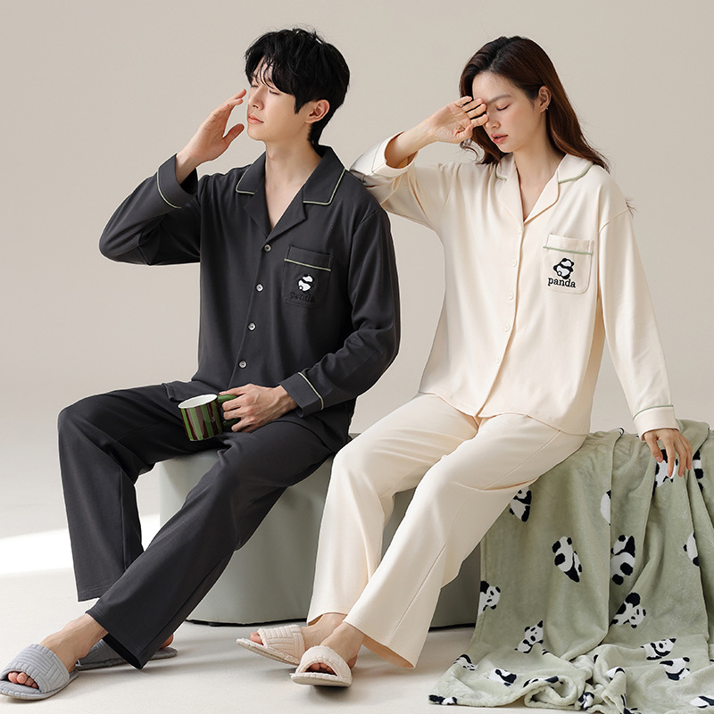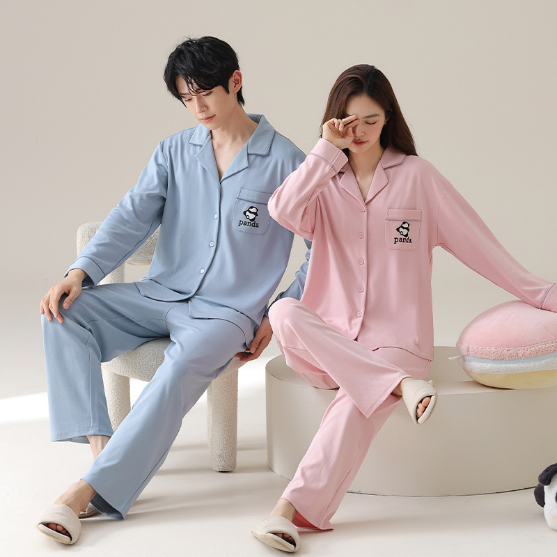 순면 커플 잠옷 여성용 가을 겨울 카디건 긴팔 긴바지 2025 봄 가을 큰 사이즈 남성용 홈웨어 외출 가능스토어 가기