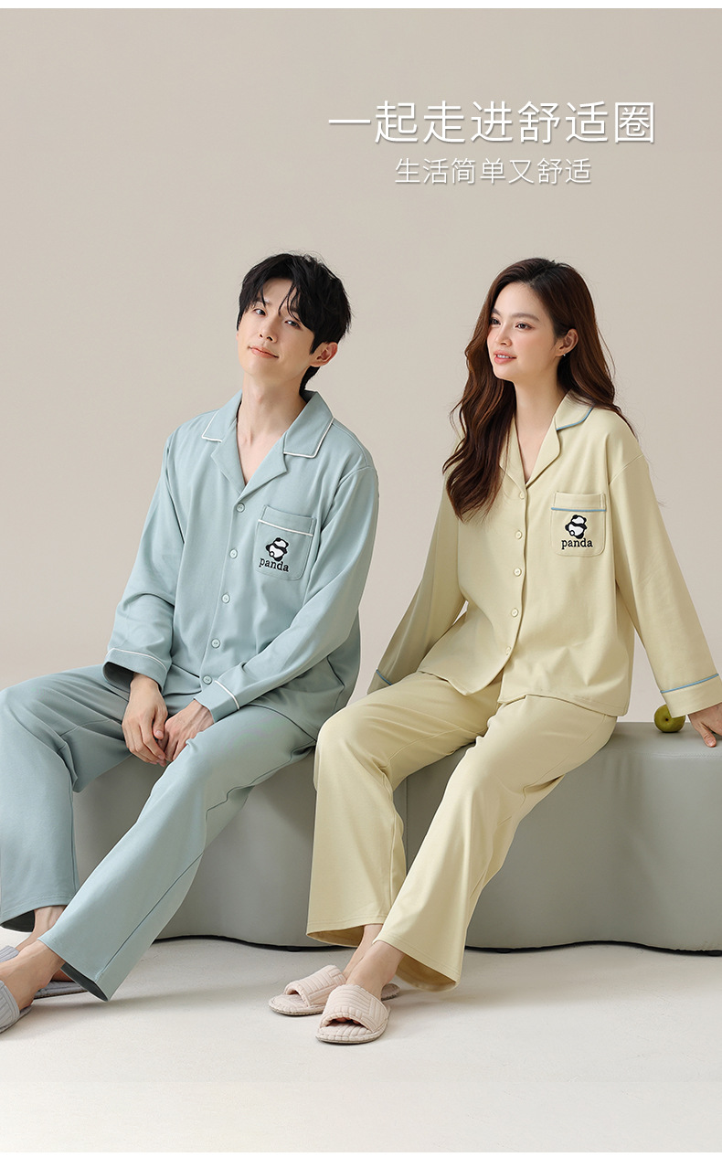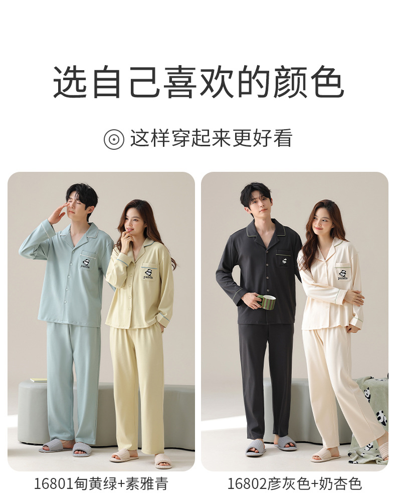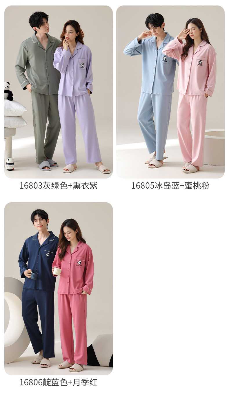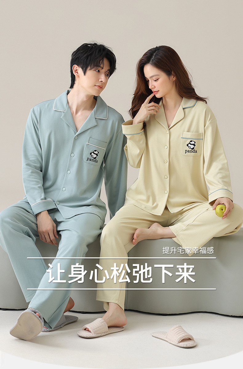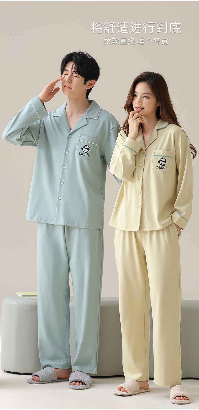 순면 커플 잠옷 여성용 가을 겨울 카디건 긴팔 긴바지 2025 봄 가을 큰 사이즈 남성용 홈웨어 외출 가능스토어 가기