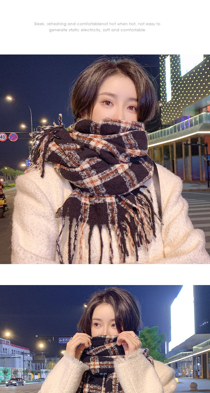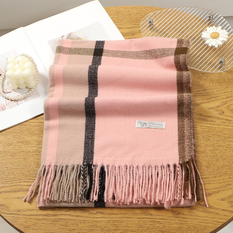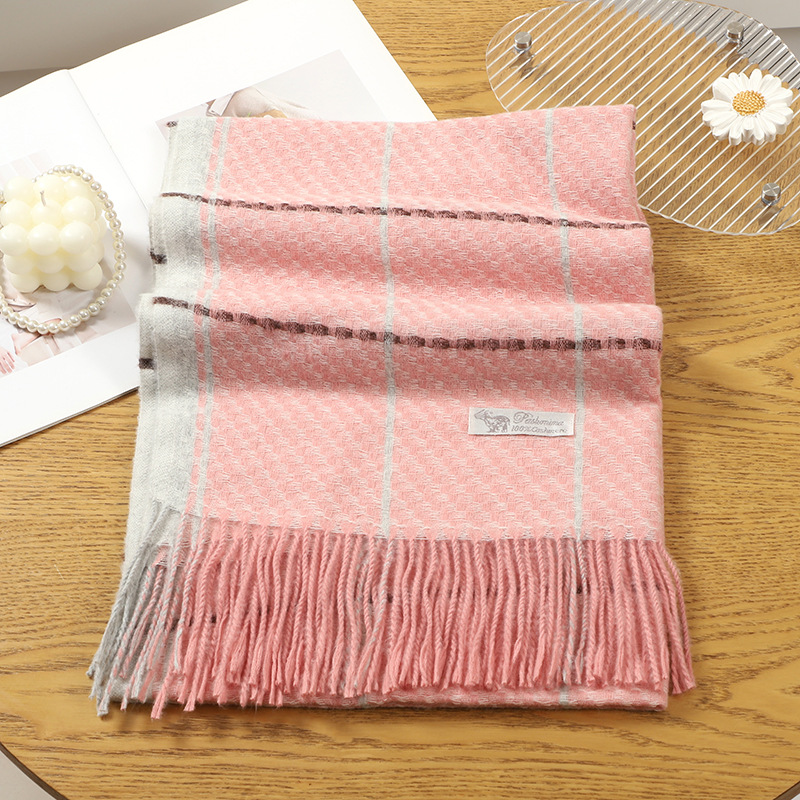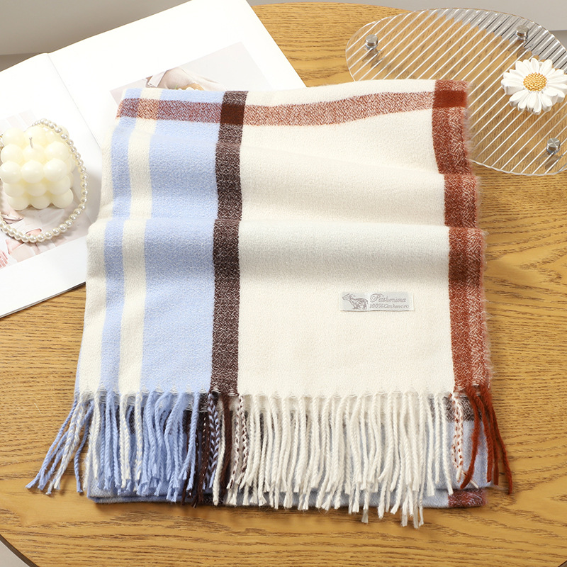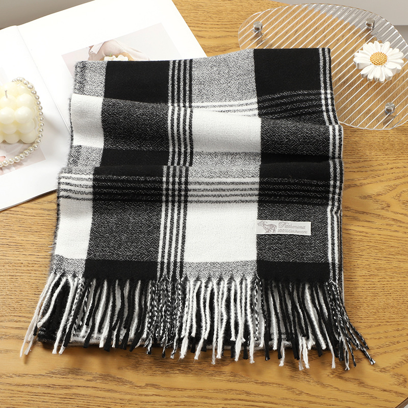 2023 아카데미 스타일 샤넬 스타일 격자 무늬 술 스카프 여성 가을 겨울 모조 캐시미어 한국 스타일 목도리 커플을위한 따뜻한 목