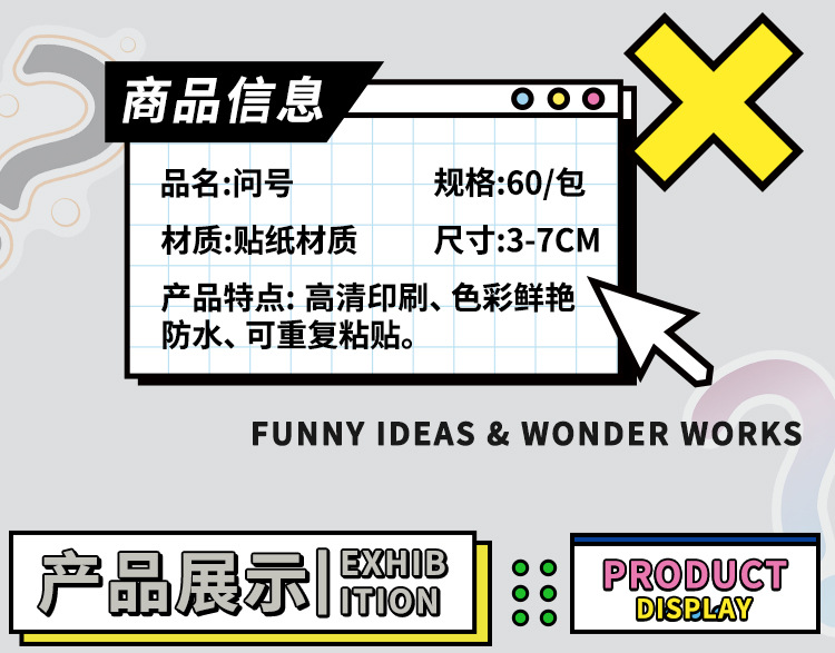 슈퍼 비용 효율적인 126 만화 컬러 물음표 창조적 인 스티커 틈새 데스크탑 소재 노트북 DIY 배치스토어 가기