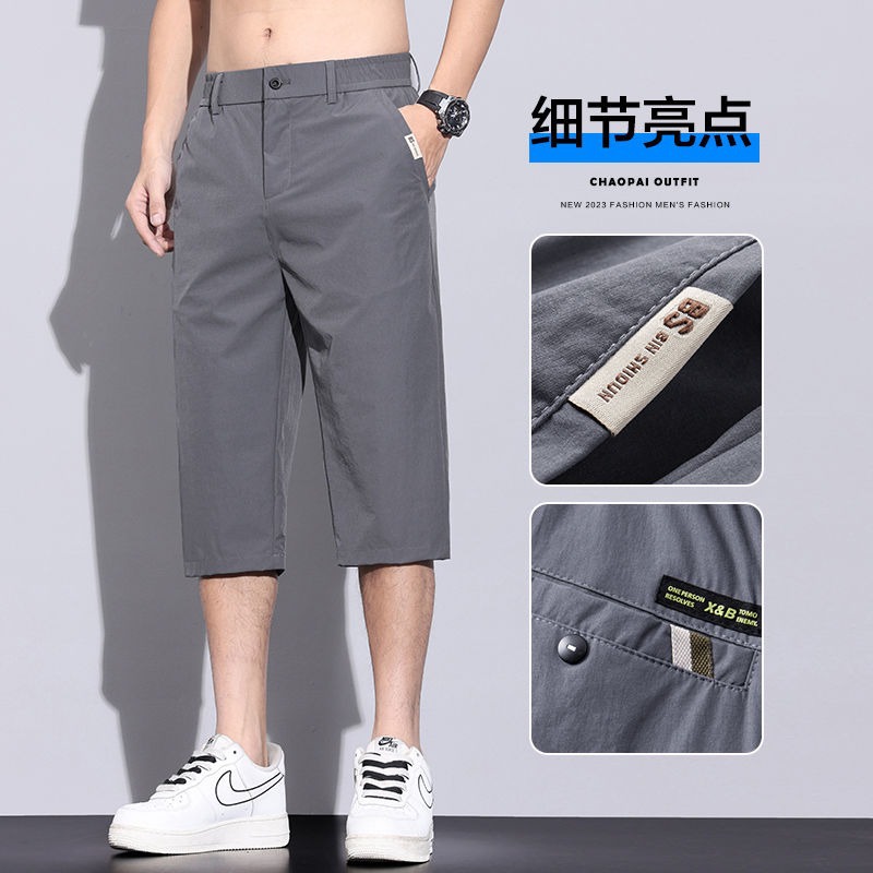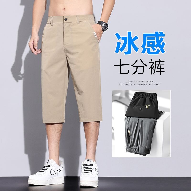 국경 간 여름 얇은 자른 캐주얼 바지 남성용 루즈 스트레이트 래핑 아이스 실크 스포츠 빠른 건조 캐주얼 중간 길이 바지스토어 가기