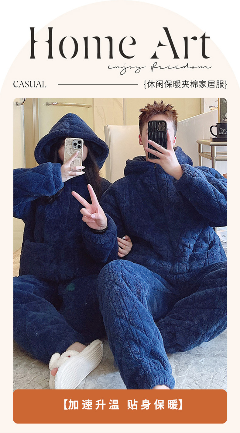 후드 블루 커플 잠옷 남성과 여성의 플란넬 3 층 겨울 따뜻한 산호 양털 홈 기모 두껍게스토어 가기