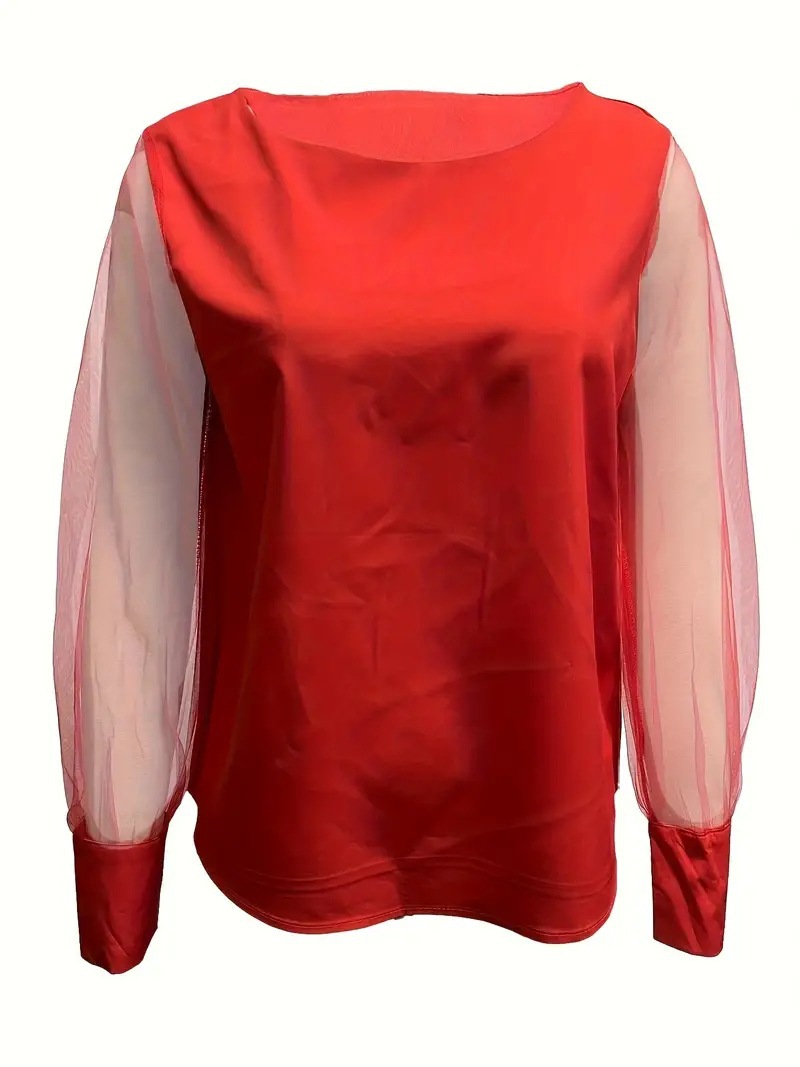 2023 독립 역 소원 아마존 폭발 가을 긴 소매 패션 둥근 목 꽃잎 소매 셔츠 여성 의류