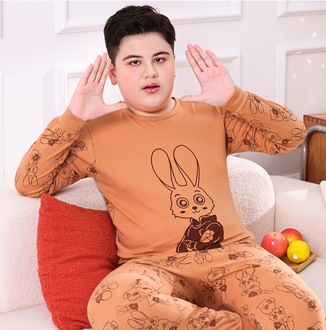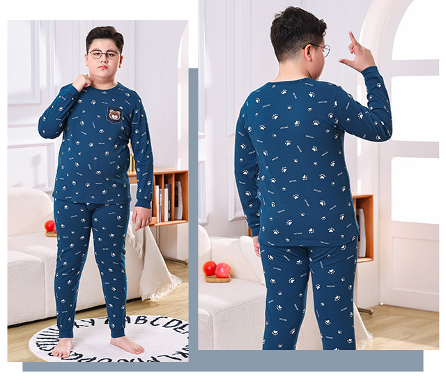 통통한 소년 가을 옷과 바지 속옷 세트 느슨한 새 스타일 플러스 사이즈 따뜻한 잠옷 십대 및 소년을위한