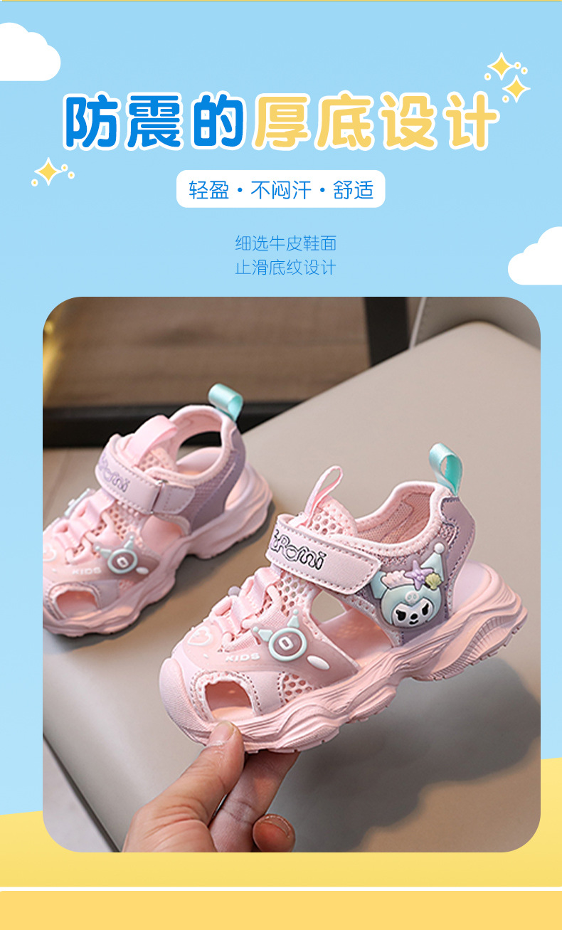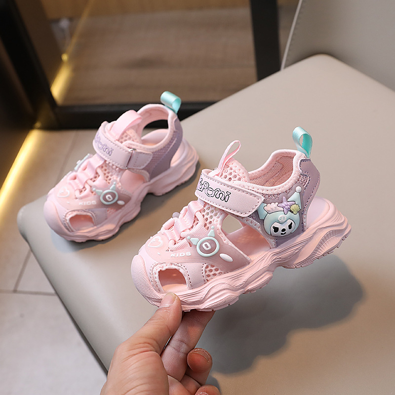 Kuromi 여름 소녀 샌들 솔리드 소프트 솔 공주 신발 소녀 라운드 발가락 발가락 신발 소녀 신발스토어 가기