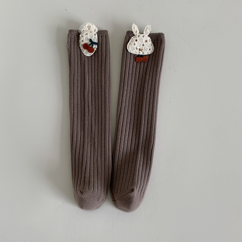 어린이 스택 양말 새로운 더블 바늘 양말 소녀 긴 양말 아기 귀여운 당근 토끼 양말 미드 튜브 양말