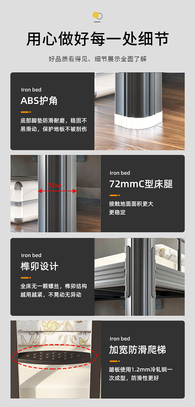 강철 철 침대 두 배 높고 낮은 침대 두꺼운 철 프로필 침대 학교 아파트 학생 기숙사 상하
