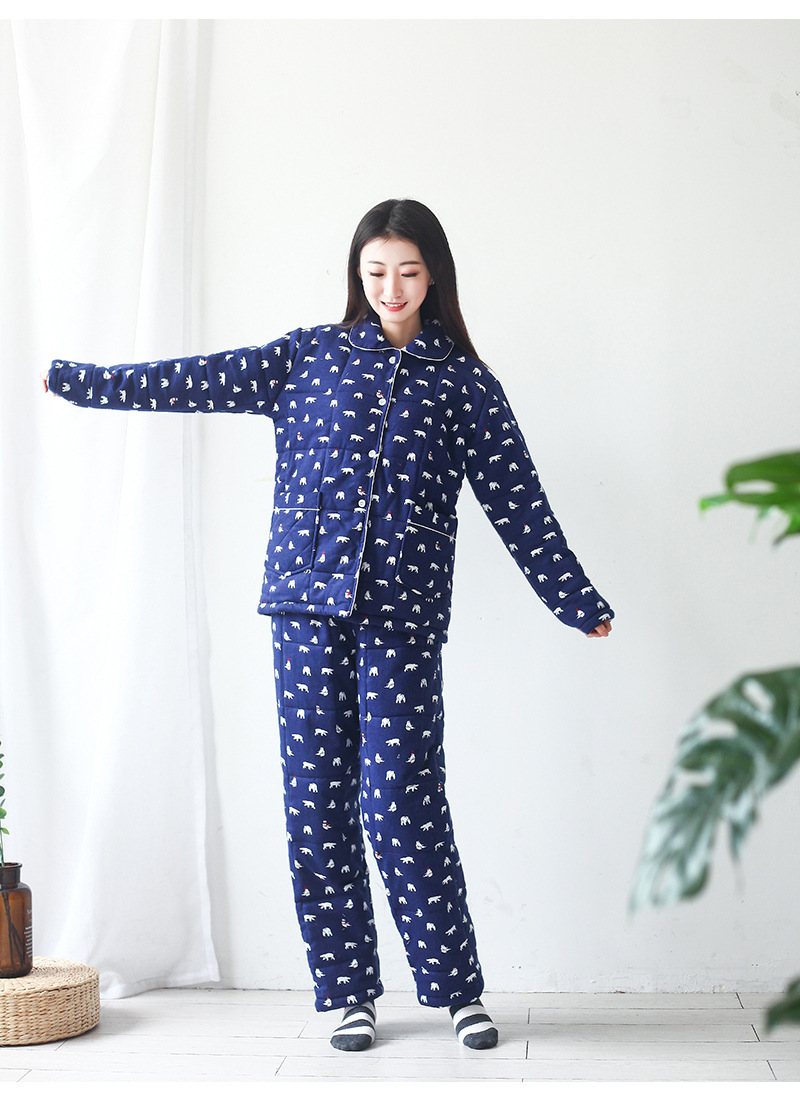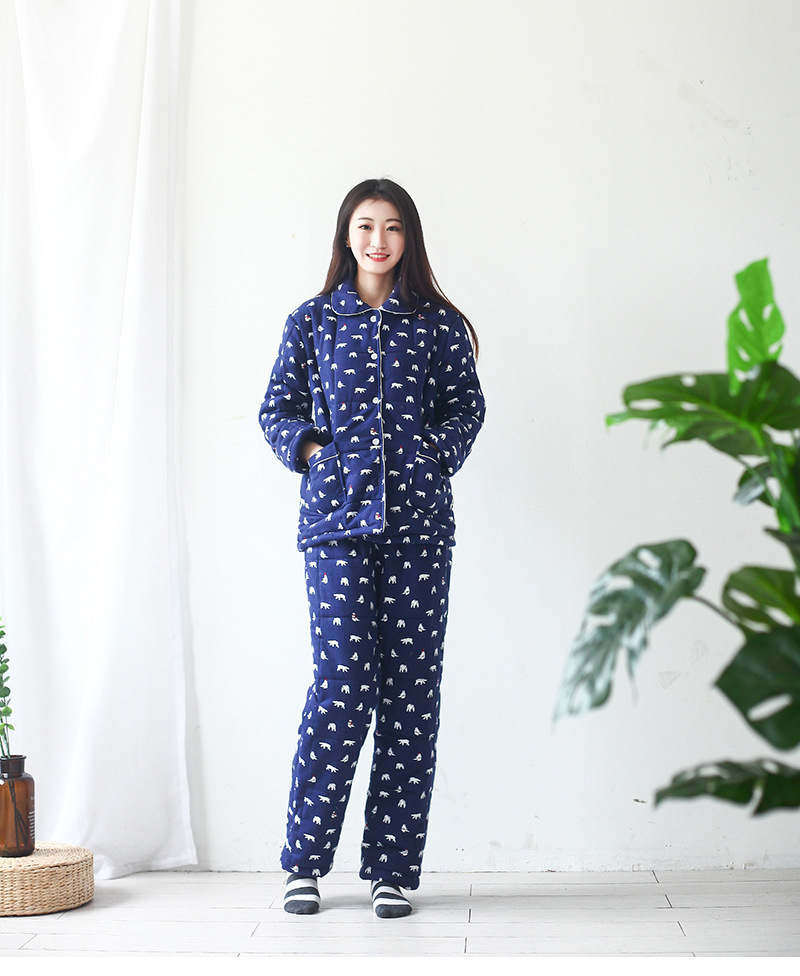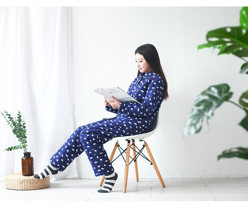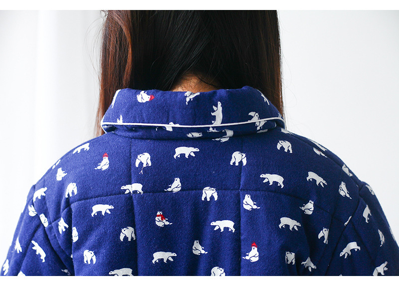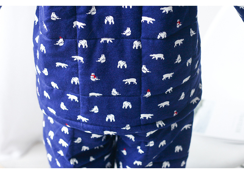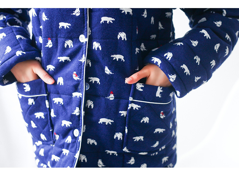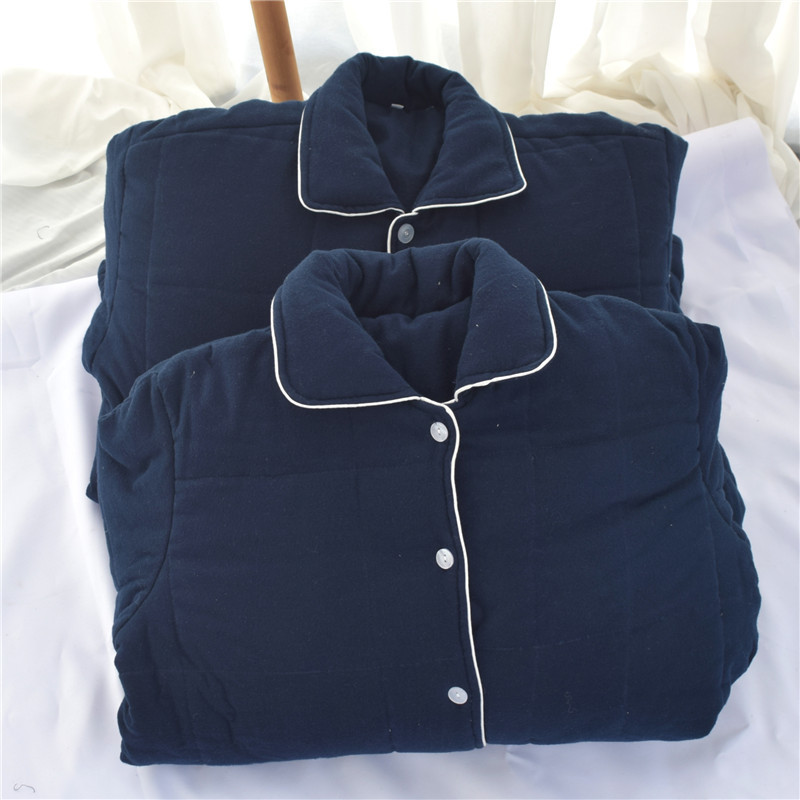 面料:表层全棉磨毛绒布,中层优质棉花,里层全棉内衬(女款为针织棉,男款为双层纱布)。