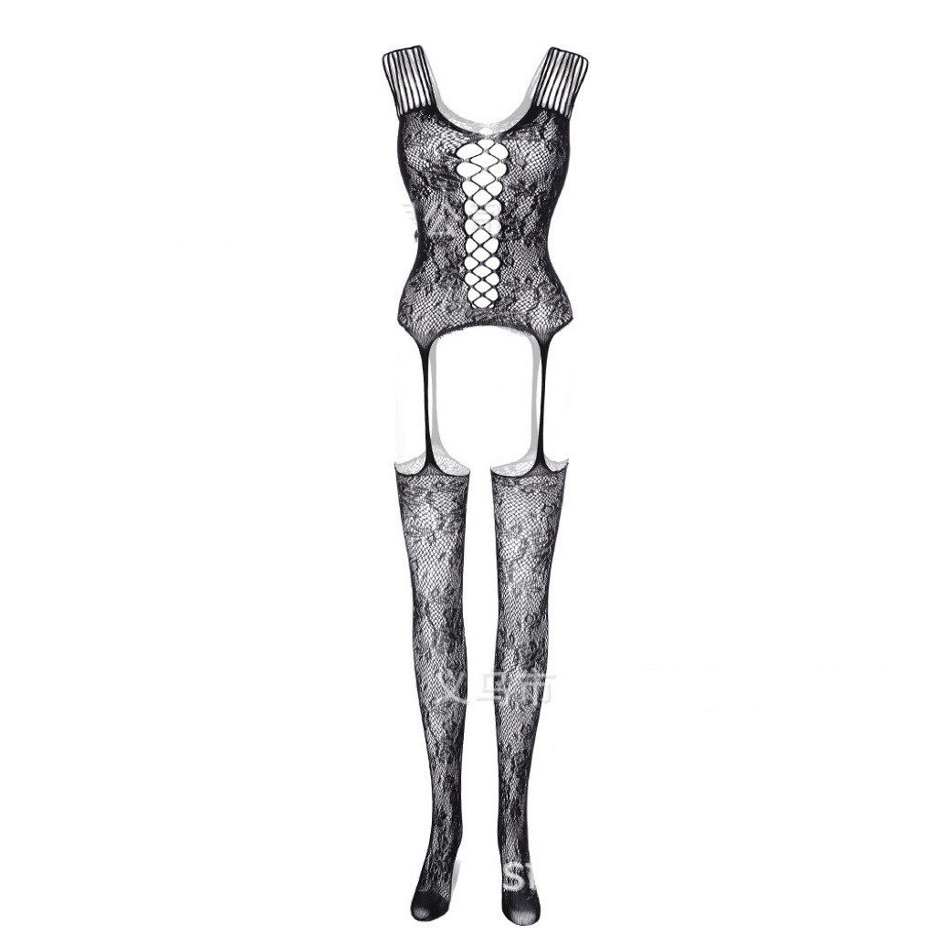 유럽과 미국의 섹시한 민소매 속옷 섹시한 속옷 자카드 백리스 라인 투명 오픈 크로트 슬링 통합 팬티 스타킹