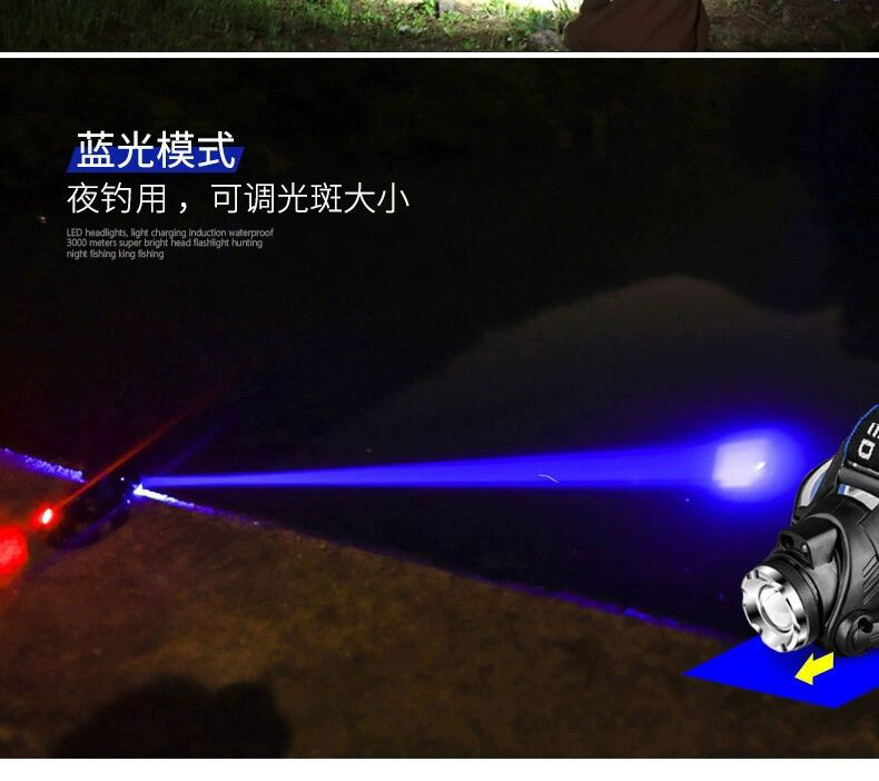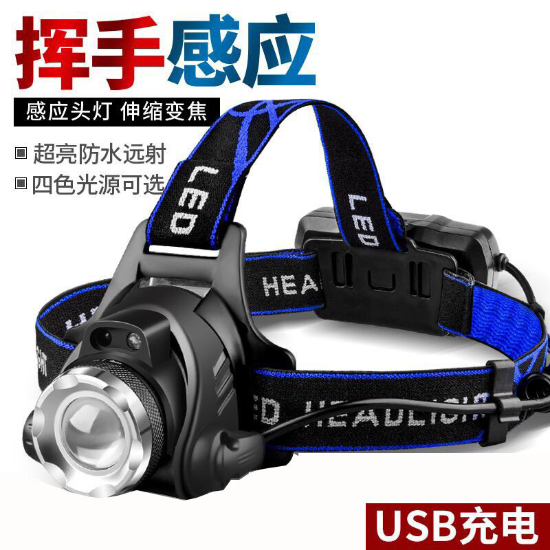 국경 간 밝은 전조등 LED 흔들며 유도 충전 조명 줌 헤드 장착 야외 야간 낚시 램프 광부의 램프