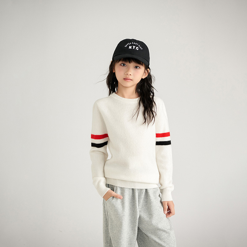 어린이 양모 스웨터 남성과 여성의 중년 어린이 반 터틀넥 스웨터 트리컬러 슬리브 루즈베이스 셔츠 어린이 아기의 최고 트렌디스토어 가기