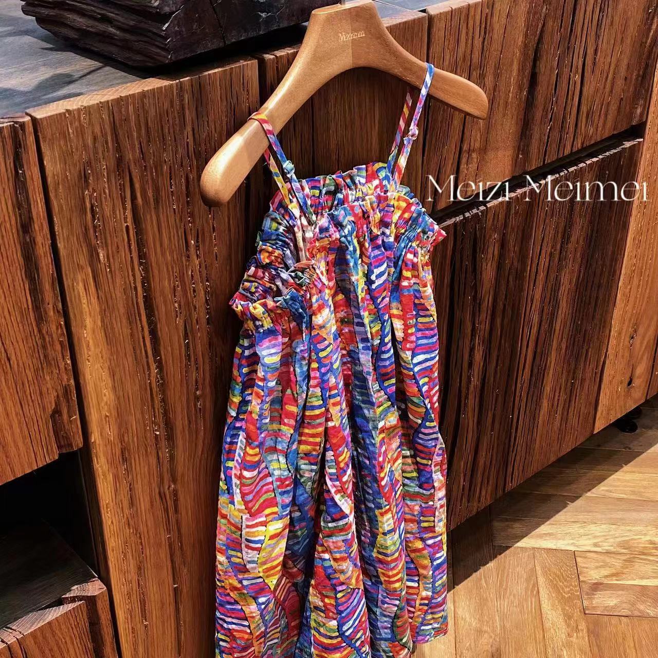 [재고 있음] XQ238013 아동용 서스펜더 스커트 2023 여름 신작 꽃무늬 도파민 스타일 드레스