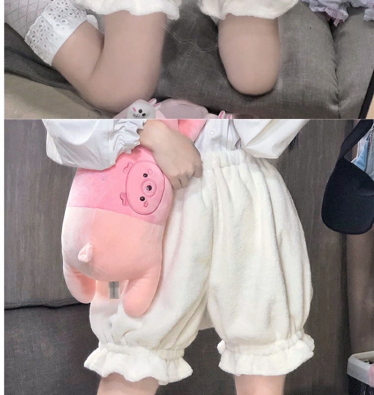 기모 호박 바지 가을과 겨울 JK 안전 바지 Lolita 일본 귀여운 외부 착용 플러시 따뜻한 레깅스 반바지
