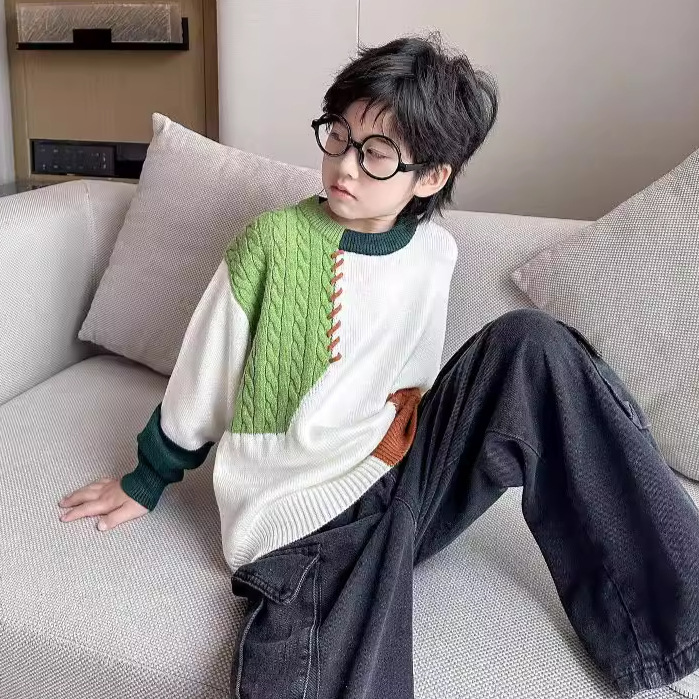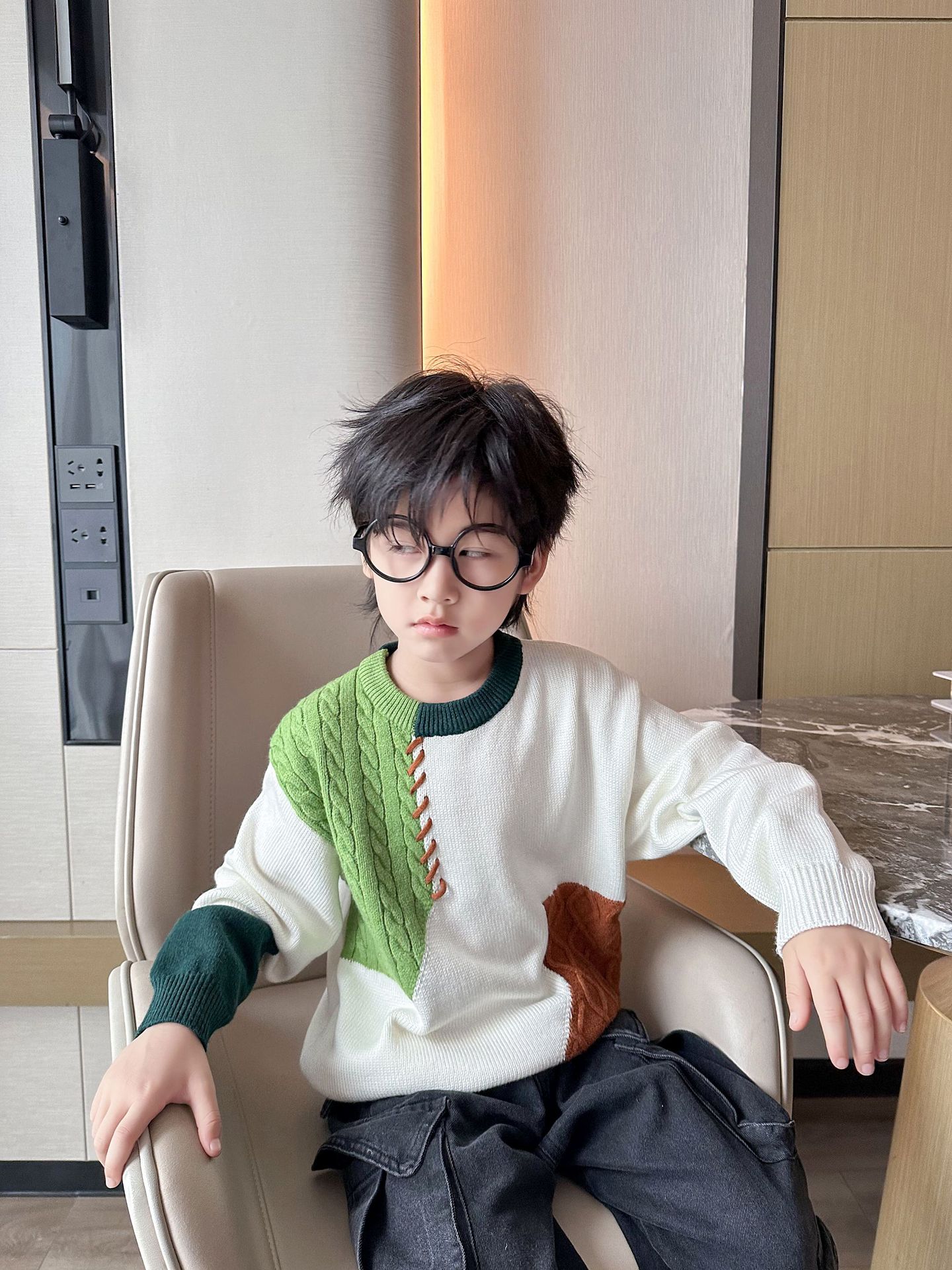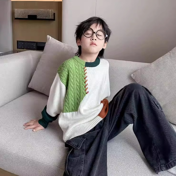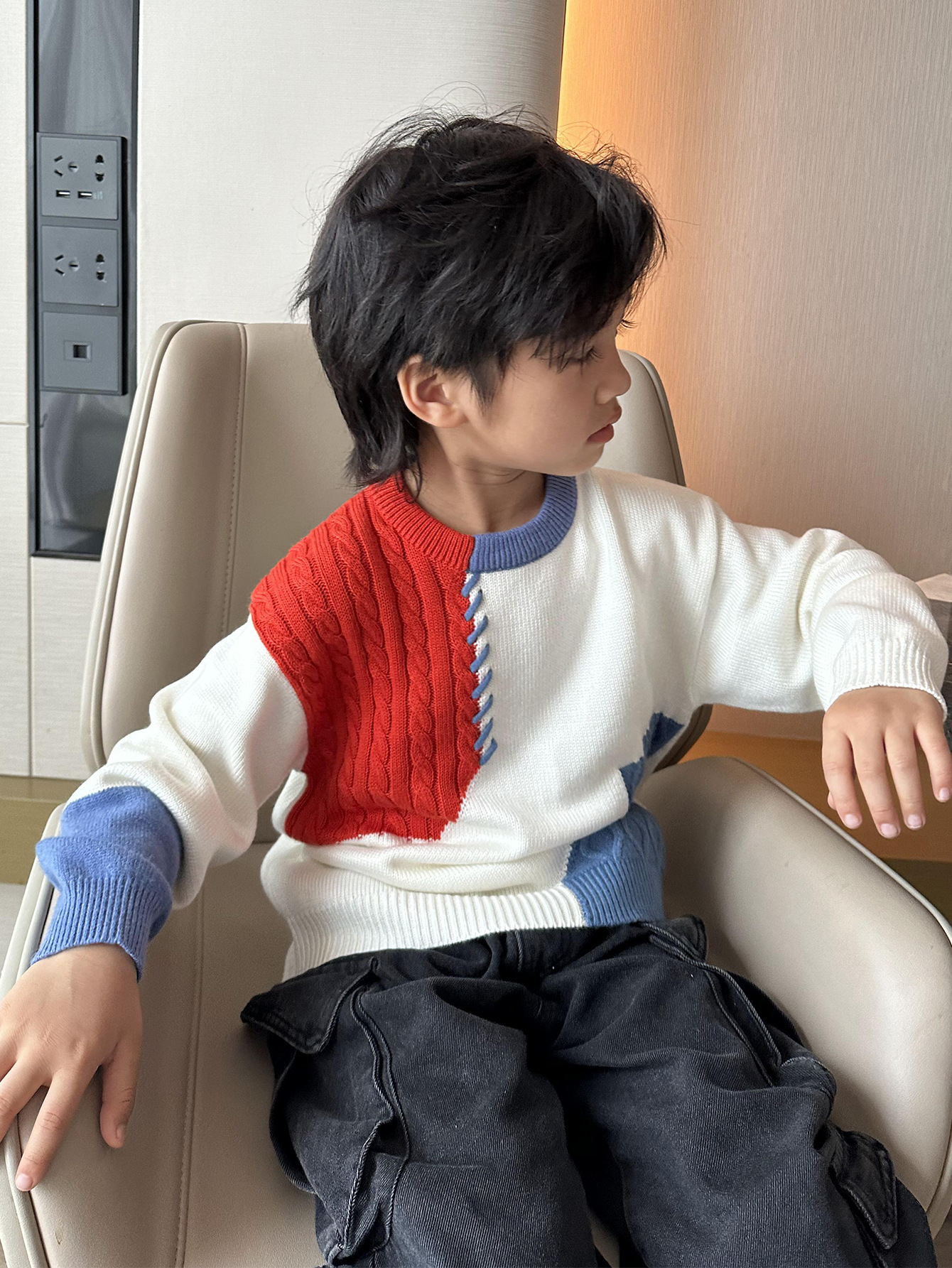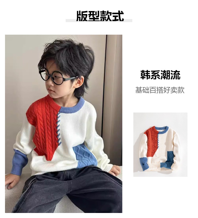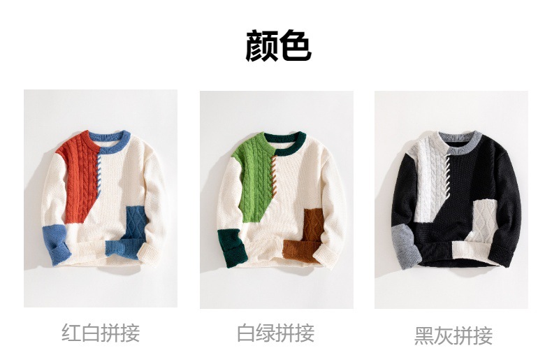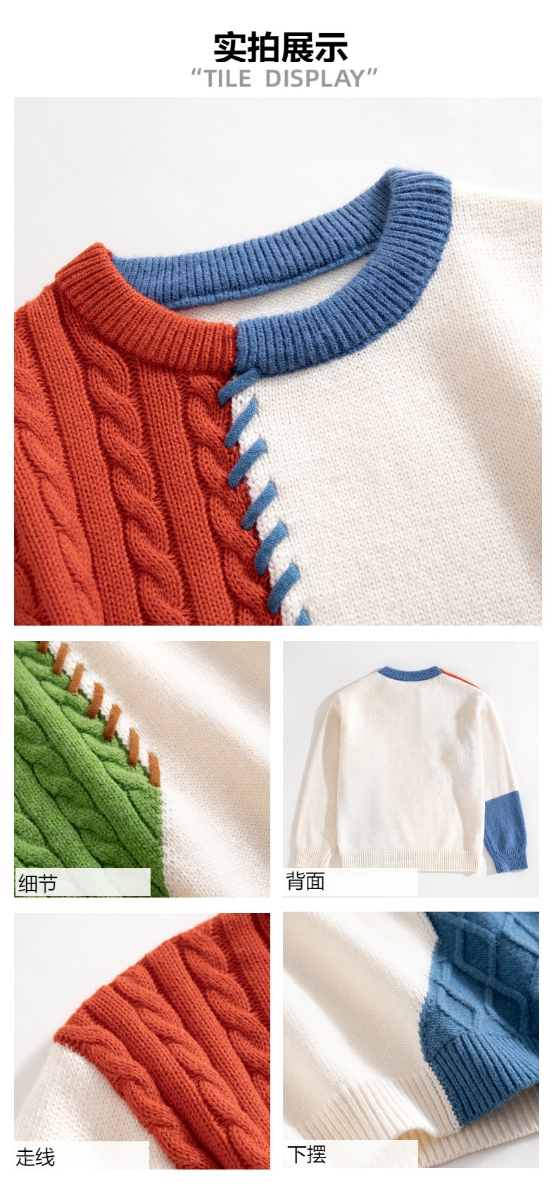 디자인 센스 스웨터 소년의 아메리칸 스타일 레트로 콘트라스트 컬러 스티칭 트렌디 한 브랜드 패션 트렌디 라운드 넥 루즈 니트 탑스토어 가기