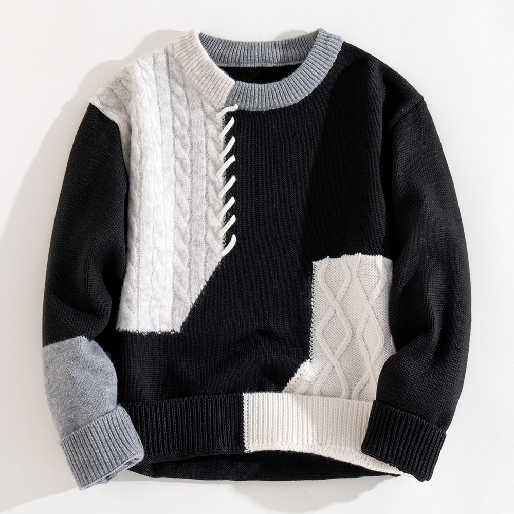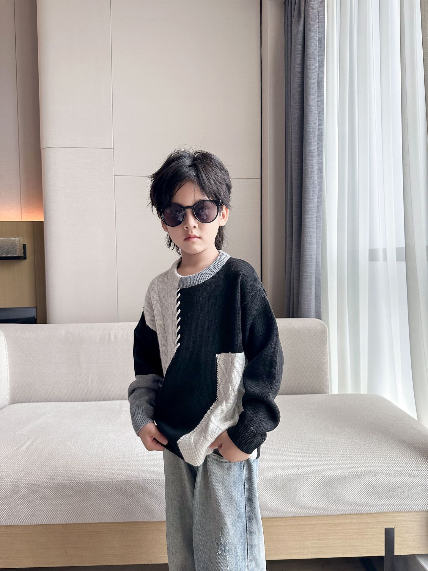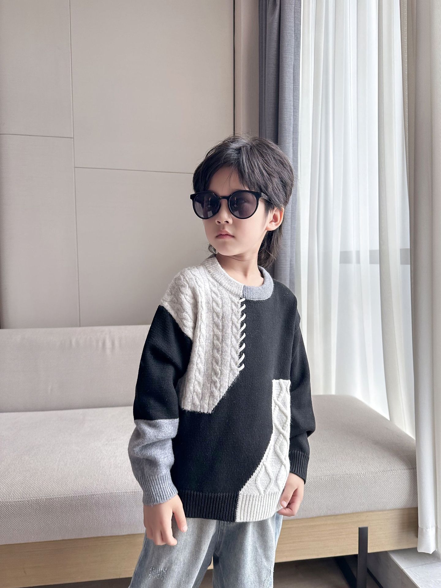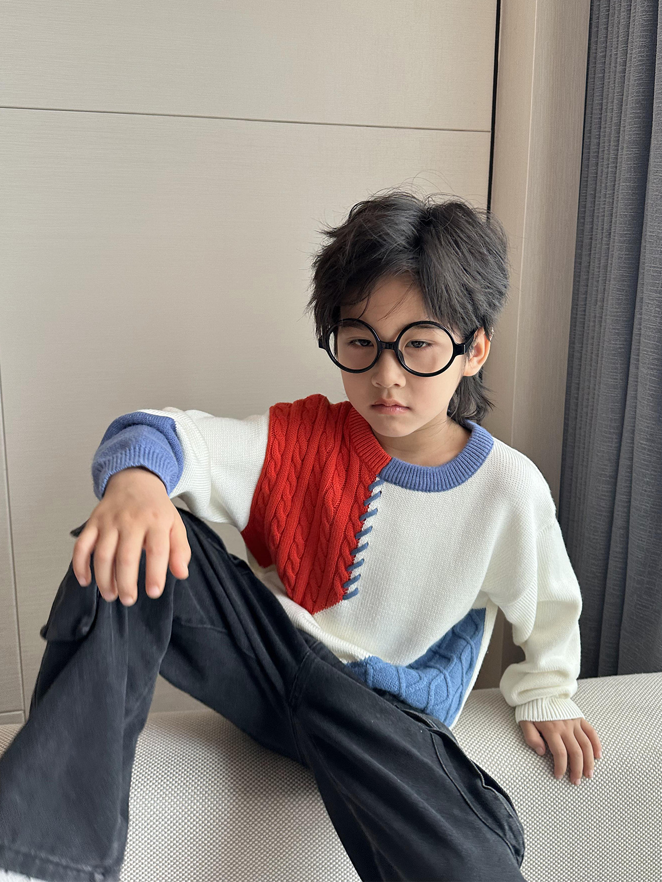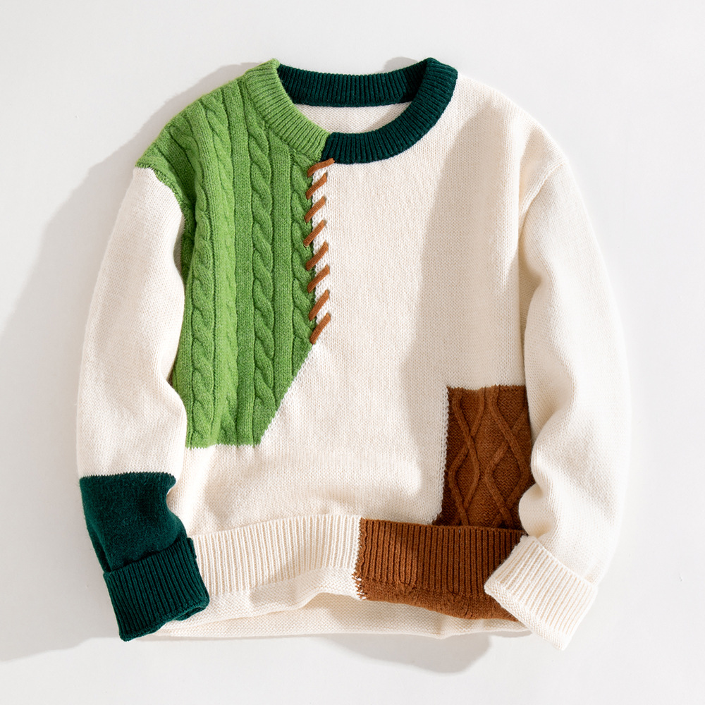 디자인 센스 스웨터 소년의 아메리칸 스타일 레트로 콘트라스트 컬러 스티칭 트렌디 한 브랜드 패션 트렌디 라운드 넥 루즈 니트 탑스토어 가기
