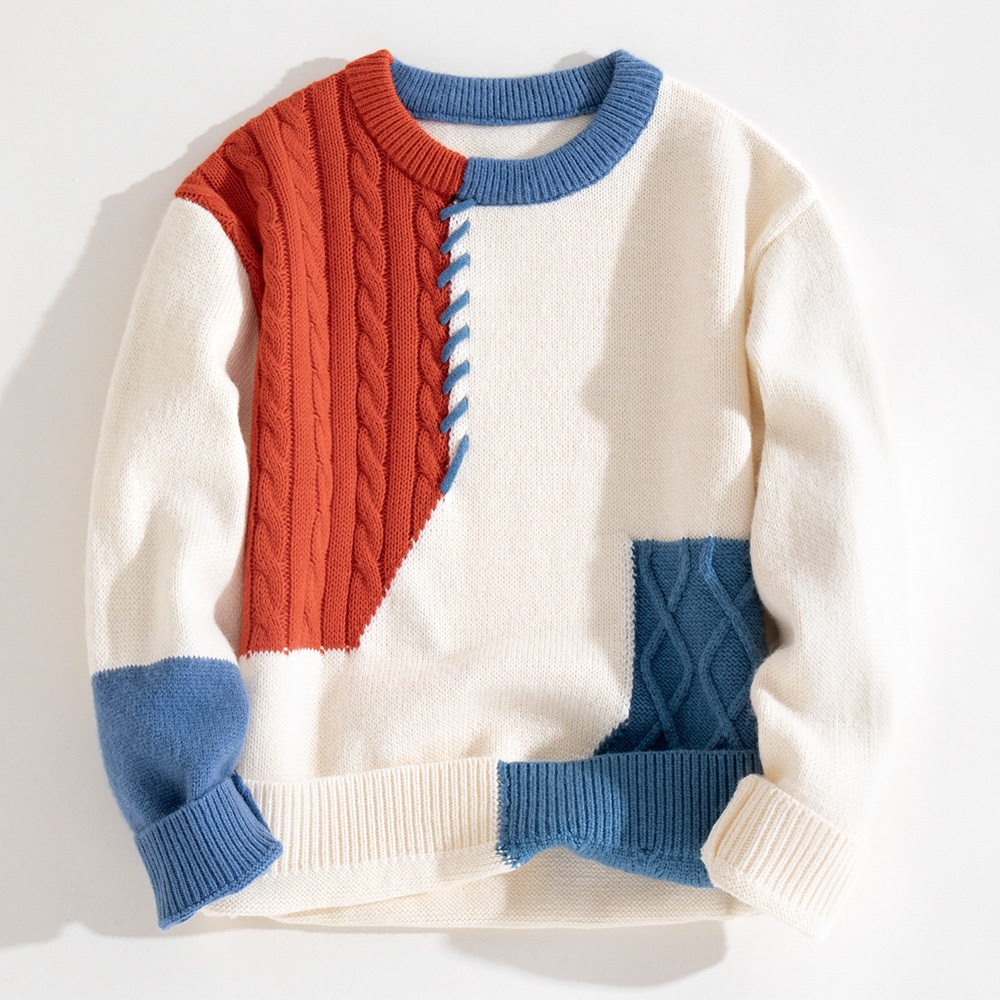 디자인 센스 스웨터 소년의 아메리칸 스타일 레트로 콘트라스트 컬러 스티칭 트렌디 한 브랜드 패션 트렌디 라운드 넥 루즈 니트 탑