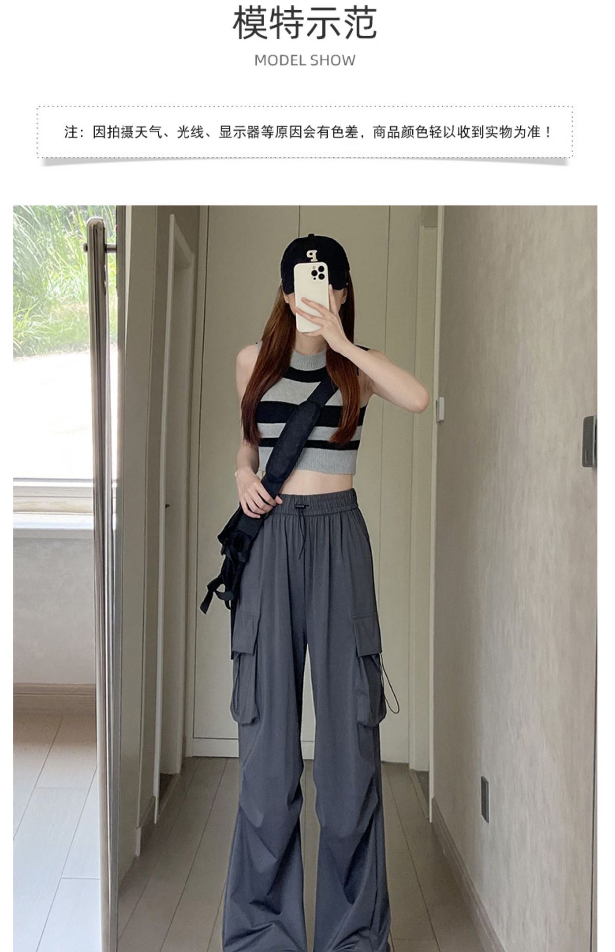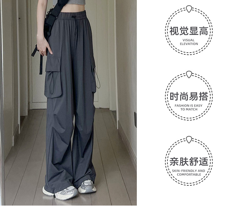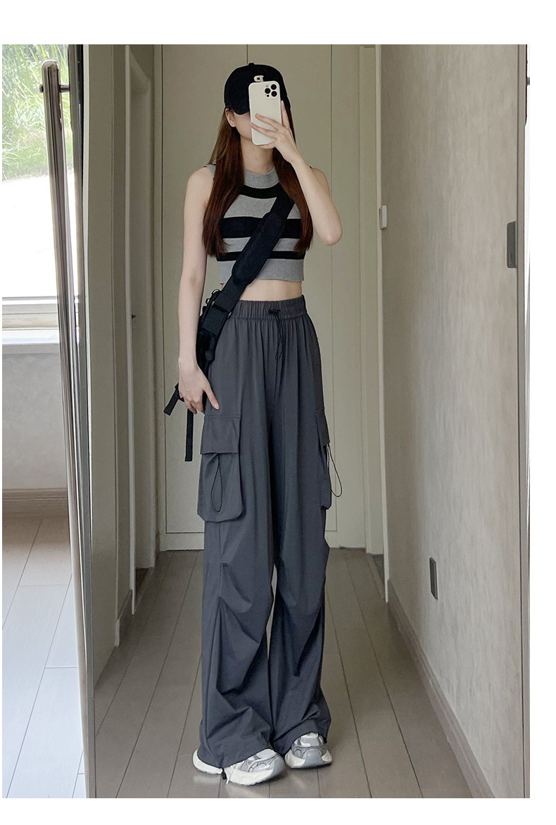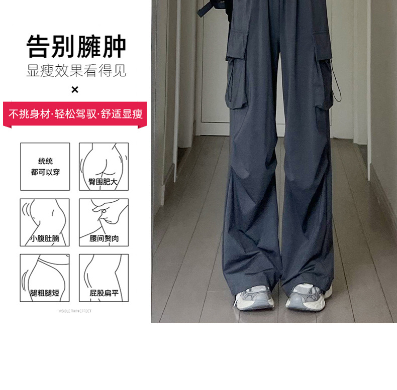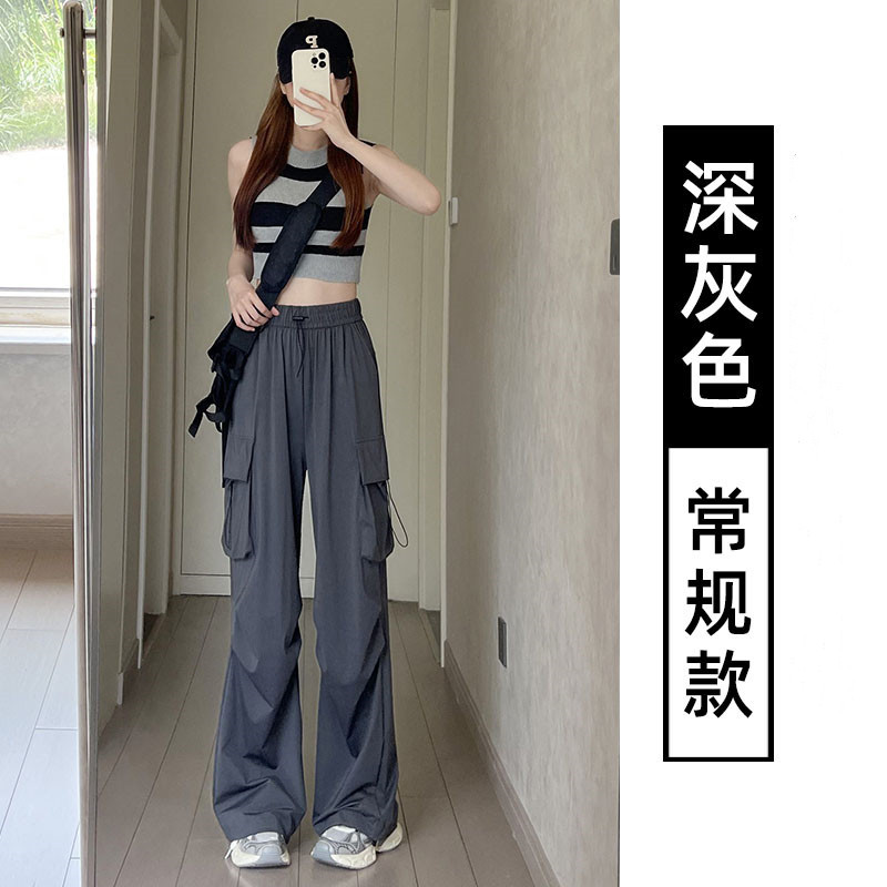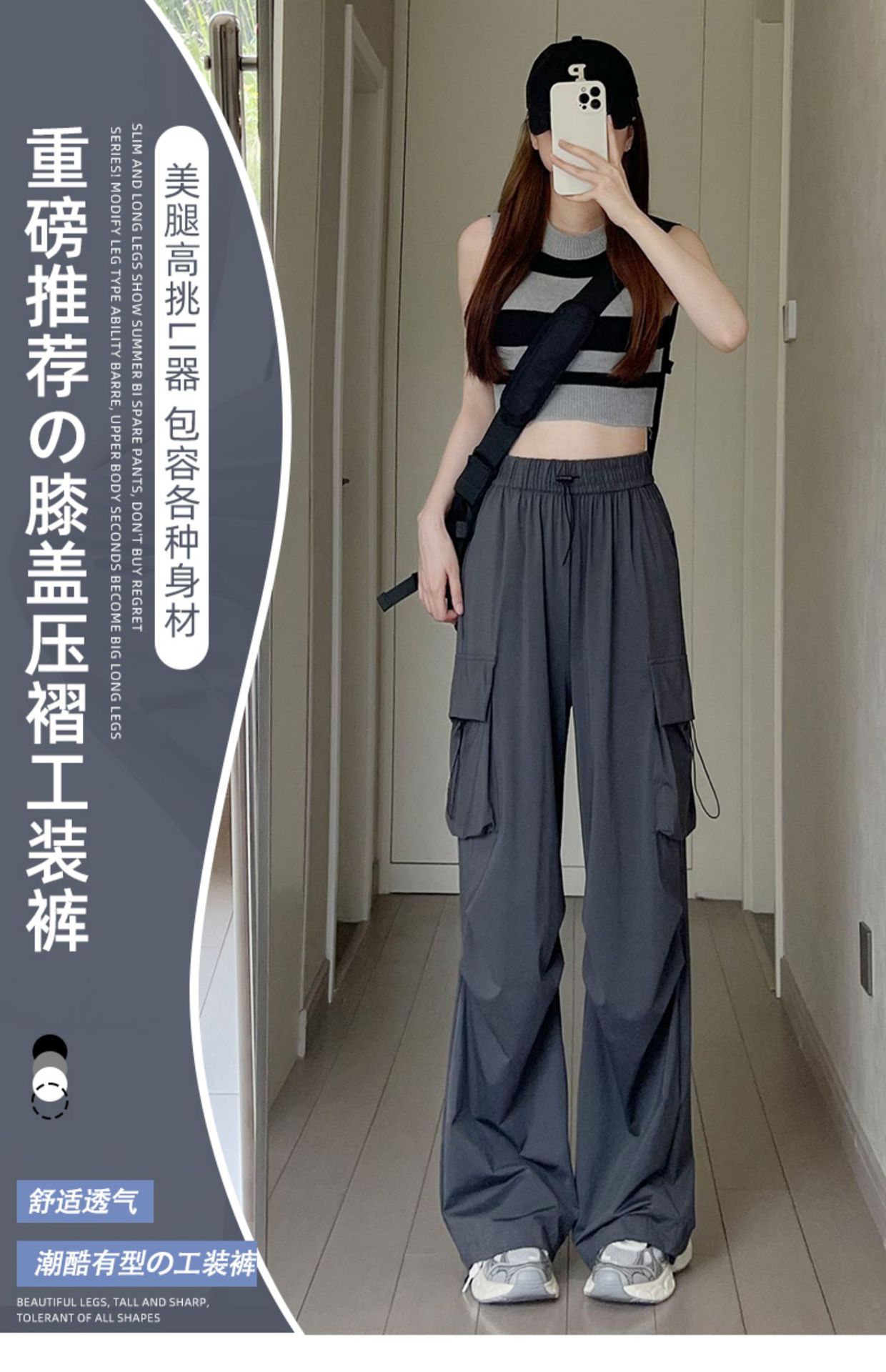 아메리칸 스타일 크록 바지 여자 2024 새로운 도착 짧은 느슨한 넓은 다리 바지 여름 얇은 등산 스포츠 바지