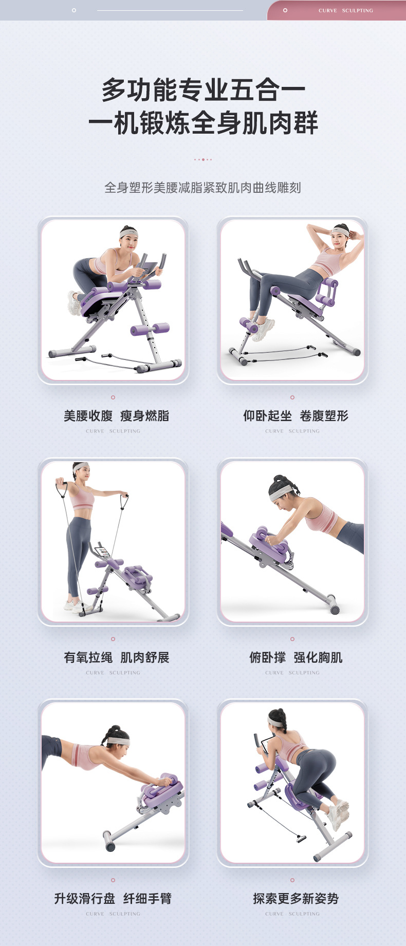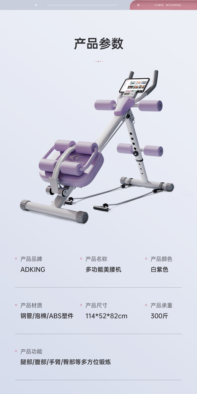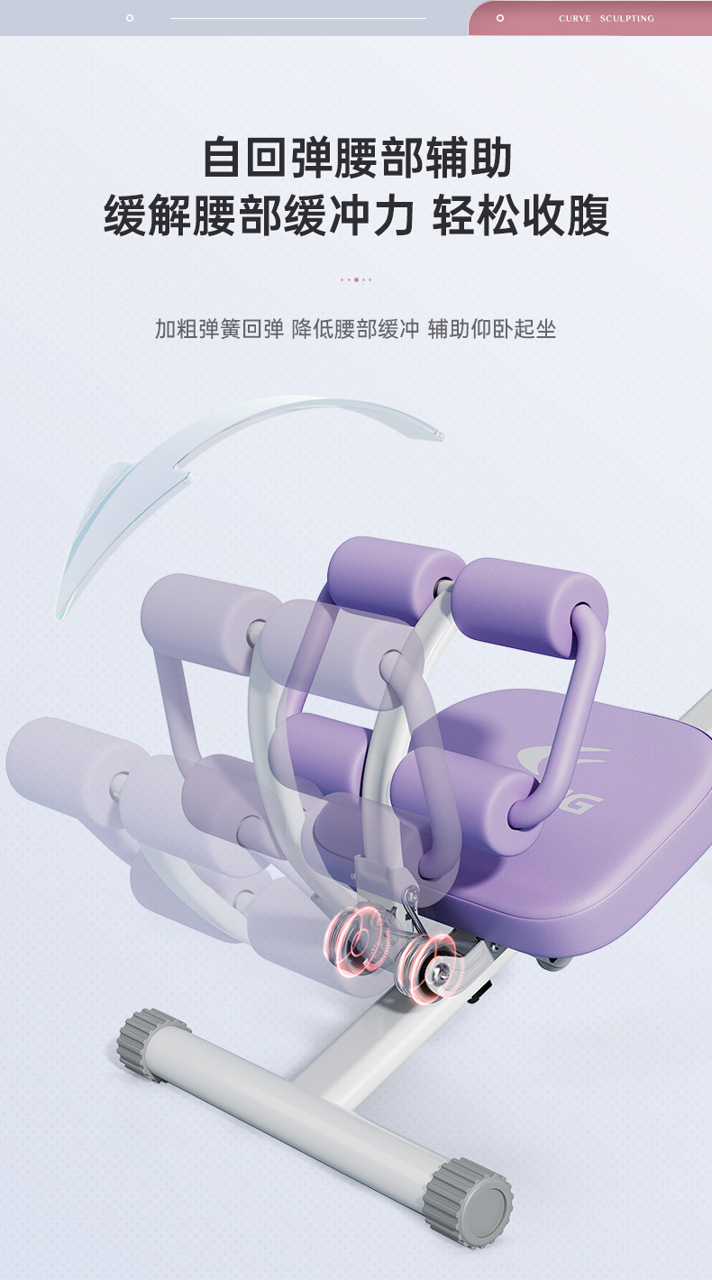 • [독점모델-퍼플화이트] 피트니스 4-in-1 허리, 윗몸일으키기 리바운드 + 복부조임 + 동적 조임끈, 빠른연습 조끼라인, 내하중 150kg
