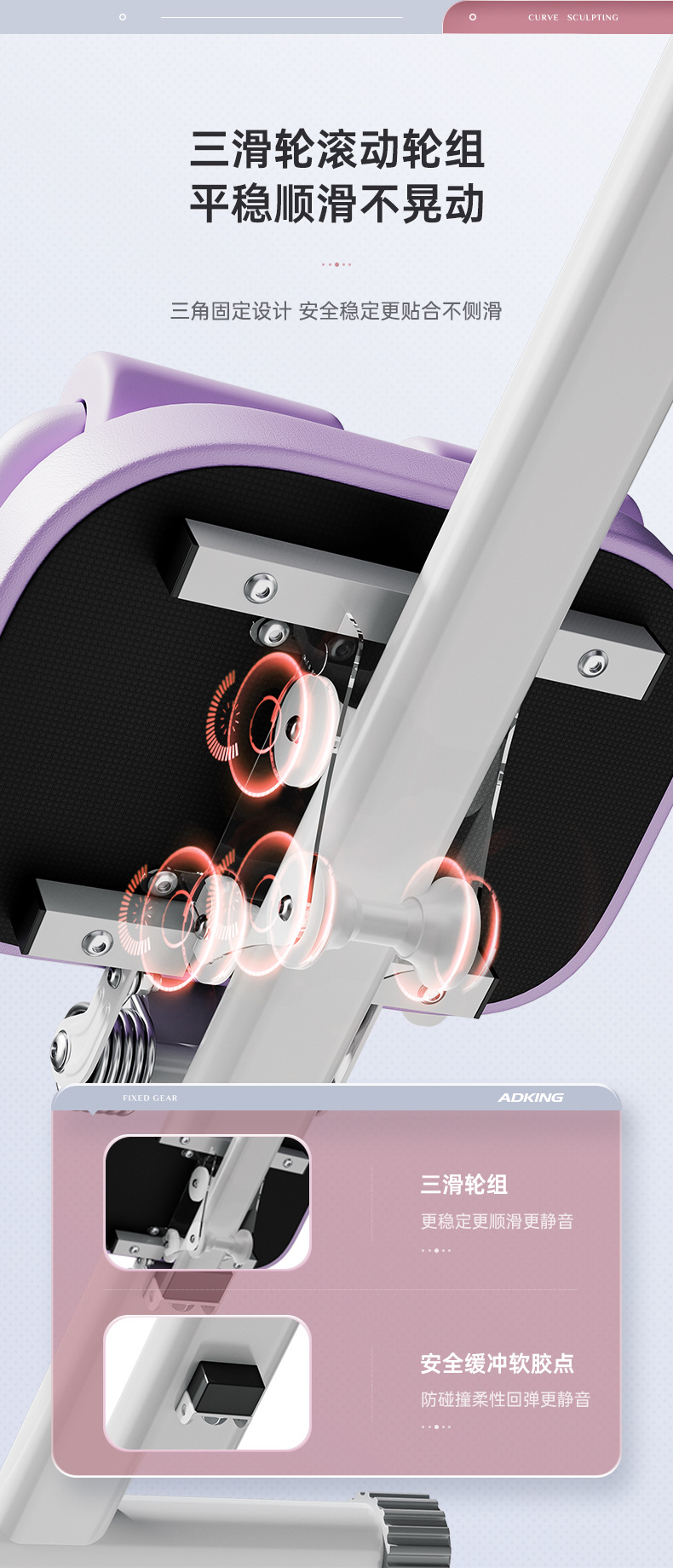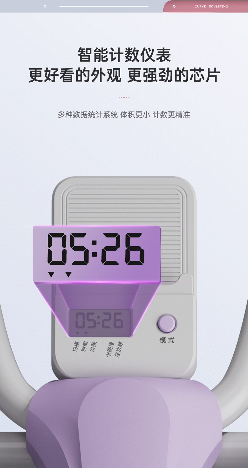 • [플래그십모델-퍼플화이트] 쓰리인원 피트니스, 허리미용+윗몸일으키기+끈운동, 카운트업, 칼로리, 과학운동(등받이 리바운드 없음)