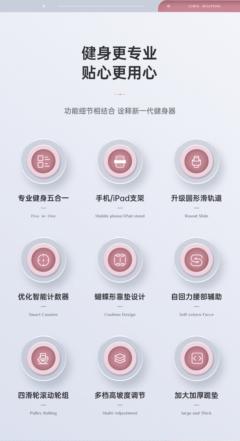 • [명예 모델 + 요가 매트] 피트니스 6-in-1 미끄럼 방지 및 내마모성 다목적 패드 스마트 카운팅 + 휴대폰 홀더 + 저항 조정