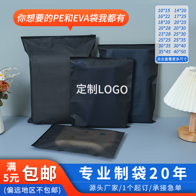 국경 간 CPE 블랙 프로스티드 자체 밀봉 가방 플라스틱 투명 의류 지퍼 가방 양말 속옷 포장 가방 맞춤