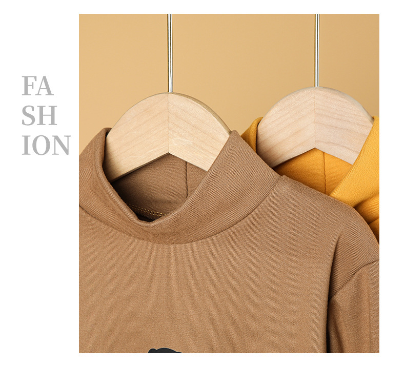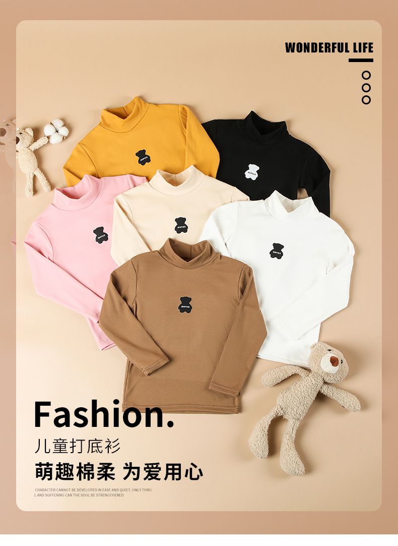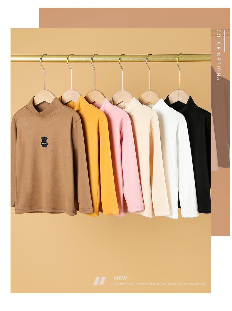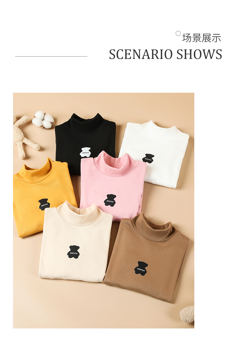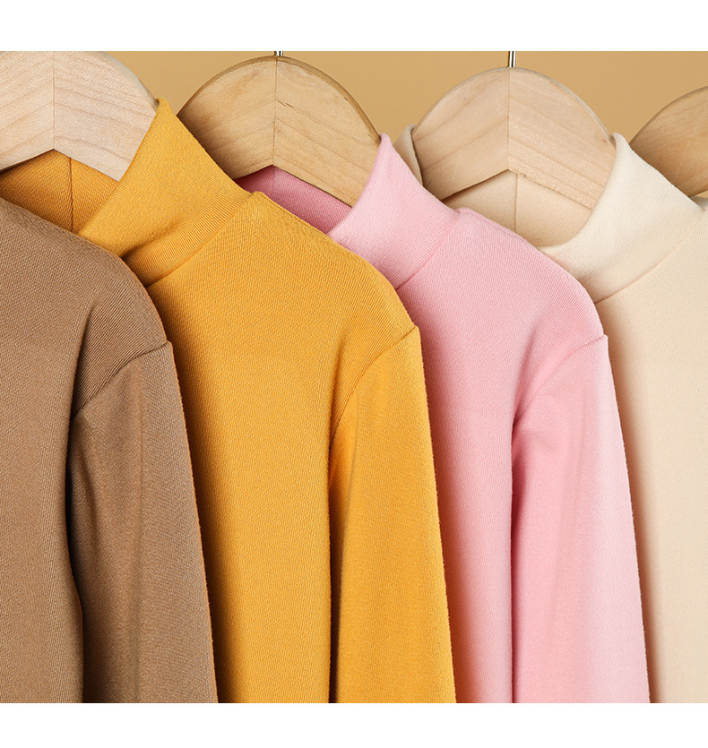긴팔 따뜻한 미드 칼라 속옷 단색 캐주얼 홈 티셔츠 어린이 가을 겨울 풀오버 다재다능한베이스 셔츠스토어 가기