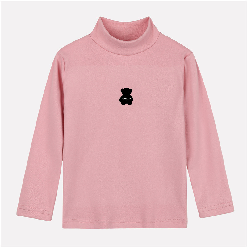 긴팔 따뜻한 미드 칼라 속옷 단색 캐주얼 홈 티셔츠 어린이 가을 겨울 풀오버 다재다능한베이스 셔츠