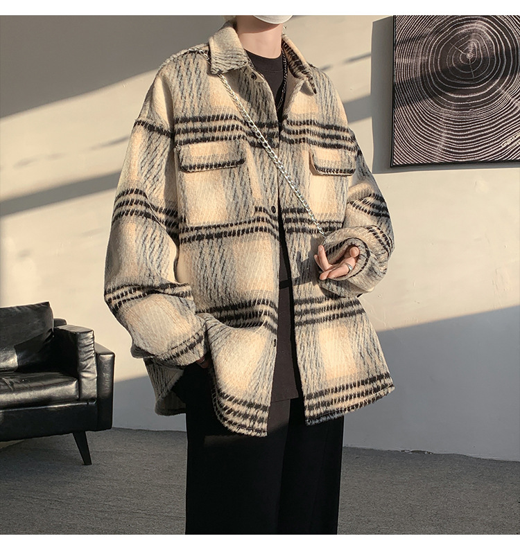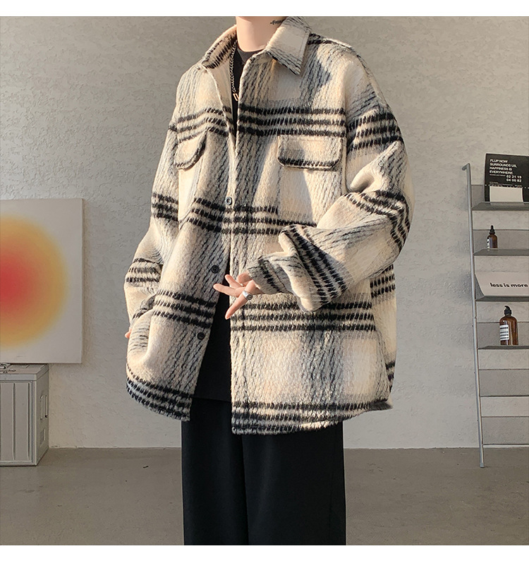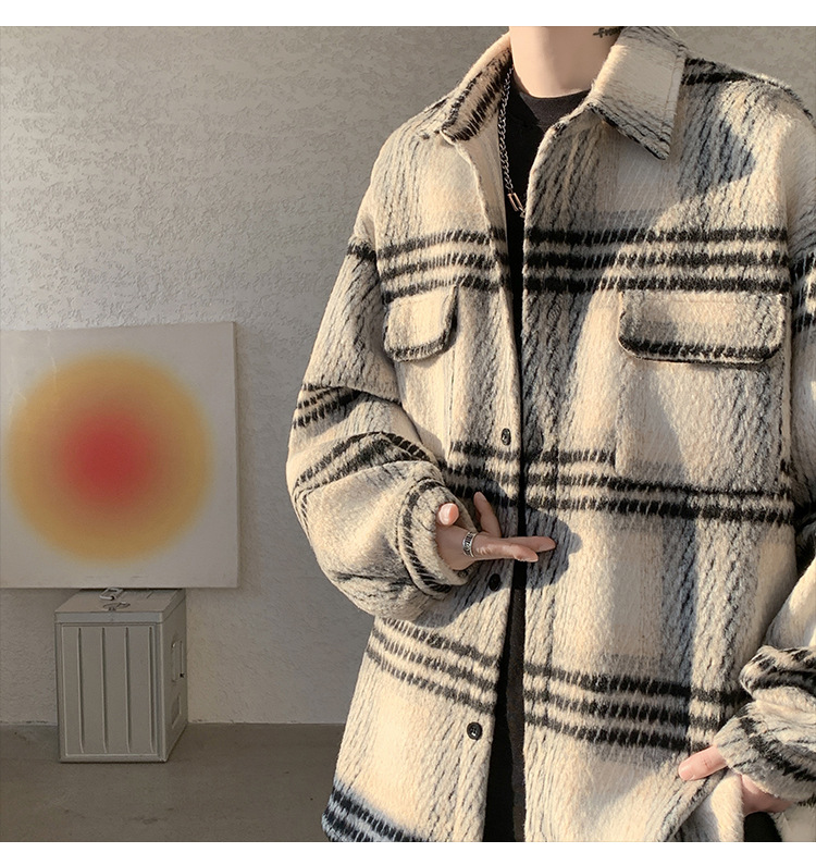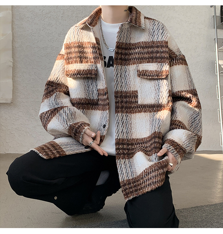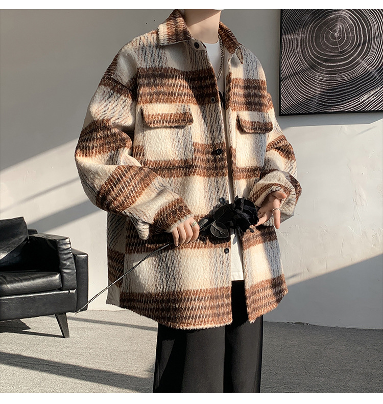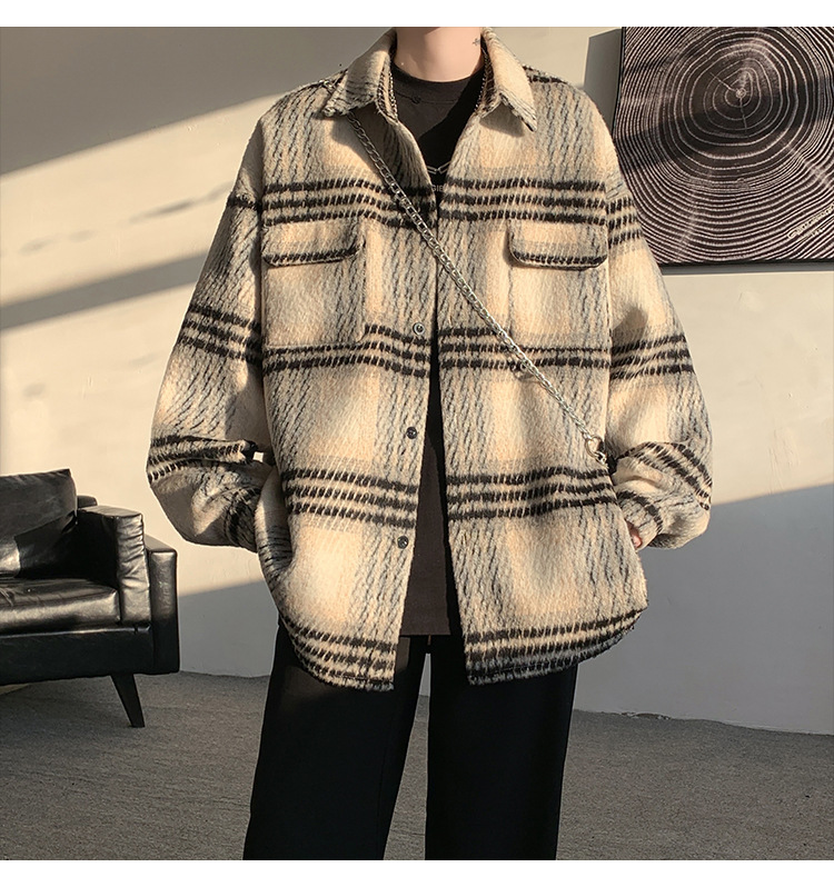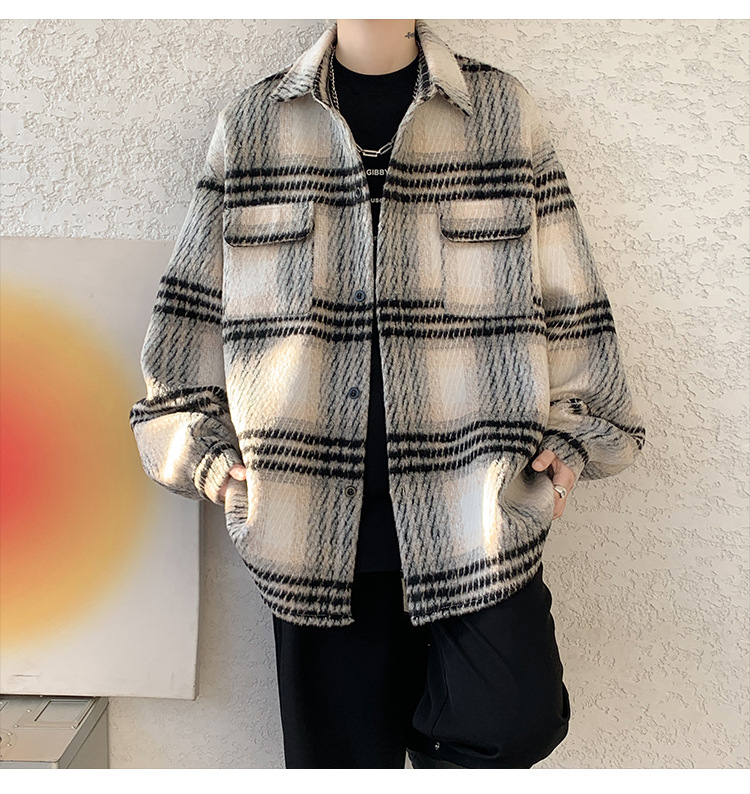 Maillard Woolen 재킷 남자의 봄과 가을 캐주얼 샤넬 스타일 격자 무늬 재킷 하이 엔드 느낌 러피 안 잘 생긴 옷 가을스토어 가기