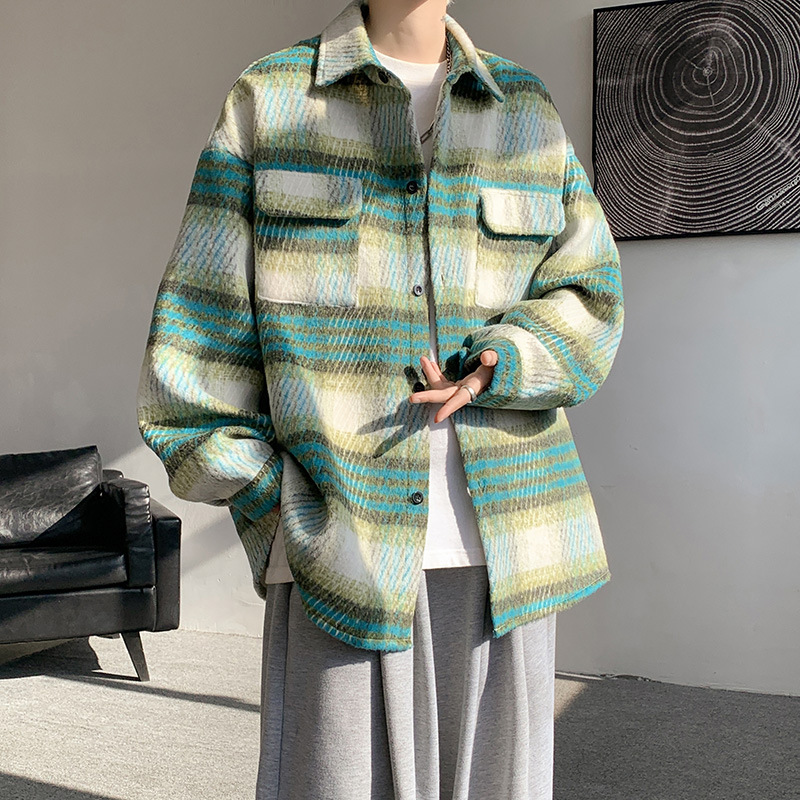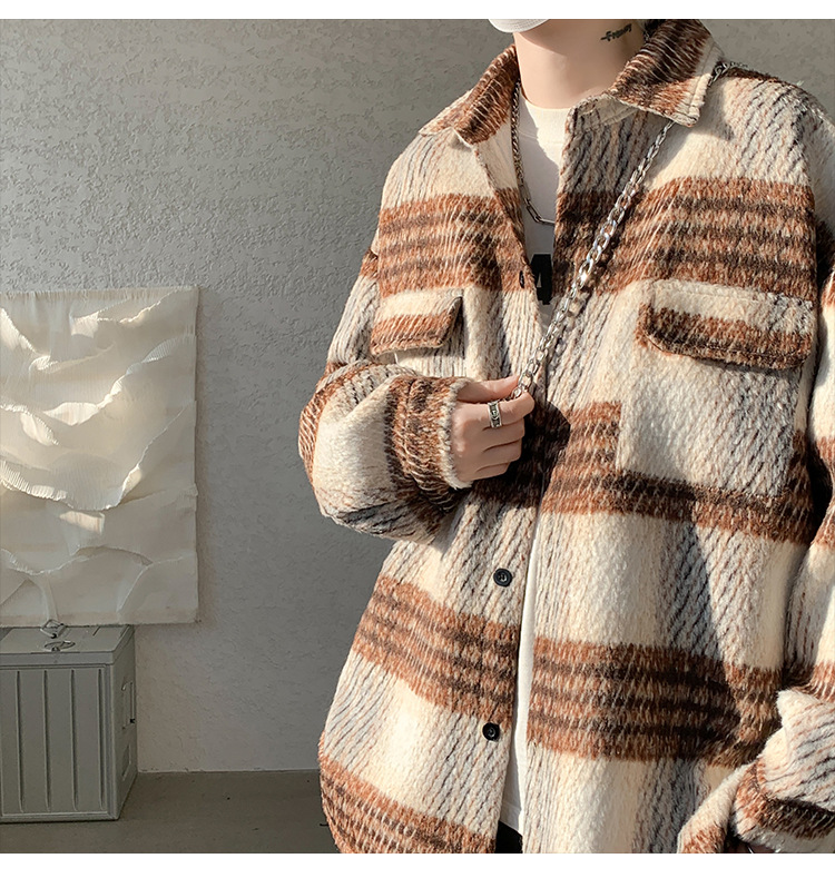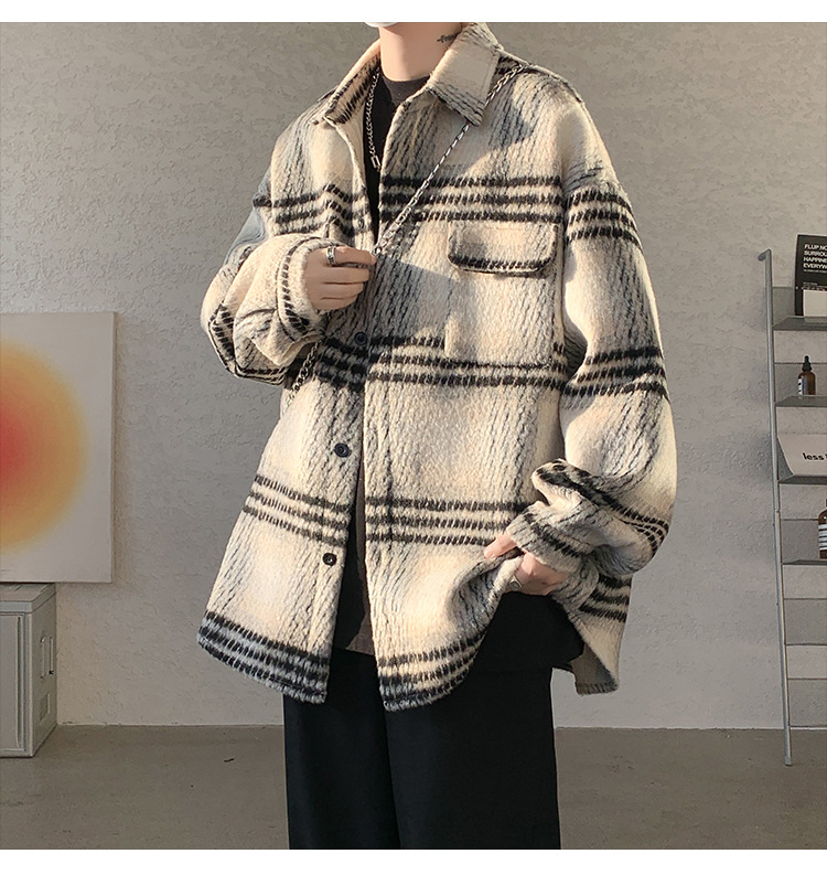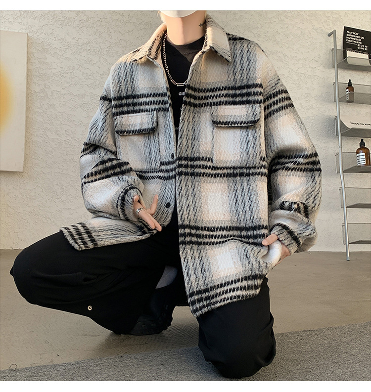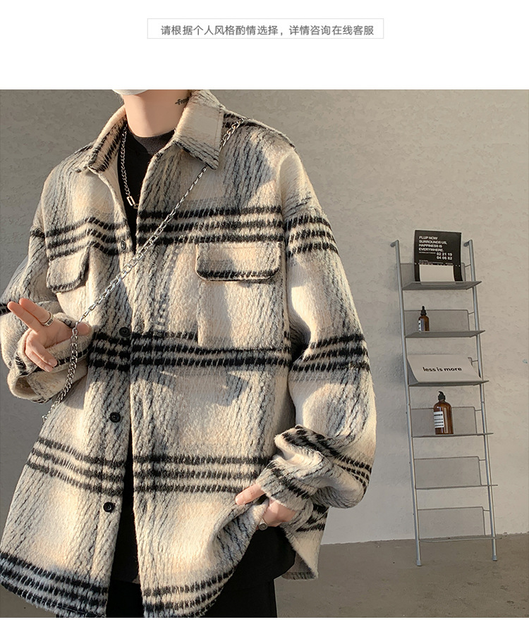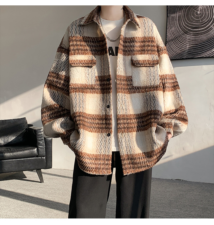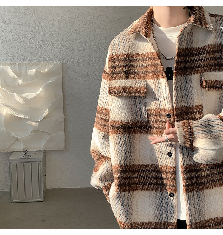 Maillard Woolen 재킷 남자의 봄과 가을 캐주얼 샤넬 스타일 격자 무늬 재킷 하이 엔드 느낌 러피 안 잘 생긴 옷 가을스토어 가기