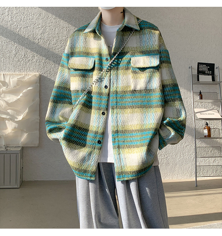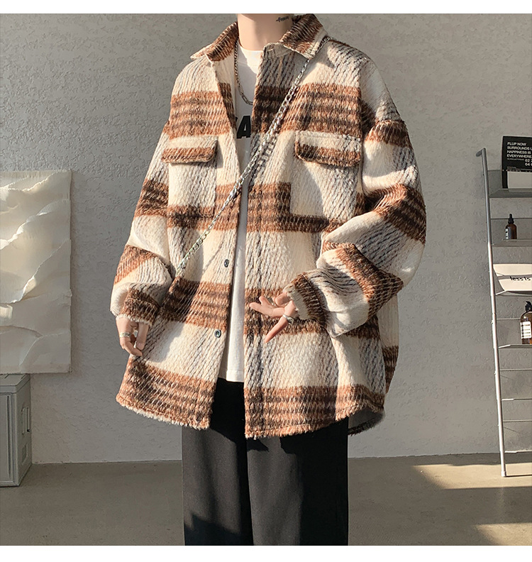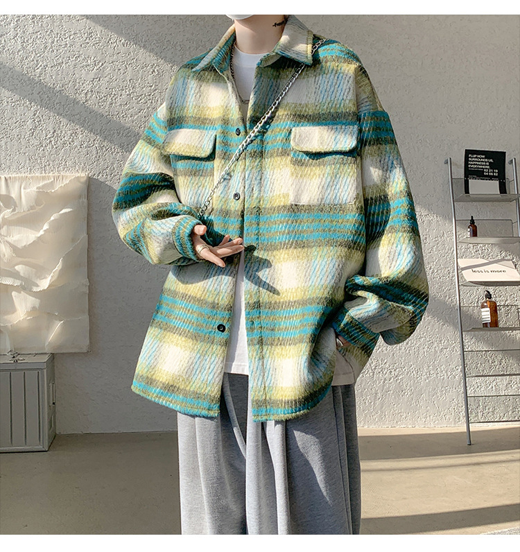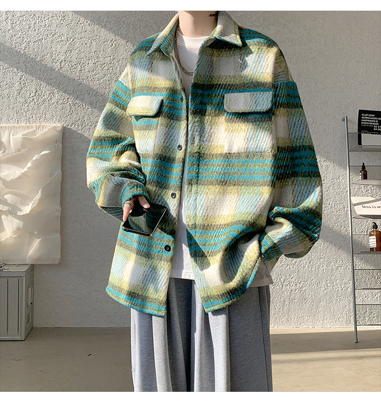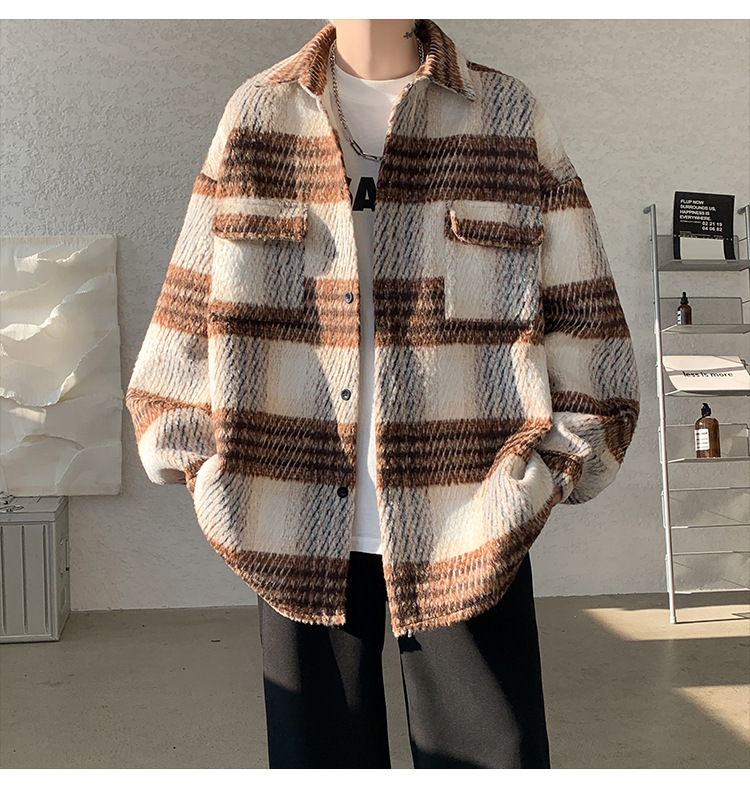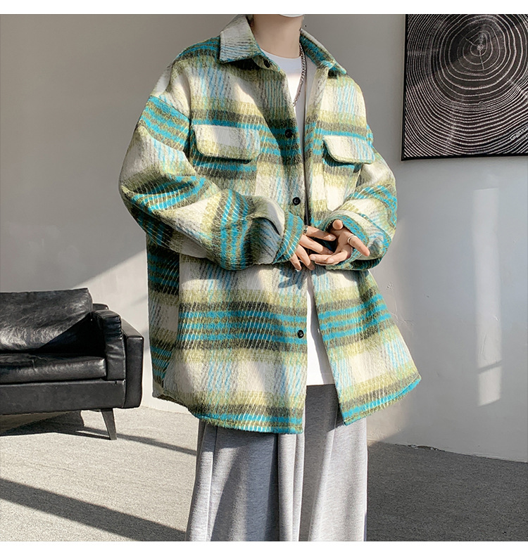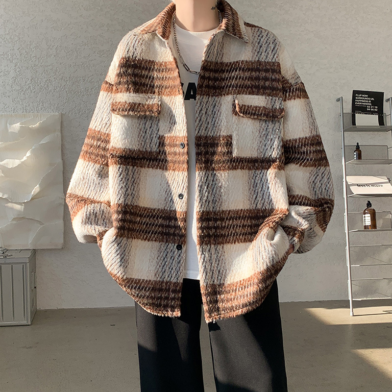 Maillard Woolen 재킷 남자의 봄과 가을 캐주얼 샤넬 스타일 격자 무늬 재킷 하이 엔드 느낌 러피 안 잘 생긴 옷 가을스토어 가기