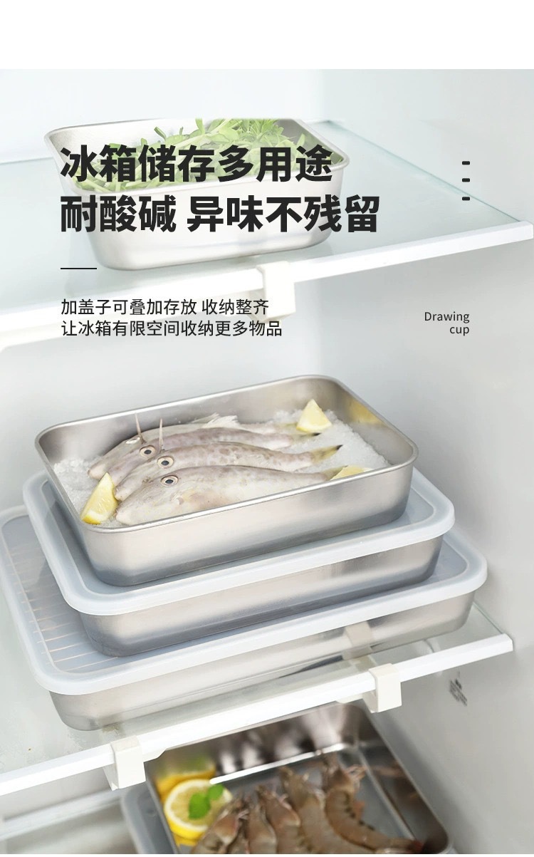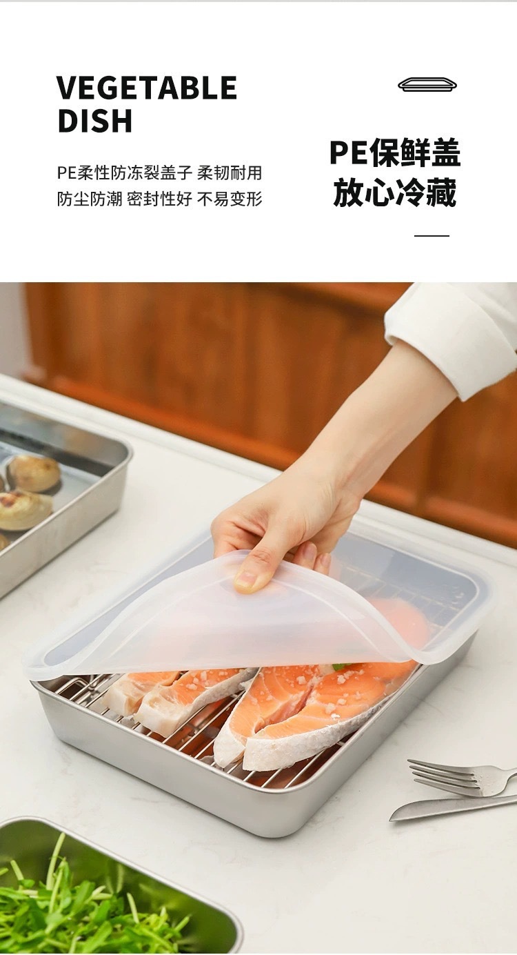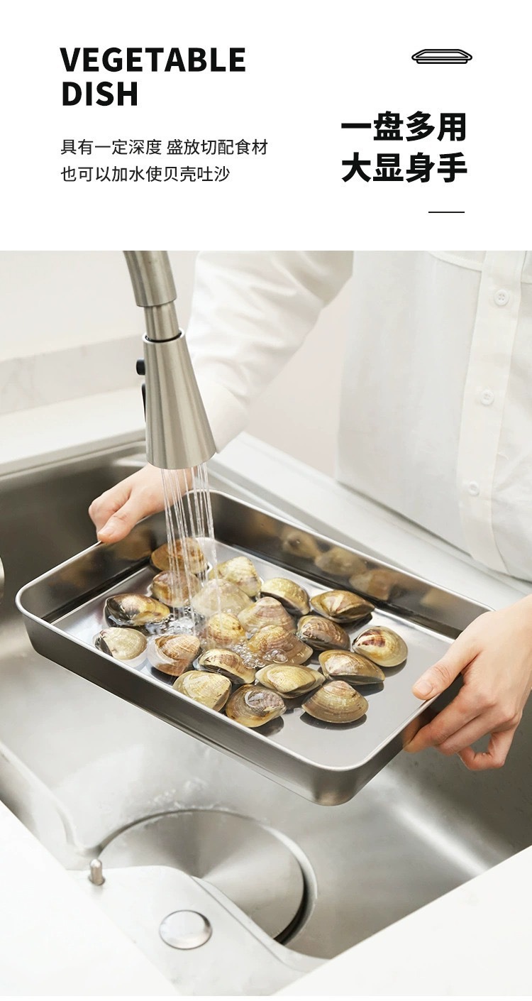 두꺼운 스테인레스 스틸 스퀘어 플레이트 뚜껑 가정용 직사각형 작은 신선한 보관 상자 트레이 타월 트레이 일본식 식품 보관스토어 가기