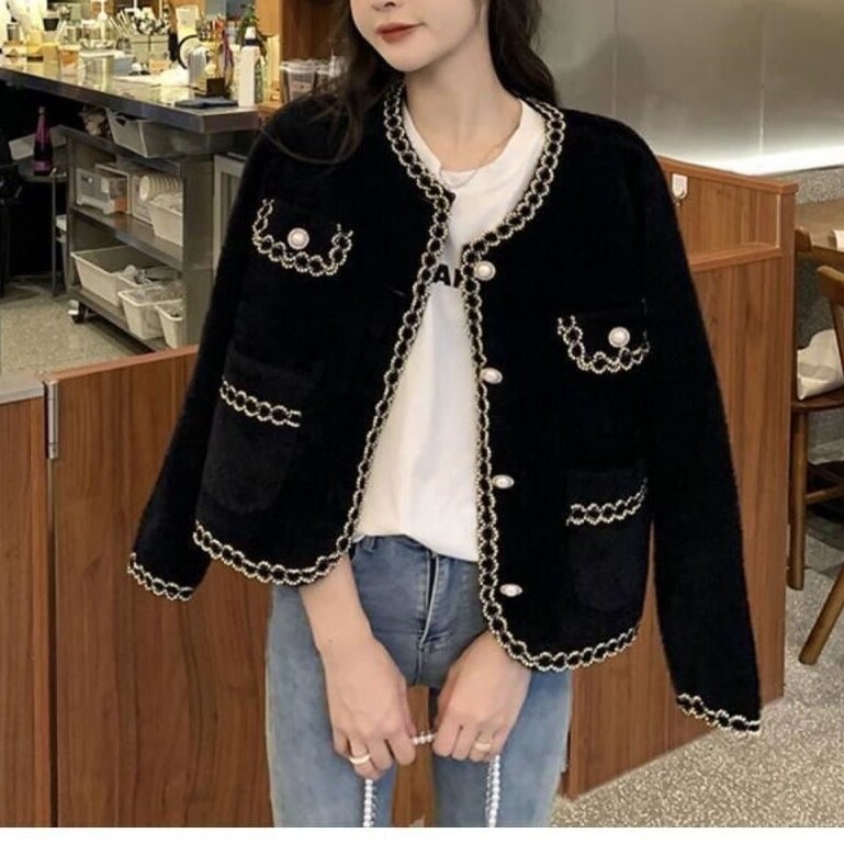 샤넬 스타일 코트 가을과 겨울 새로운 한국 스타일 짧은 밍크 벨벳 스웨터 여성 사교계 기질 밍크 벨벳 유럽 스타일