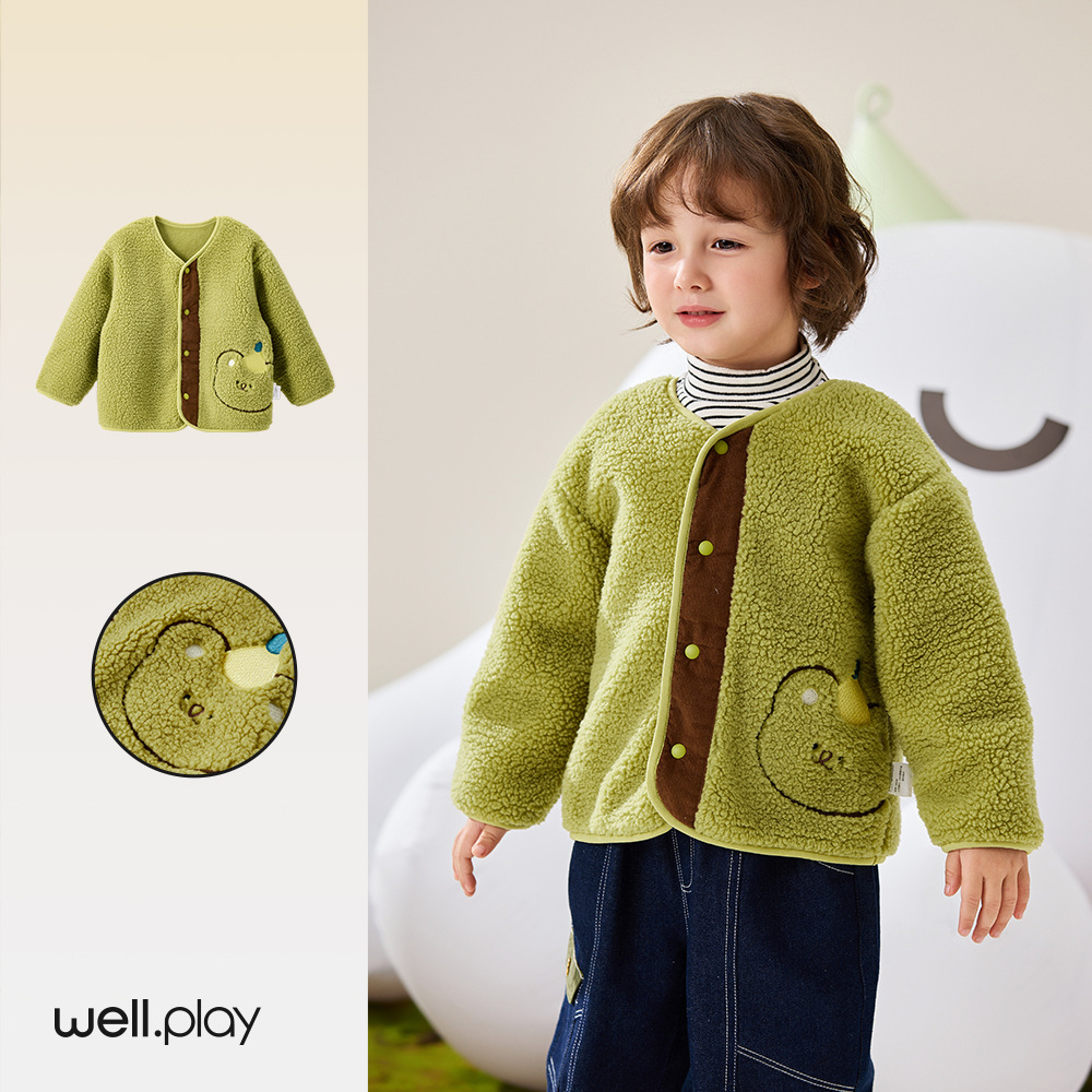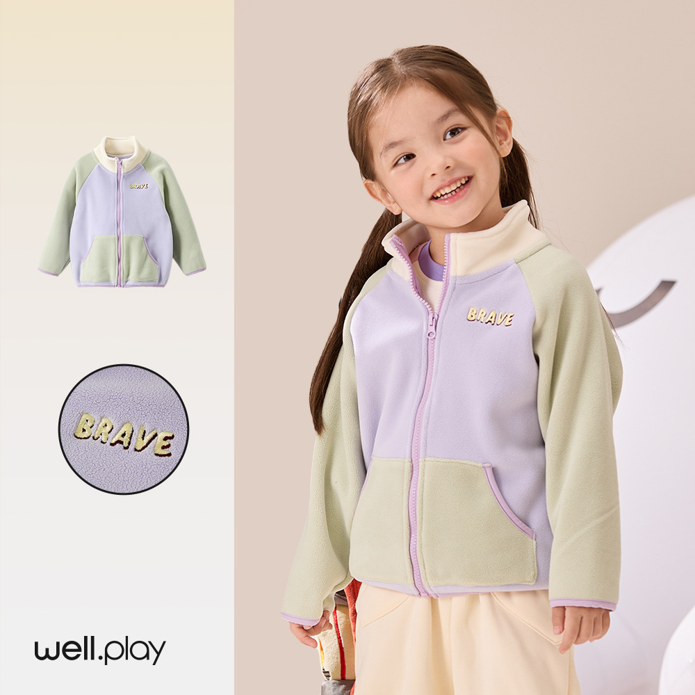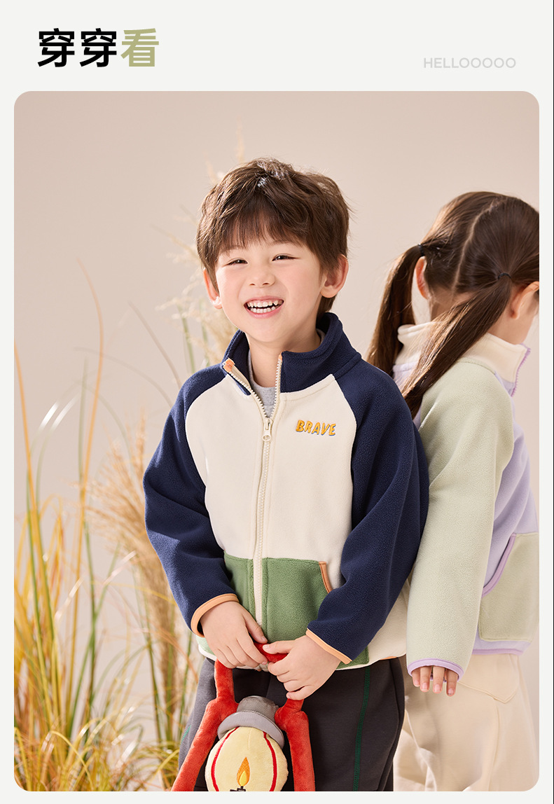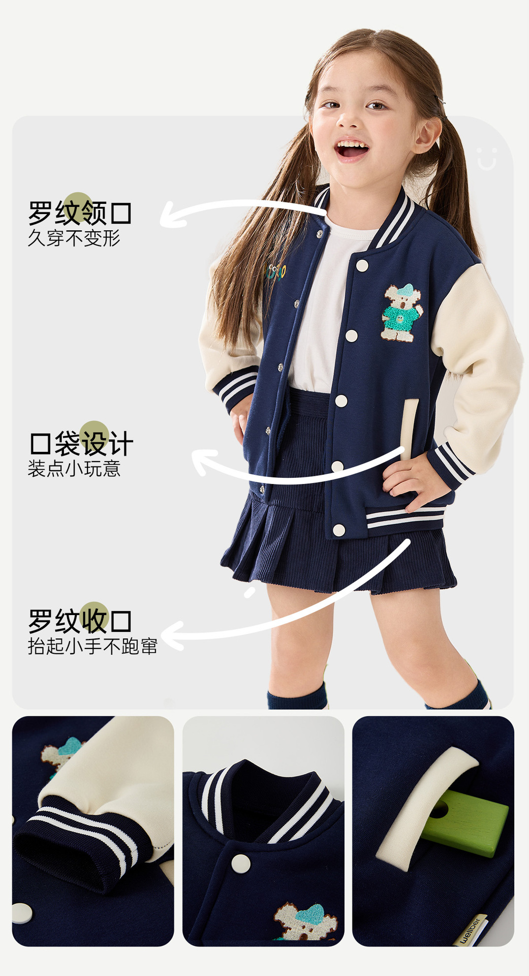 【재고정리】윌베루 아동용 두꺼운 스포츠 스타일 후드 없는 재킷, 여아 남아용, 가을 겨울용스토어 가기