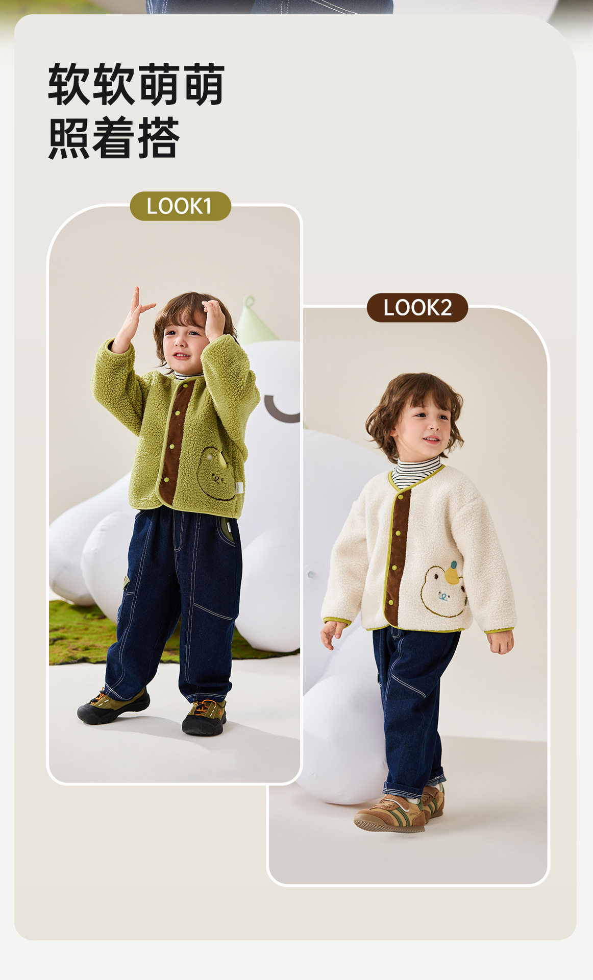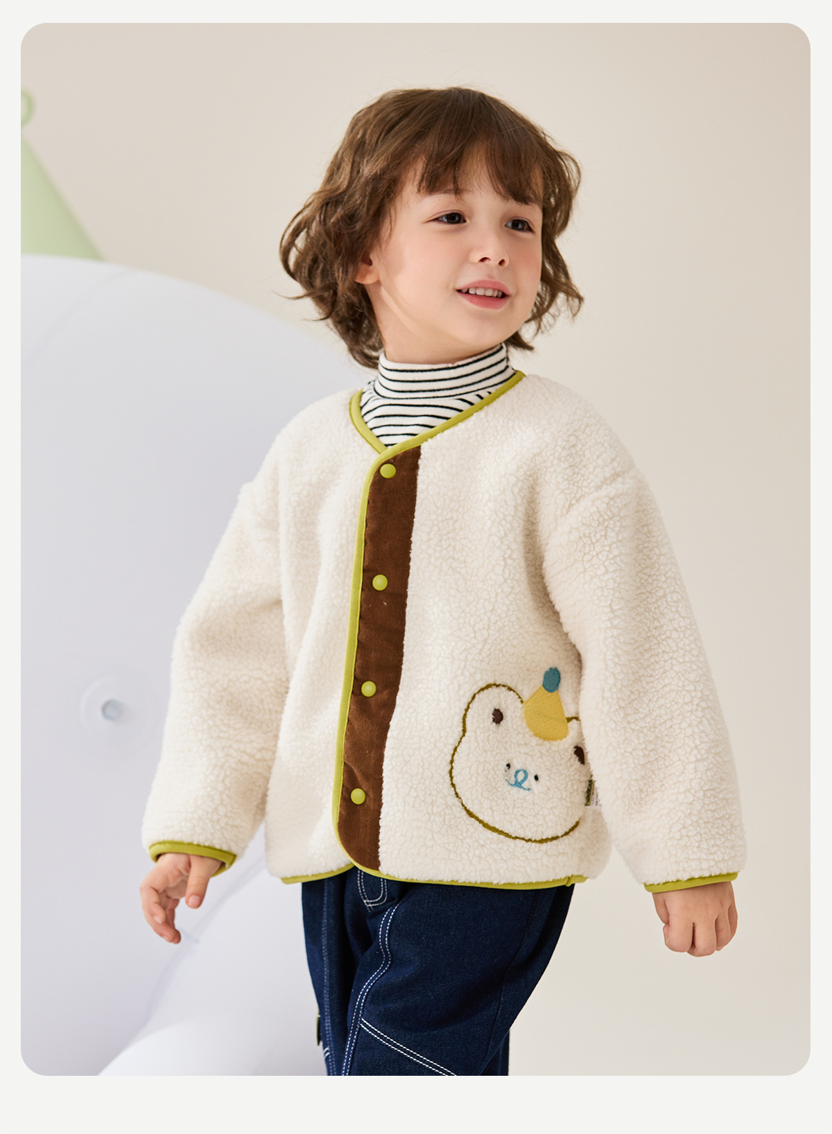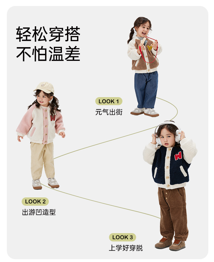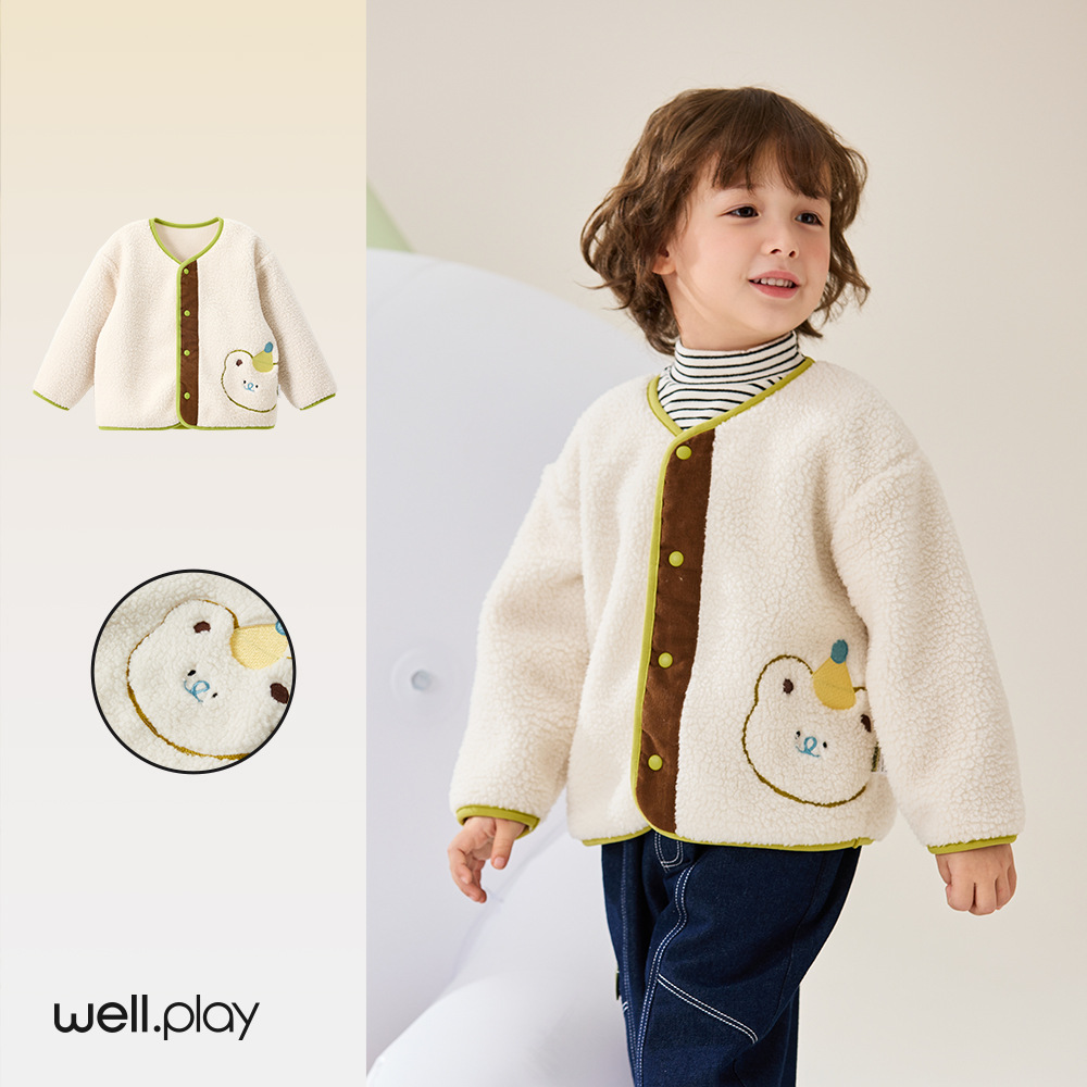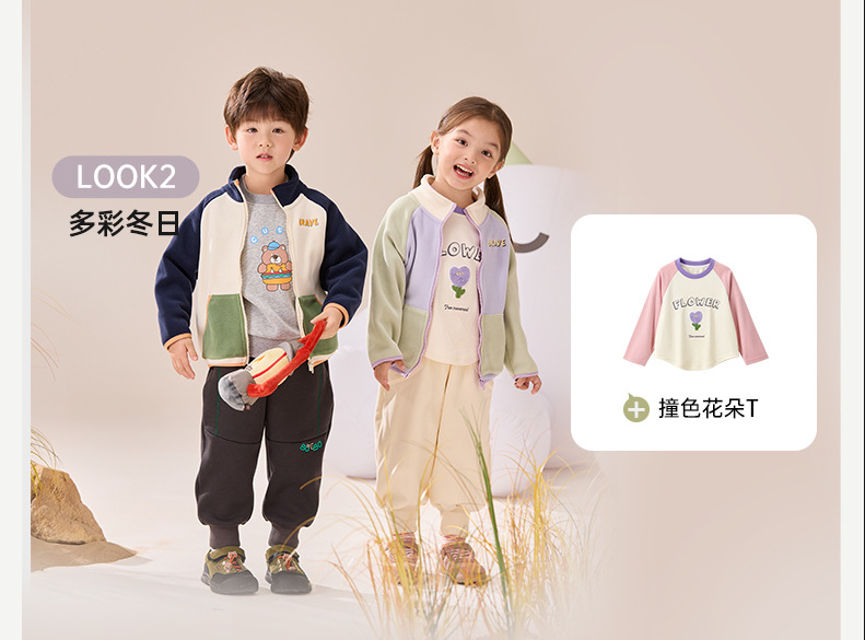 【재고정리】윌베루 아동용 두꺼운 스포츠 스타일 후드 없는 재킷, 여아 남아용, 가을 겨울용스토어 가기