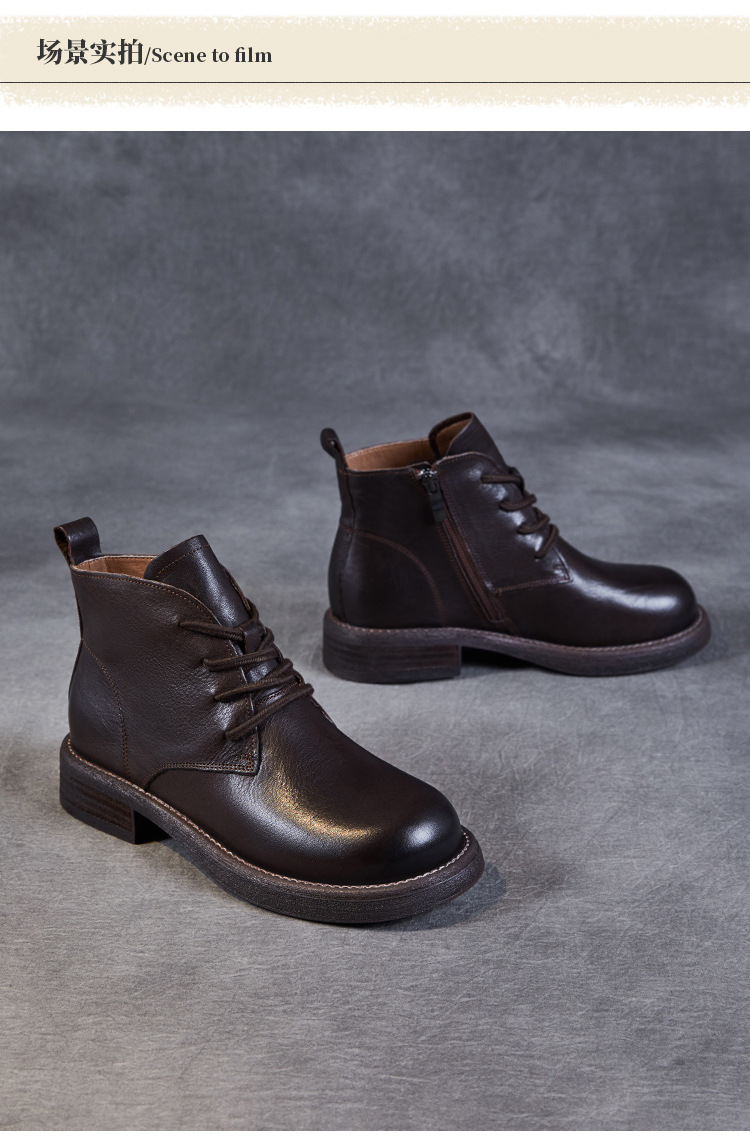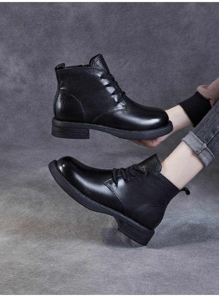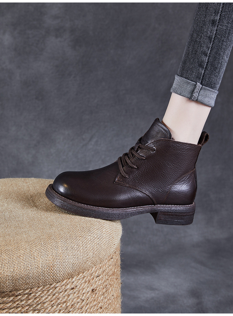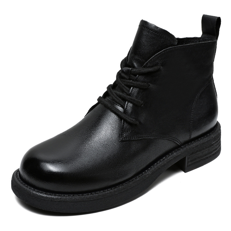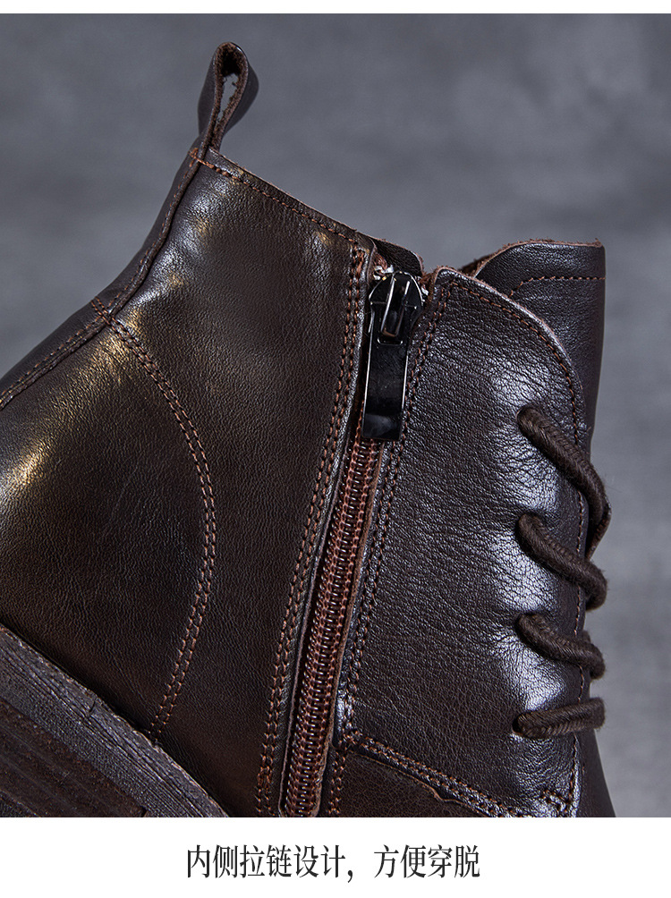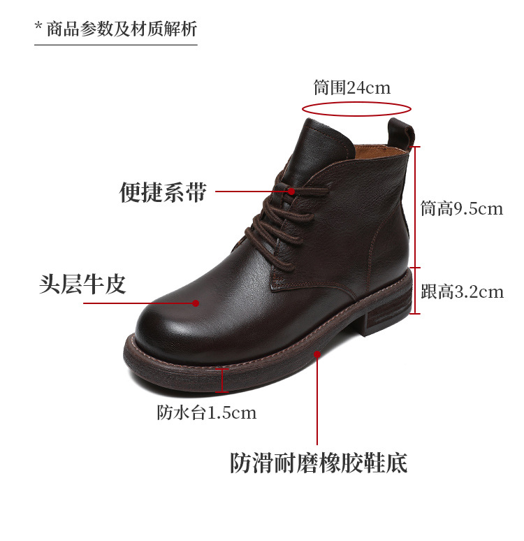 탑 레이어 Cowhide 올 매치 영국 스타일 레트로 두꺼운 힐 두꺼운 마틴 부츠 24 새로운 가을 및 겨울 정품 가죽 낮은 튜브 오토바이 부츠