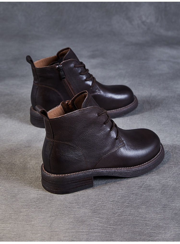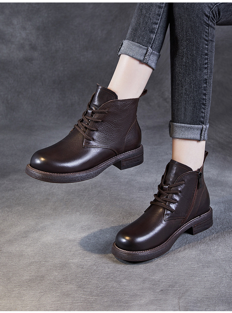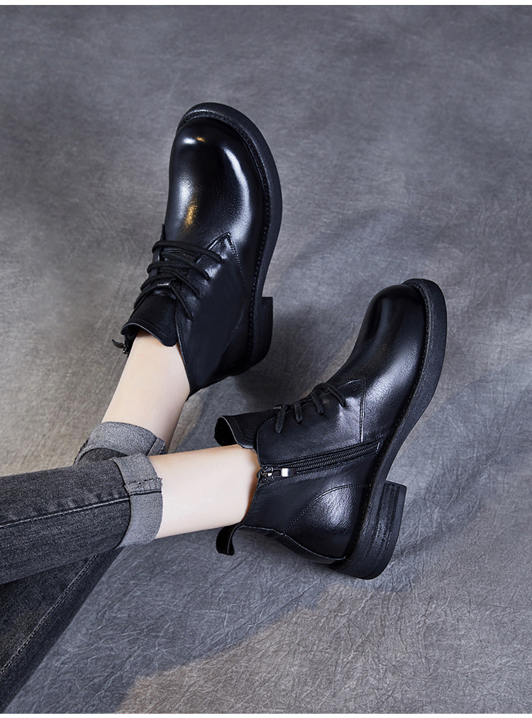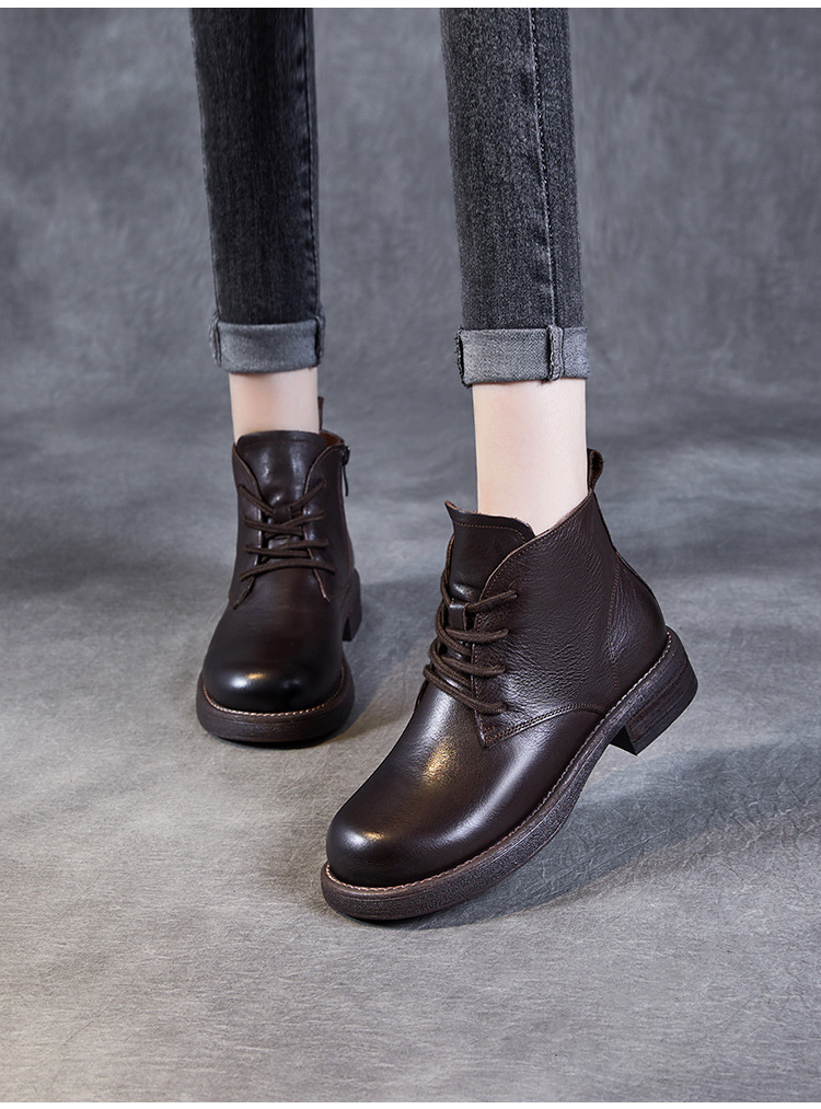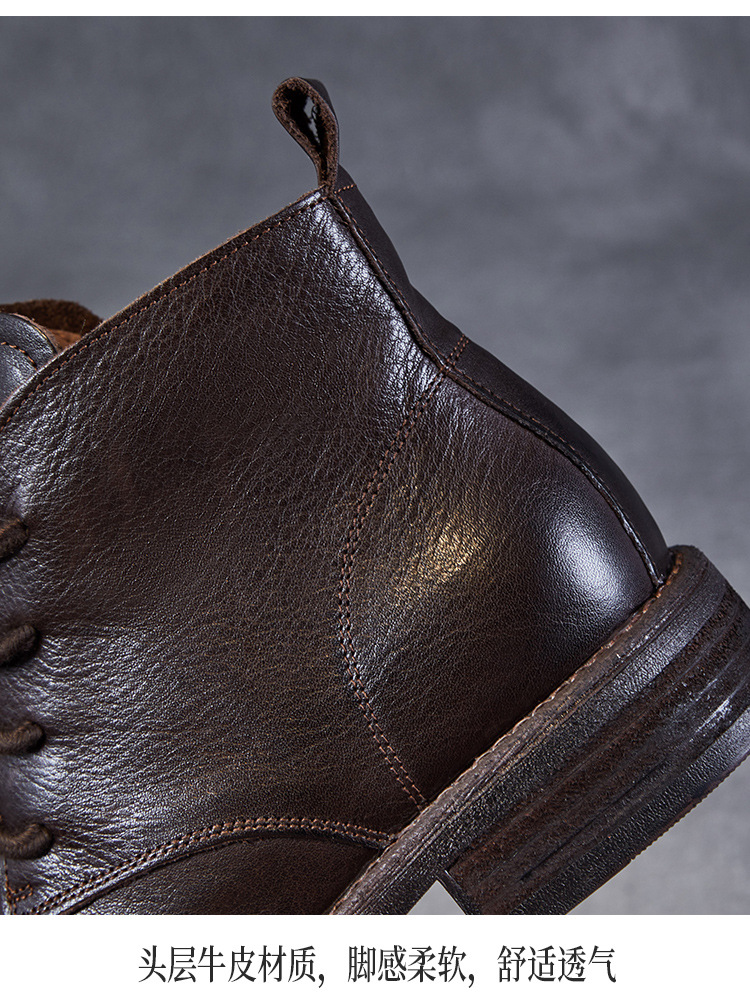 탑 레이어 Cowhide 올 매치 영국 스타일 레트로 두꺼운 힐 두꺼운 마틴 부츠 24 새로운 가을 및 겨울 정품 가죽 낮은 튜브 오토바이 부츠