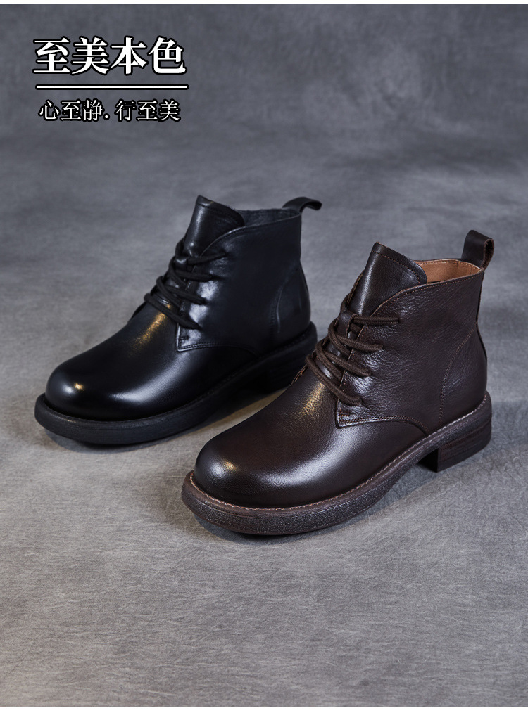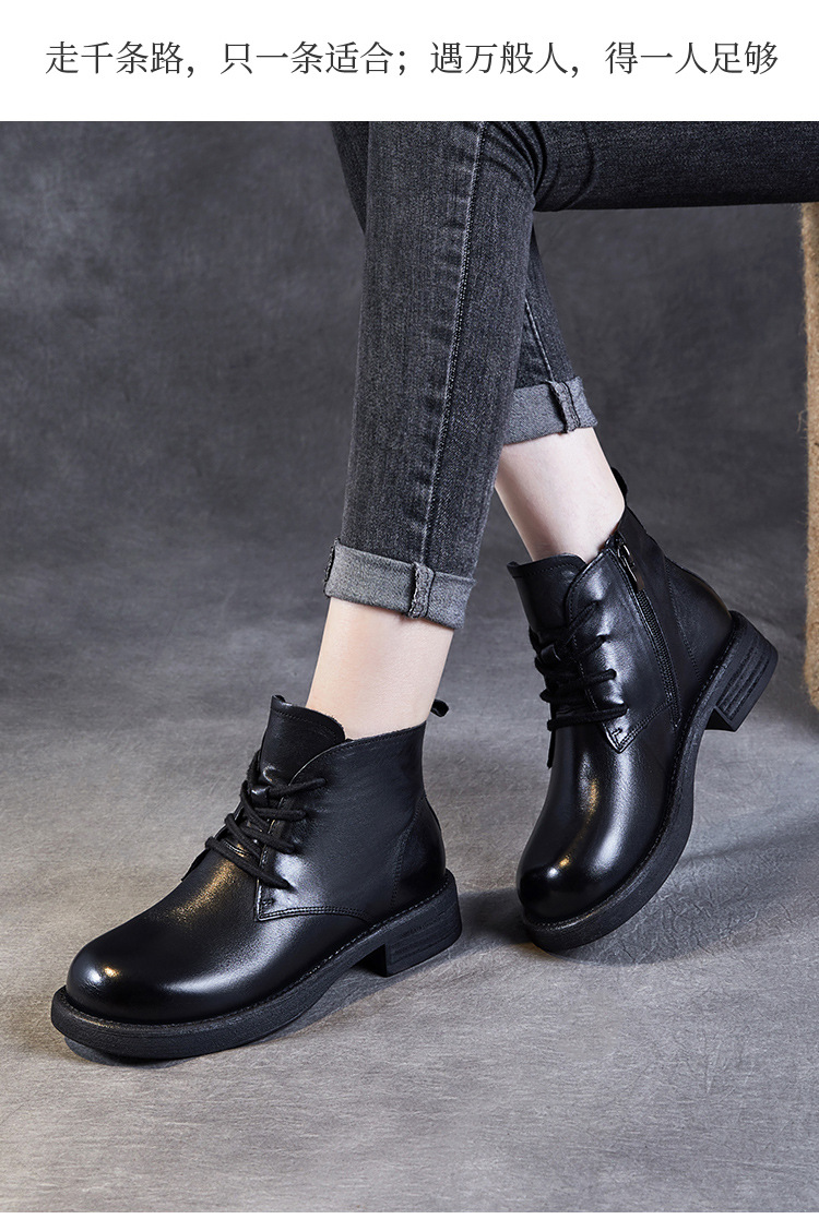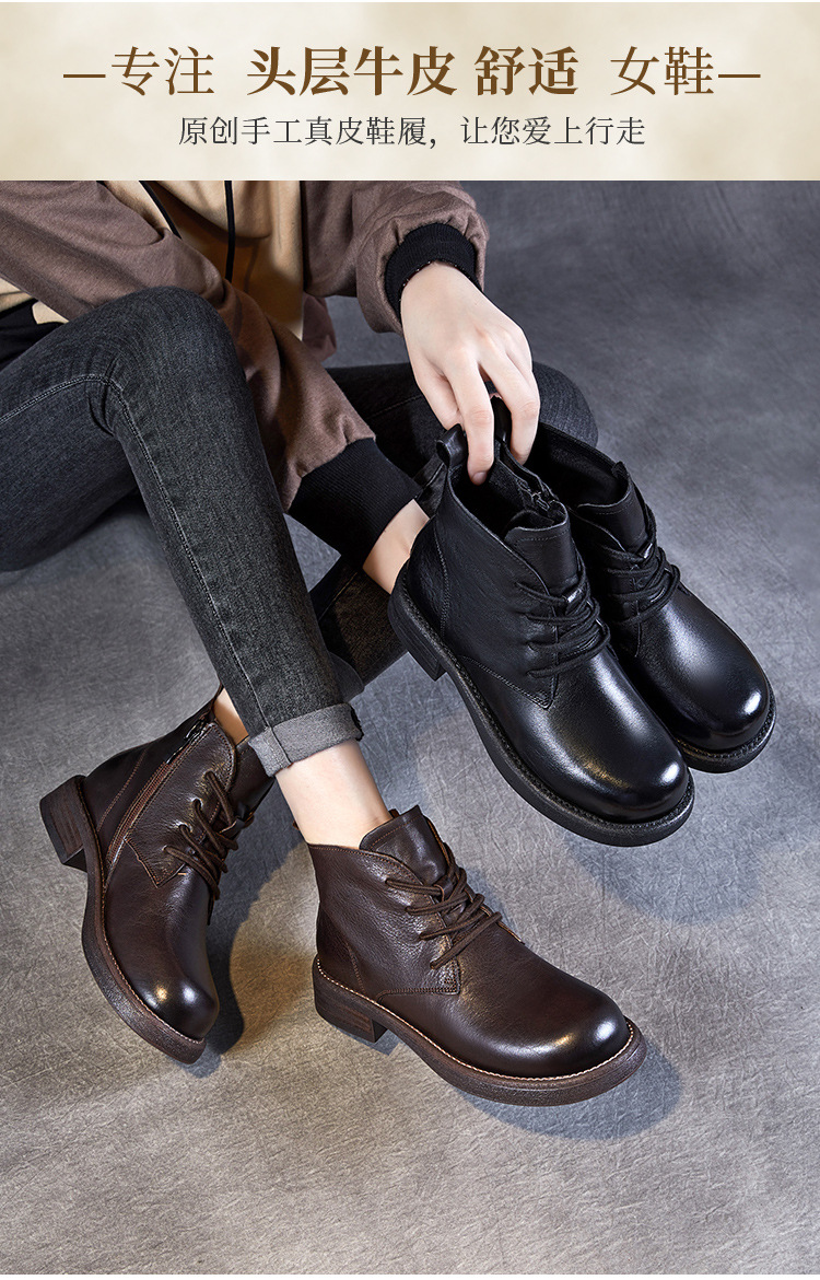 탑 레이어 Cowhide 올 매치 영국 스타일 레트로 두꺼운 힐 두꺼운 마틴 부츠 24 새로운 가을 및 겨울 정품 가죽 낮은 튜브 오토바이 부츠스토어 가기