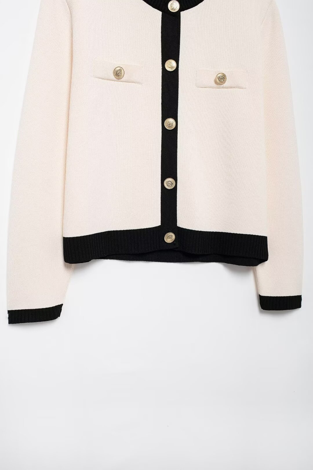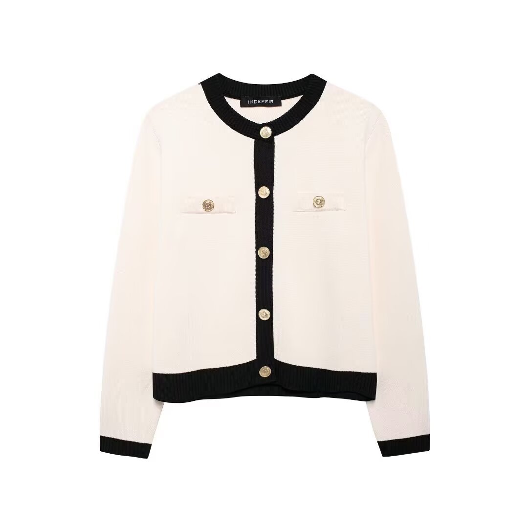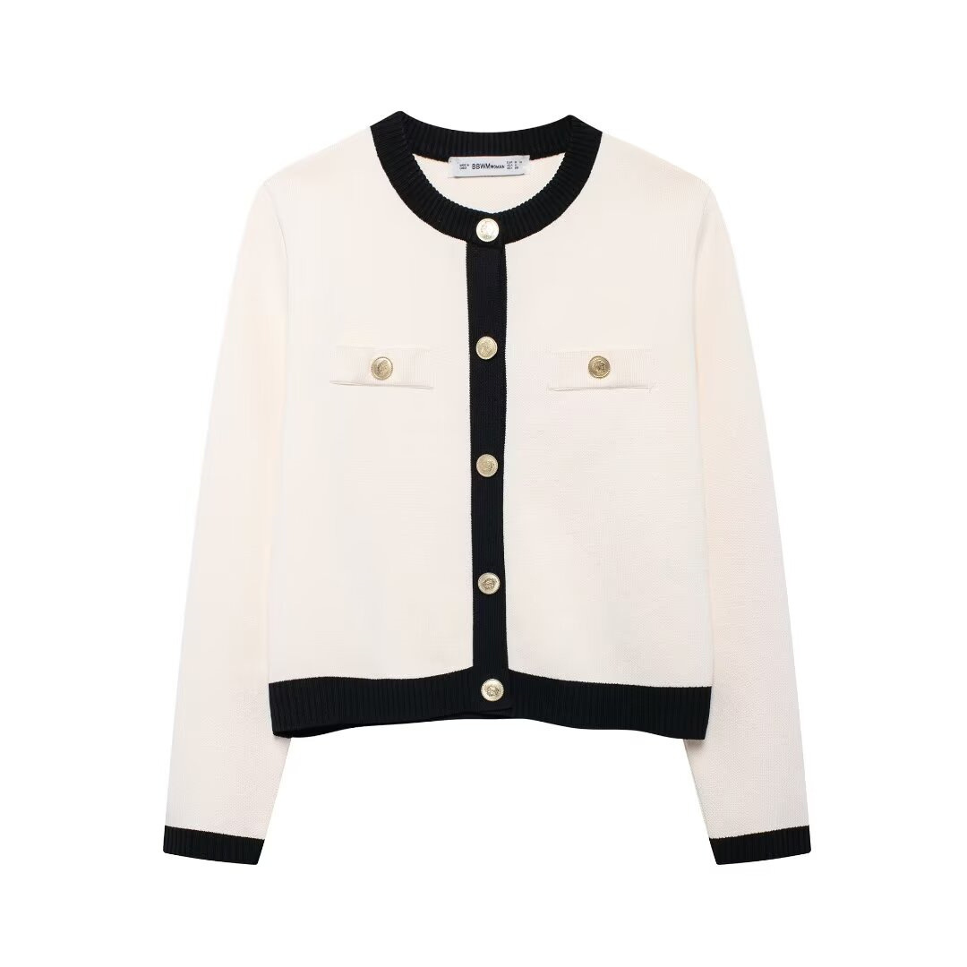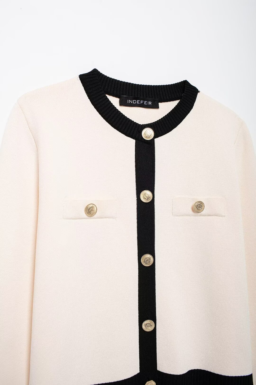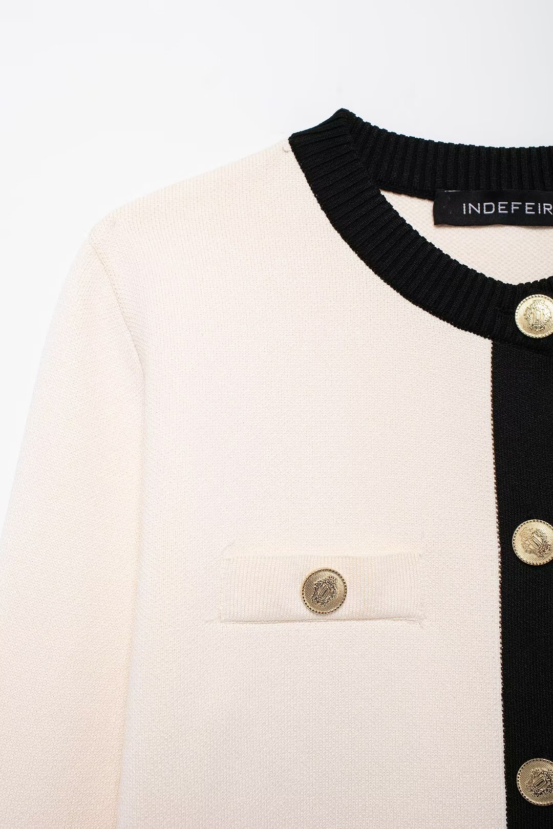 대외 무역 2024 유럽과 미국의 가을 새로운 패션 라운드 넥 긴팔 싱글 브레스트 콘트라스트 니트 스웨터 여성의 1822106스토어 가기