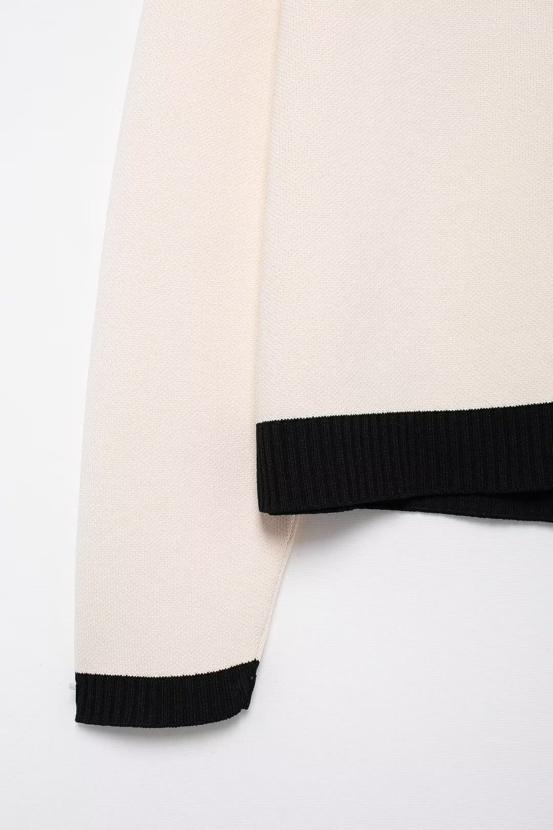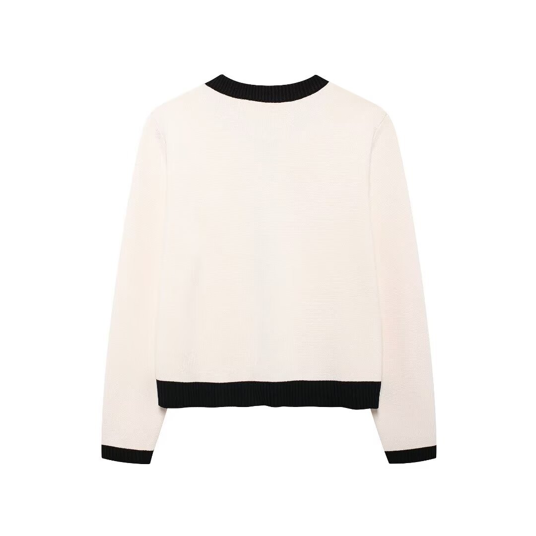 대외 무역 2024 유럽과 미국의 가을 새로운 패션 라운드 넥 긴팔 싱글 브레스트 콘트라스트 니트 스웨터 여성의 1822106