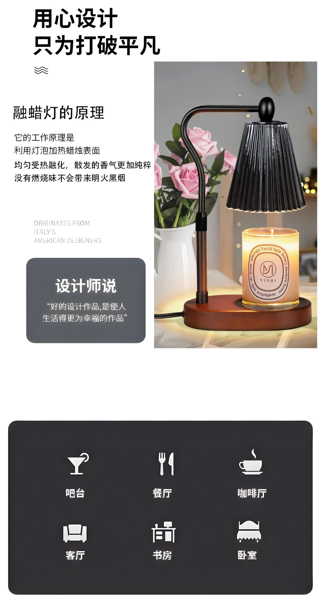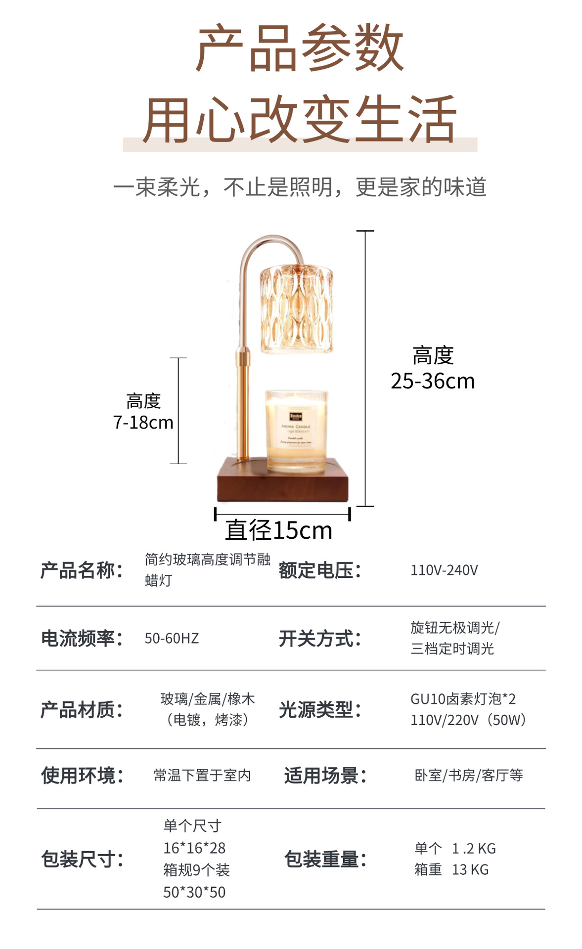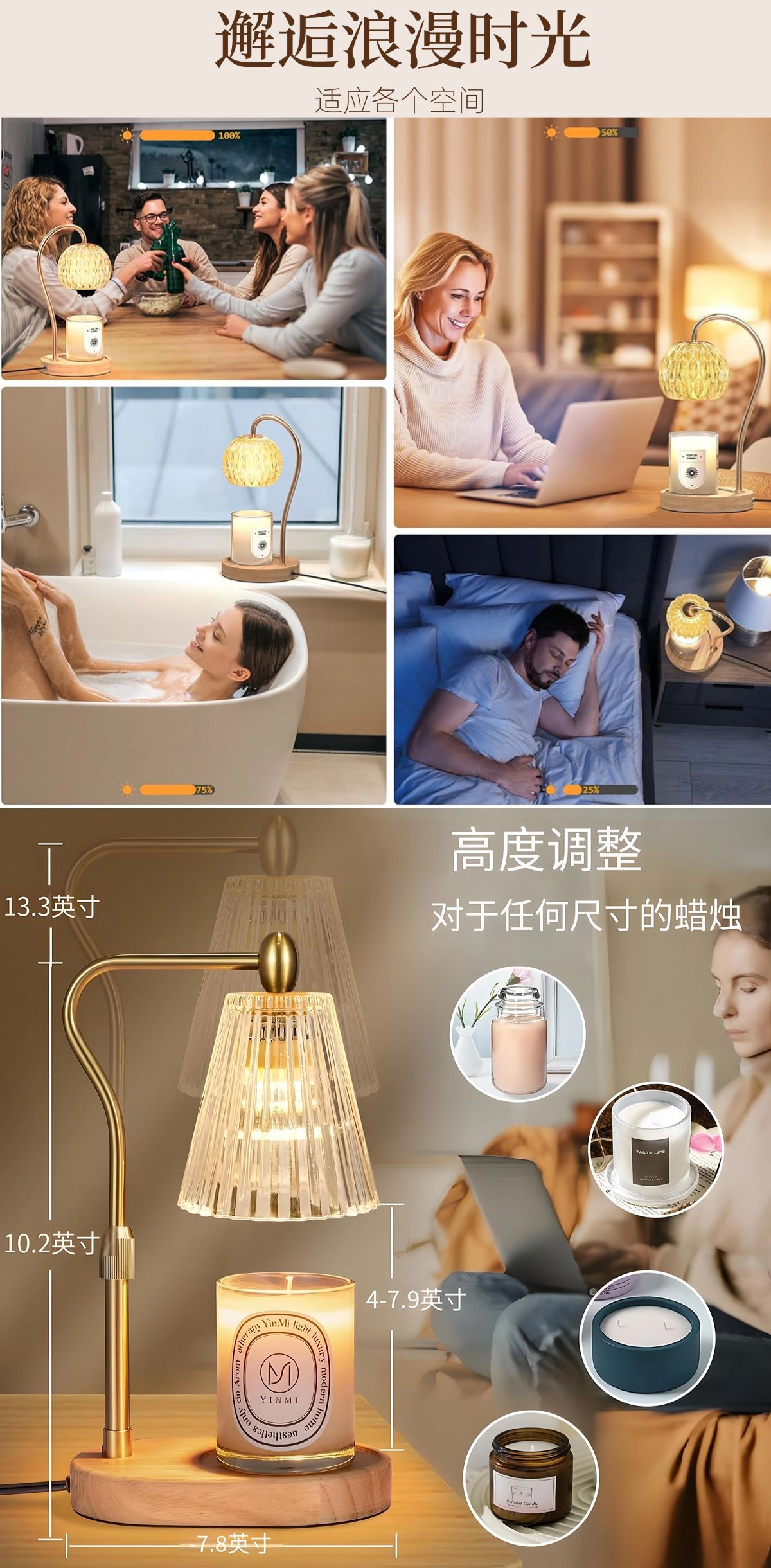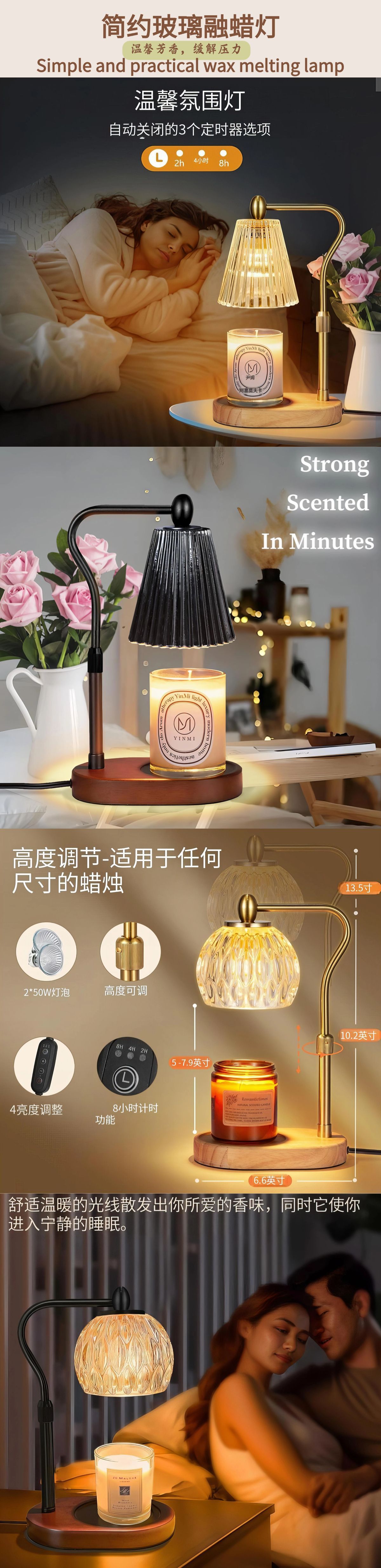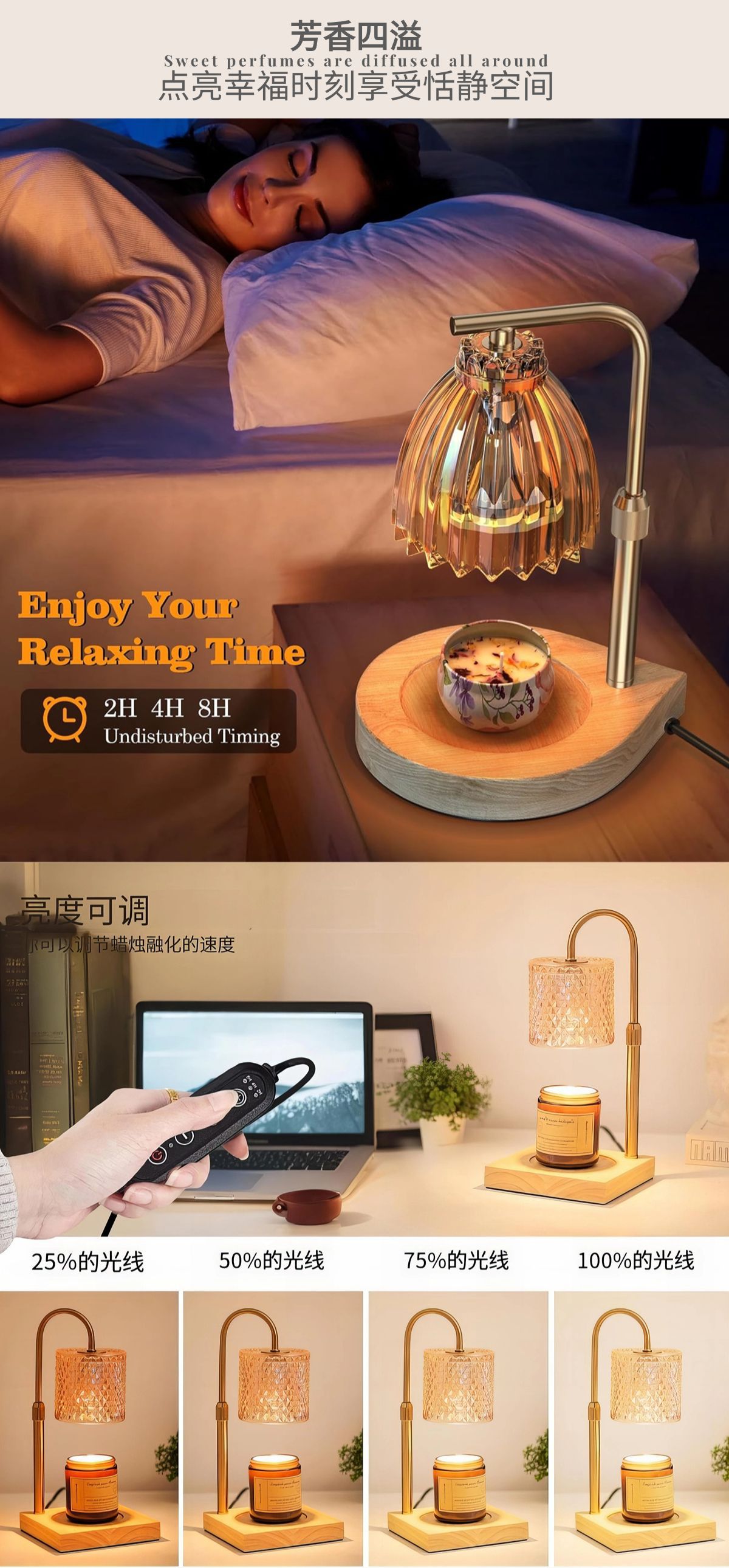 • 호박색 줄무늬 유리 높이 조절 가능 목재 녹는 왁스 램프