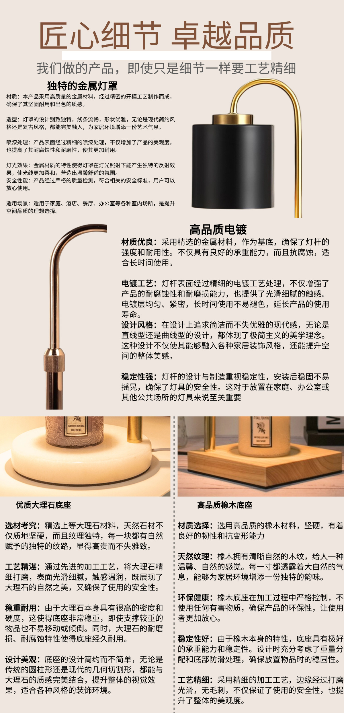 • 원통형 유리 골드 높이 조절 램프 폴 타원형 나무 받침대