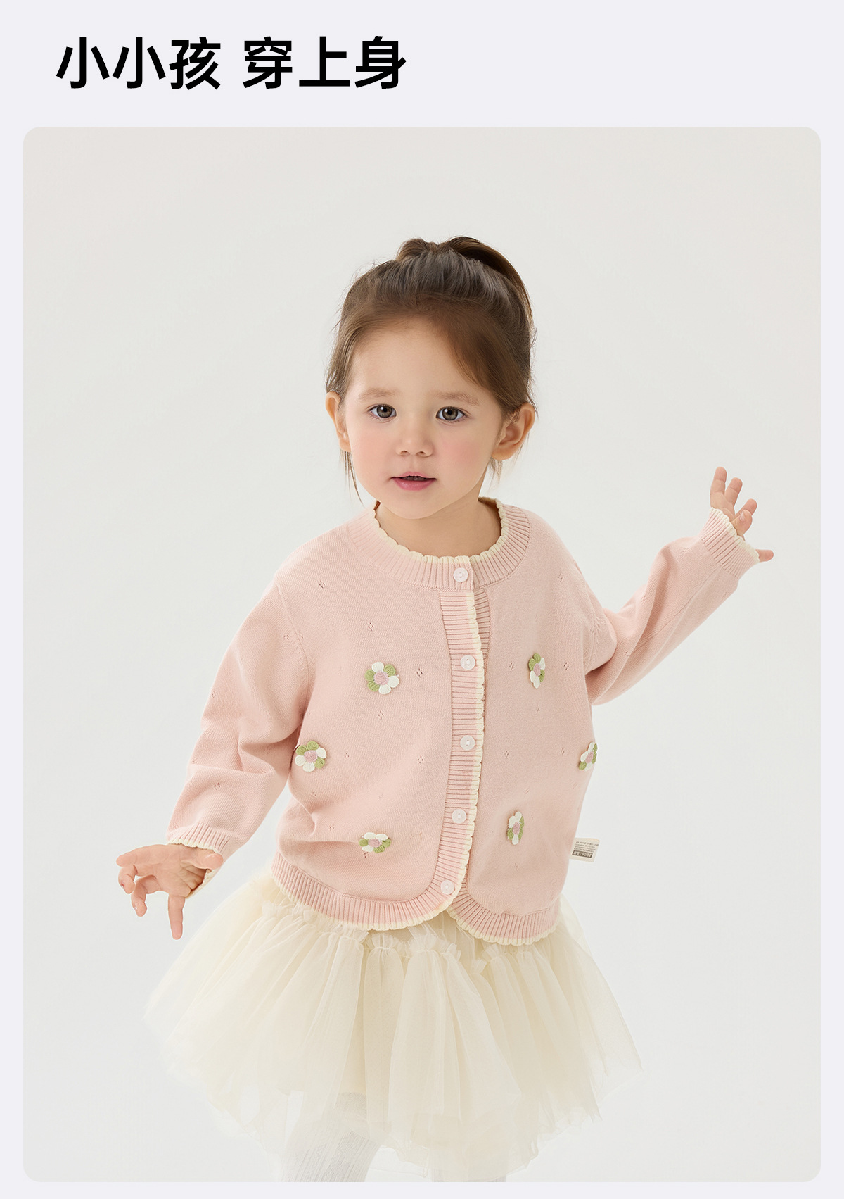 • 【가디건】 블러쉬 핑크 - 여아용 얇은 스타일