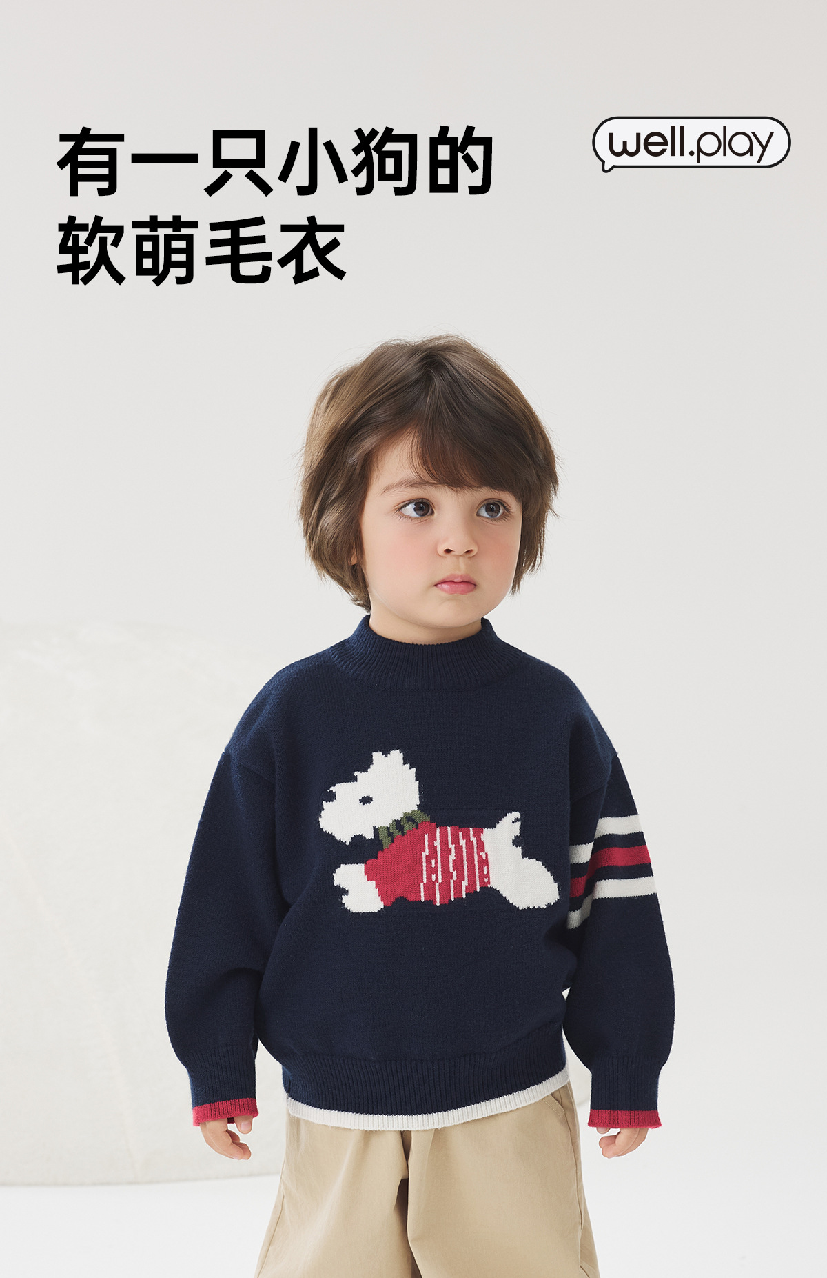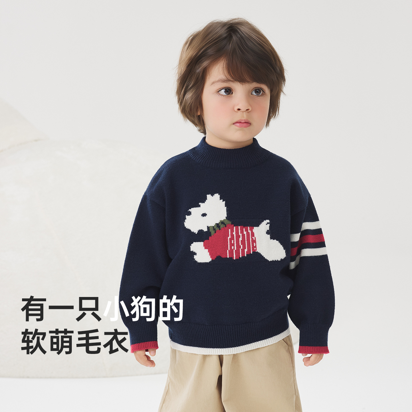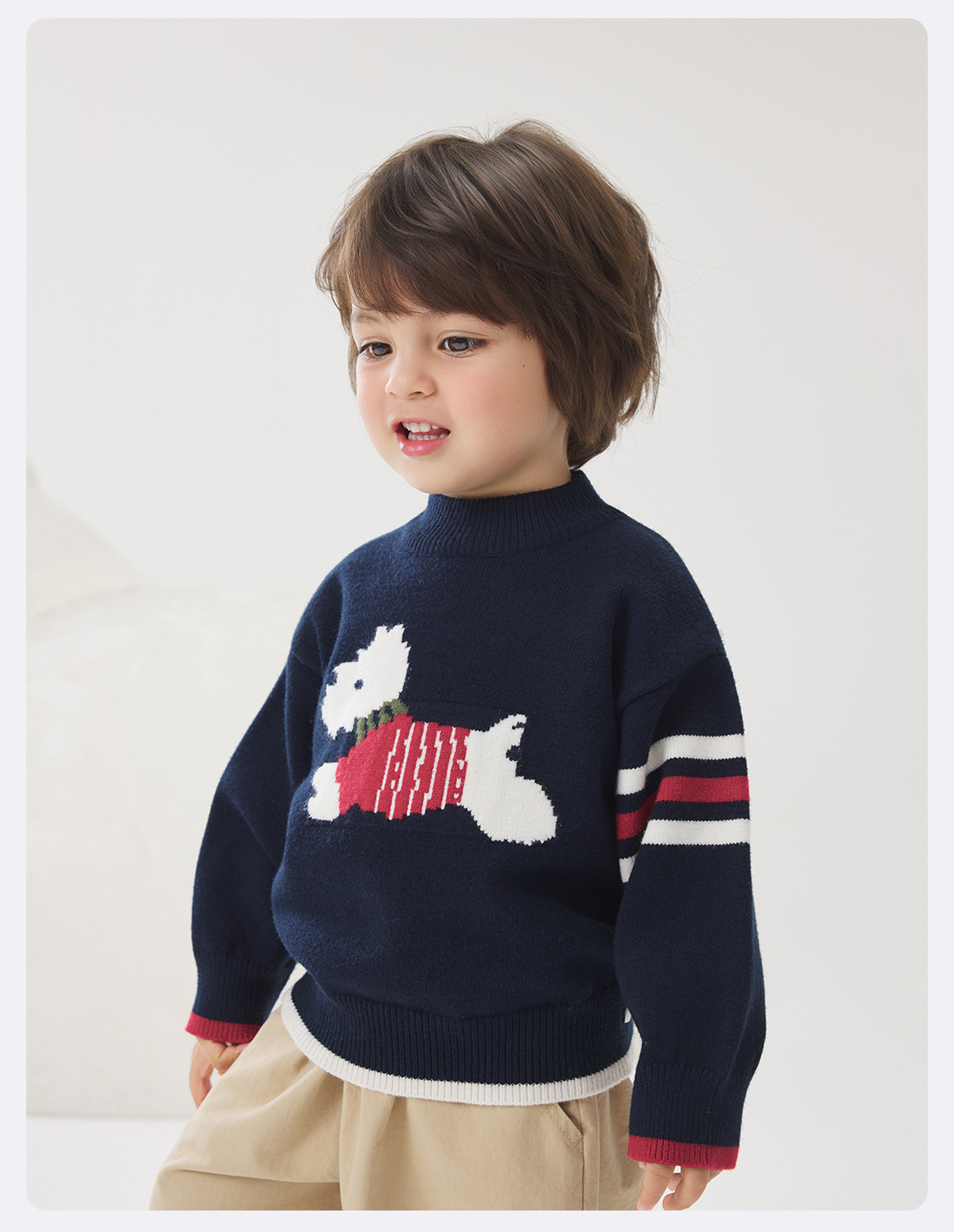 • 【풀오버 니트】 네이비 강아지 - 기본 얇은 두께