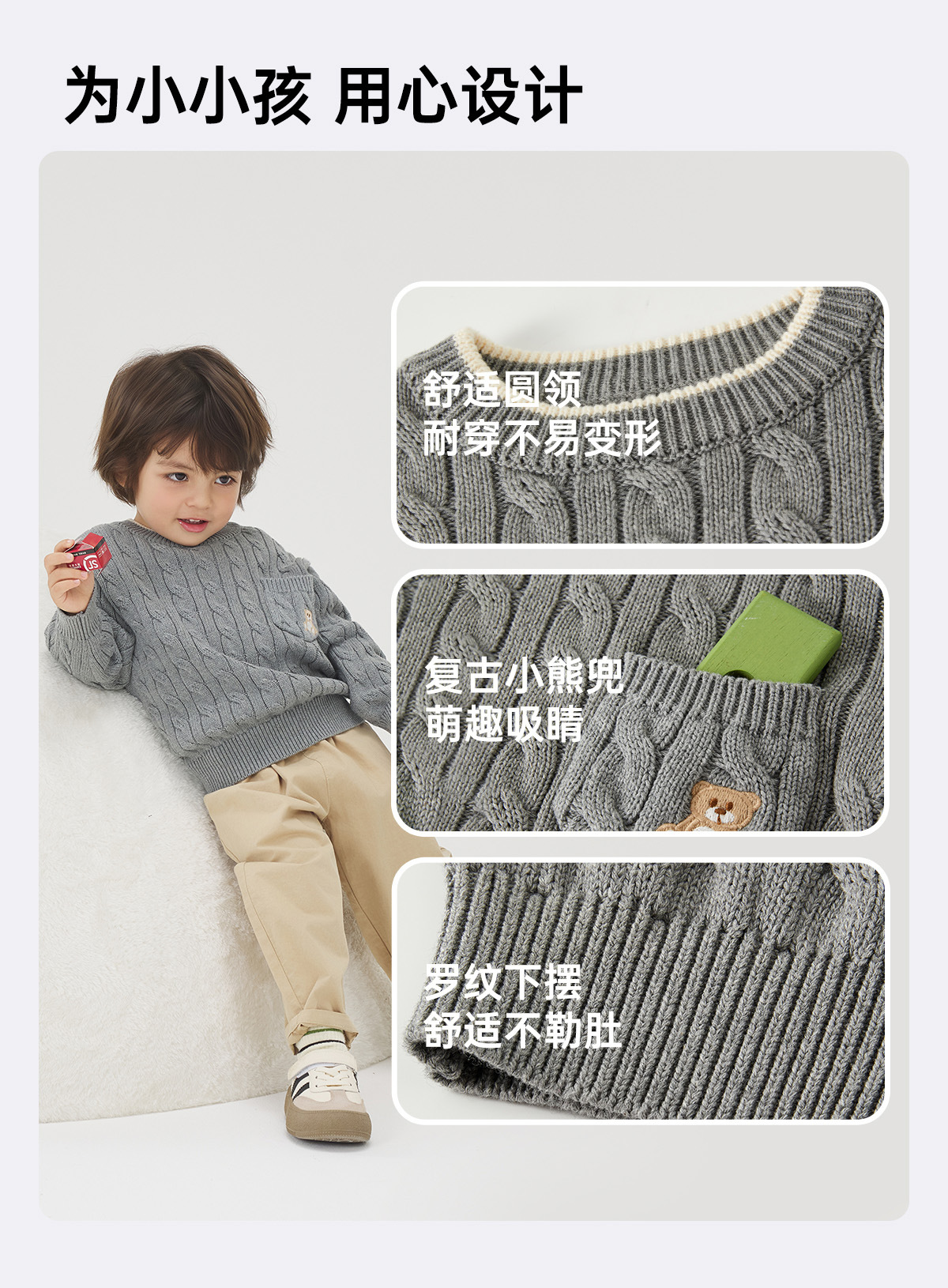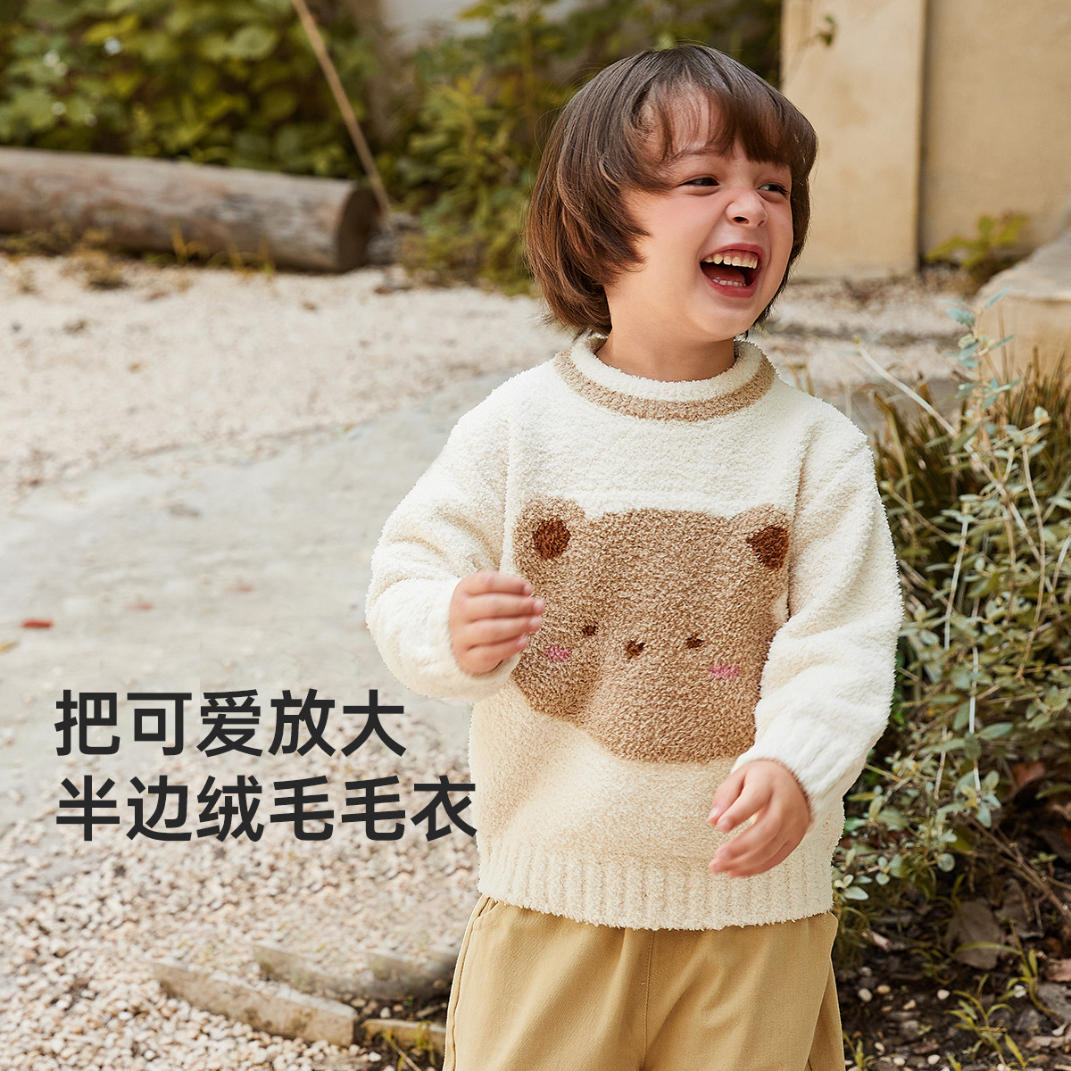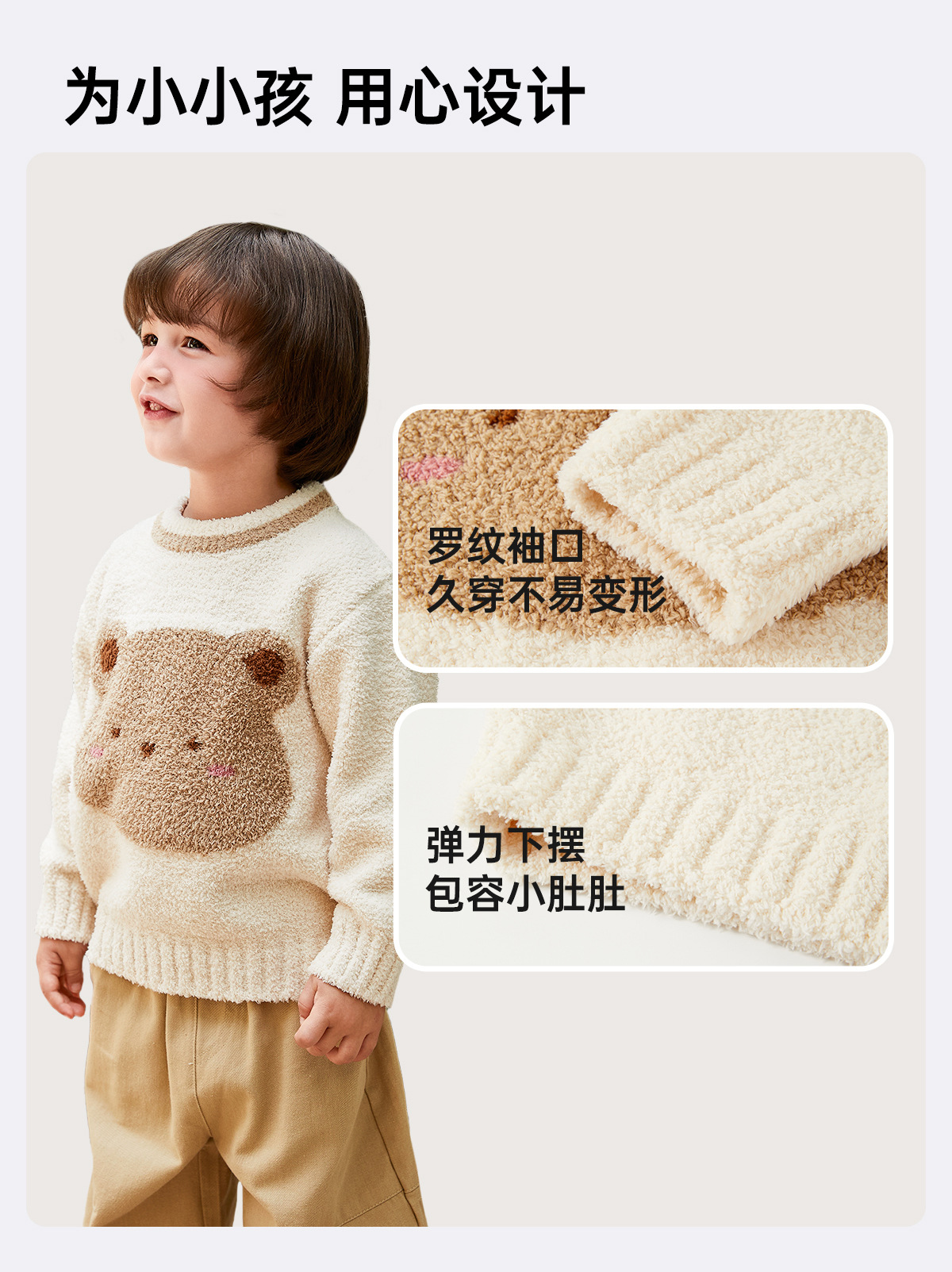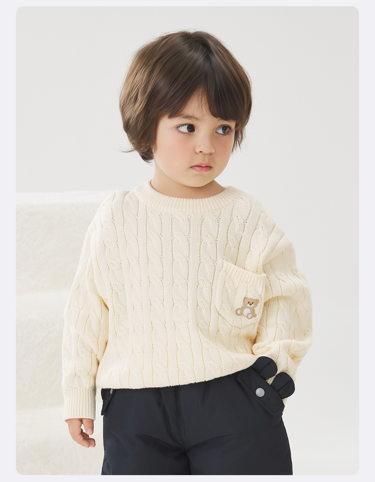 • 【풀오버 니트】 미색 곰돌이 - 기모 안감 두툼한 스타일
