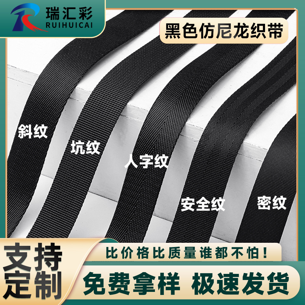 검은 나일론 웨빙 재고 두꺼운 헤링본 미국 조밀 한 패턴 자동차 안전 벨트 모방 나일론 웨빙