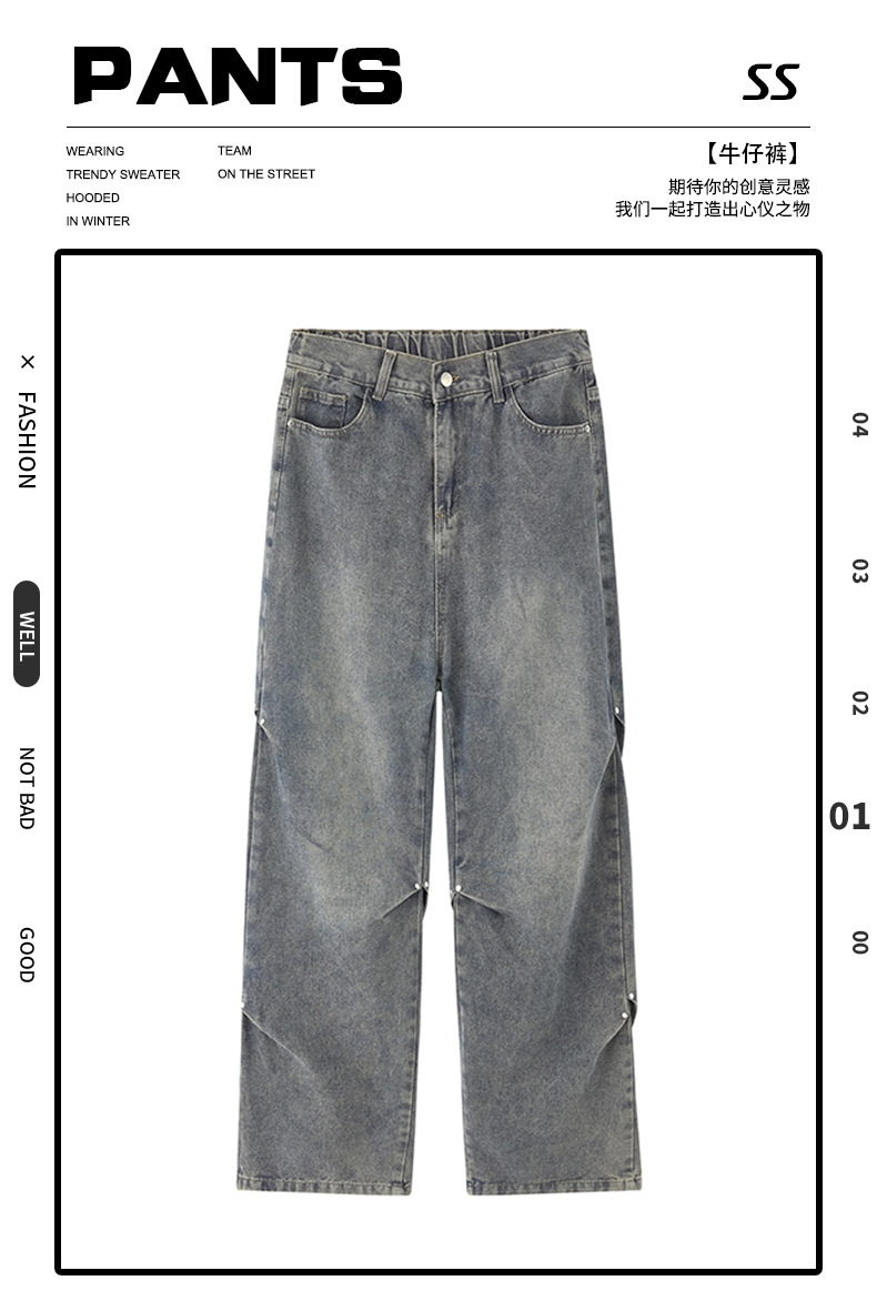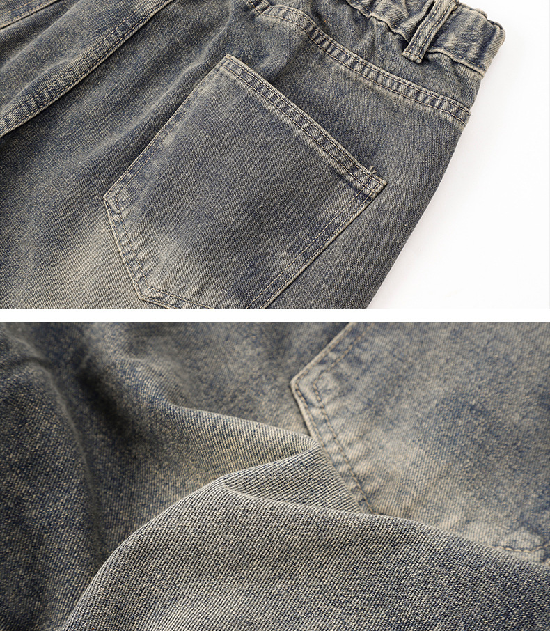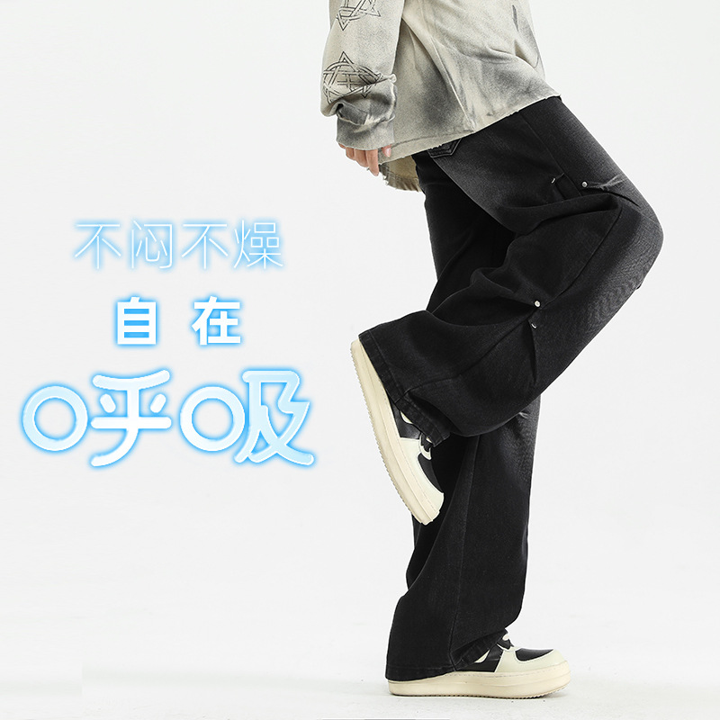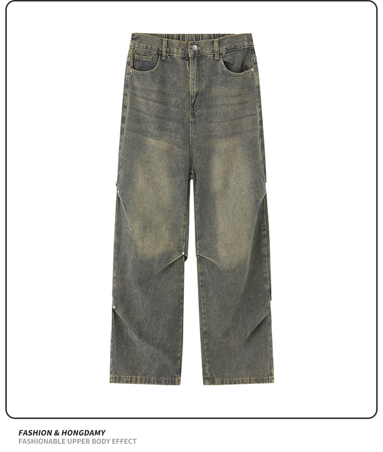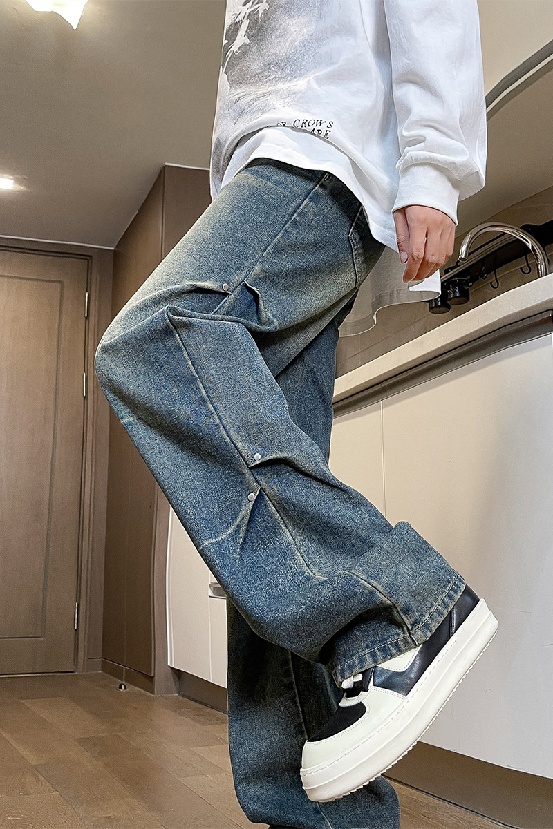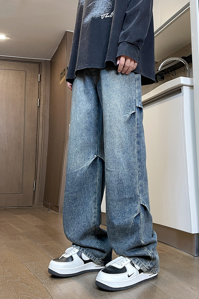 남성용 아메리칸 스타일 스트레이트 레그 워싱 마이크로 플레어 청바지, 남성용 고급 주름 트렌디 브랜드 하이 스트리트 레트로 캐주얼 바지스토어 가기