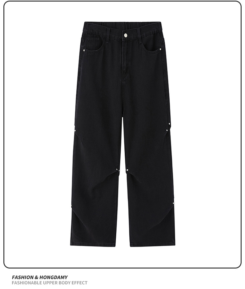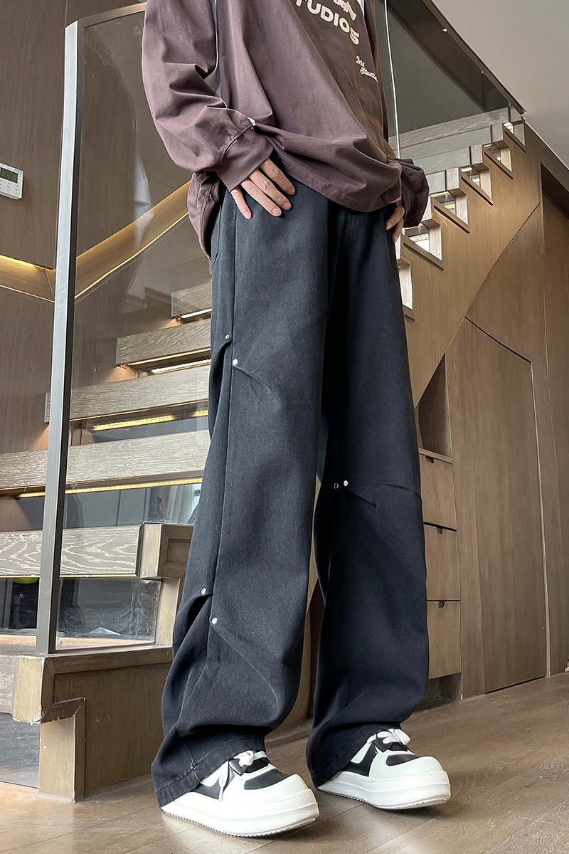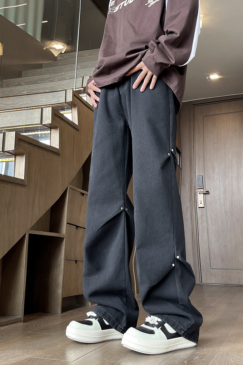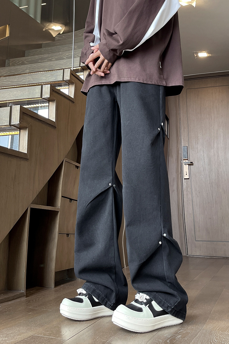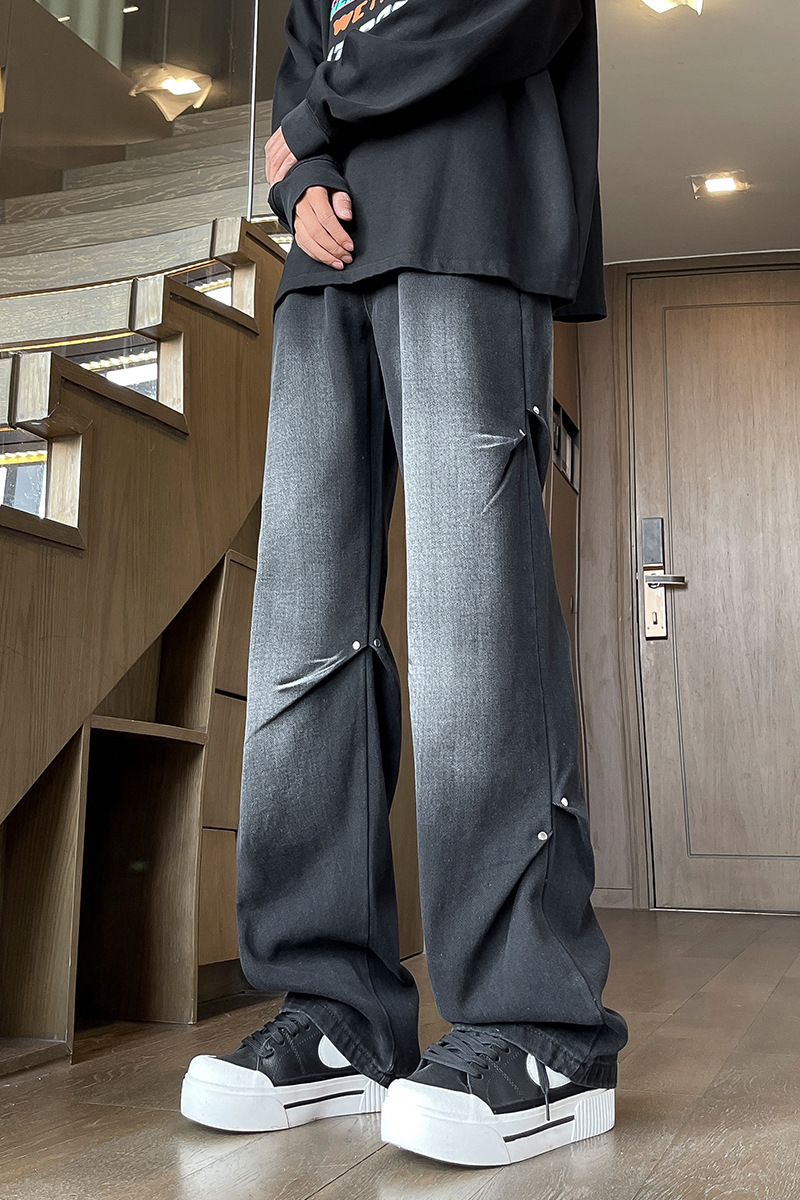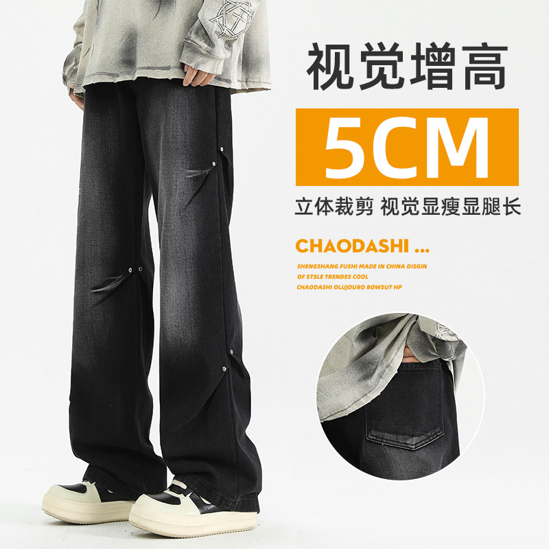 남성용 아메리칸 스타일 스트레이트 레그 워싱 마이크로 플레어 청바지, 남성용 고급 주름 트렌디 브랜드 하이 스트리트 레트로 캐주얼 바지