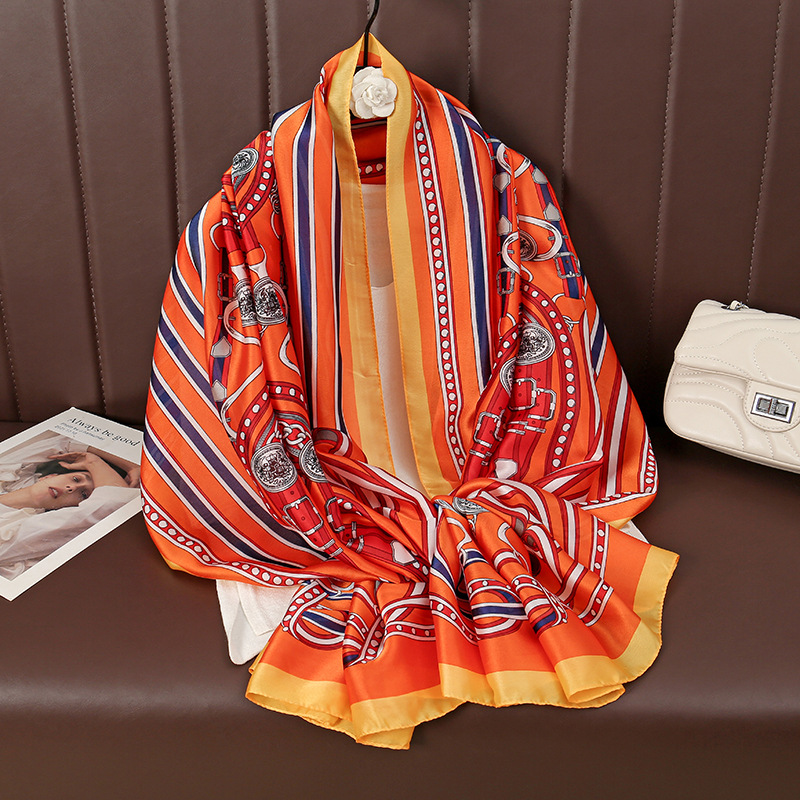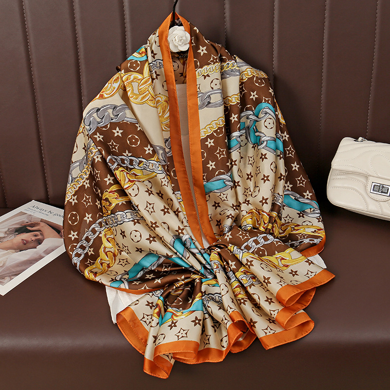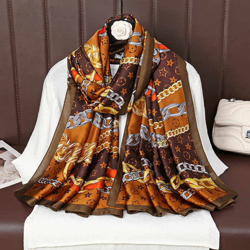 패션 대외 무역 체인 꽃 모방 실크 롱 스카프 올 매치 하이 엔드 여성 선스크린 얇은 목도리