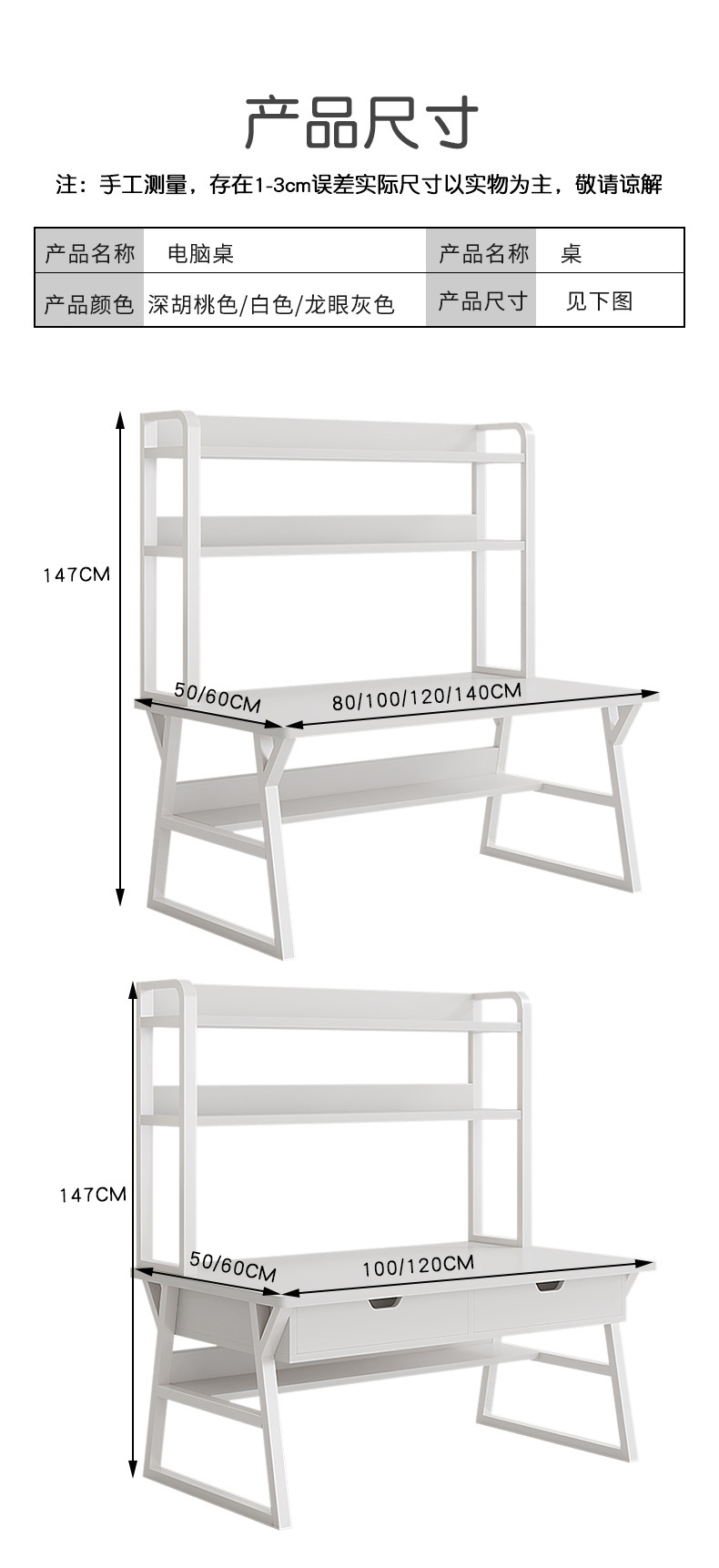 • [두꺼운 생태 원목 보드 40MM 두꺼운 철골] 유백색 140cm